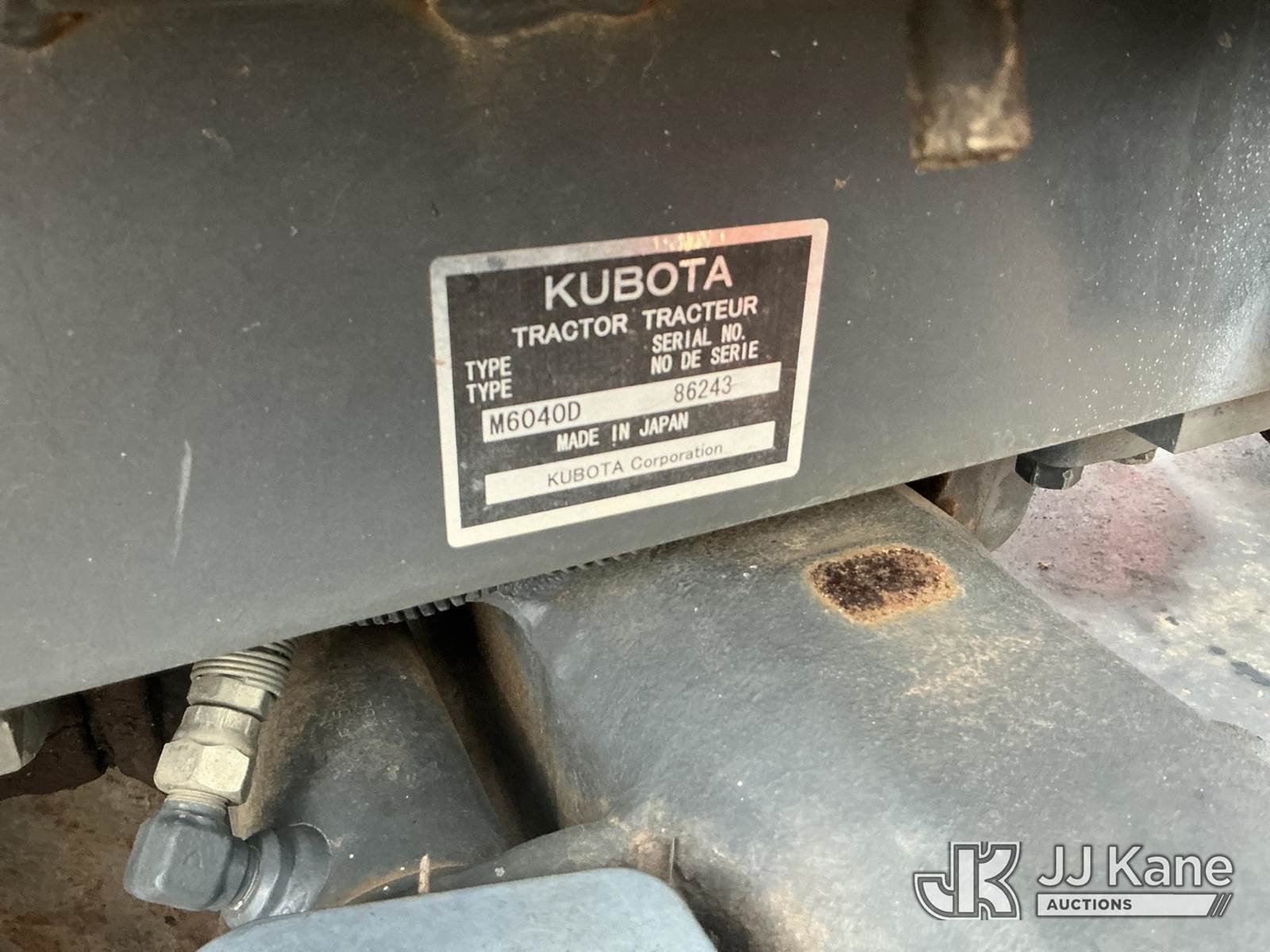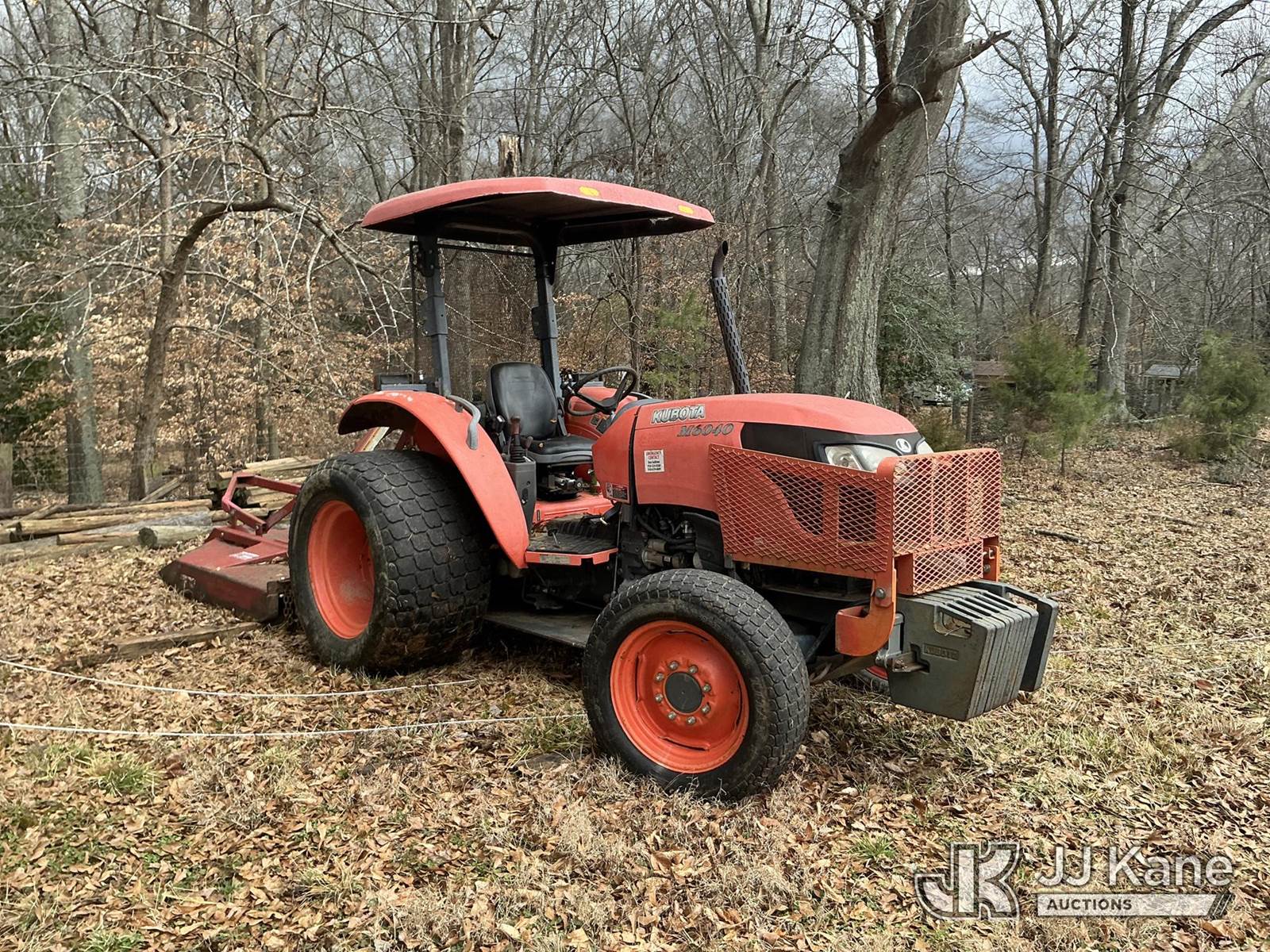 2011 Kubota M6040D Utility Tractor, s/n 86243, Kubota diesel, Synchronized Shift, with PTO, 2-point hitch, front counter weights, undercarriage protection plate & ROPS, (Bush Hog Attachment Not Included) (Runs, Moves) (Reads 2,368 hours) NOTE: This unit is being sold AS IS/WHERE IS via Timed Auction and is located in Enoree, SC. For more information & removal arrangements please contact Pete Klimek @ 843-323-6538. (Buyer is responsible for removal. Assistance by consignor or JJ Kane Auctions is not assured.)