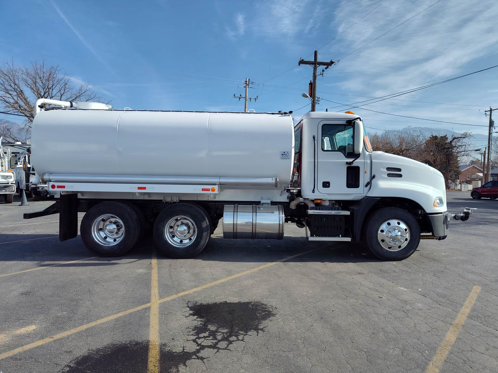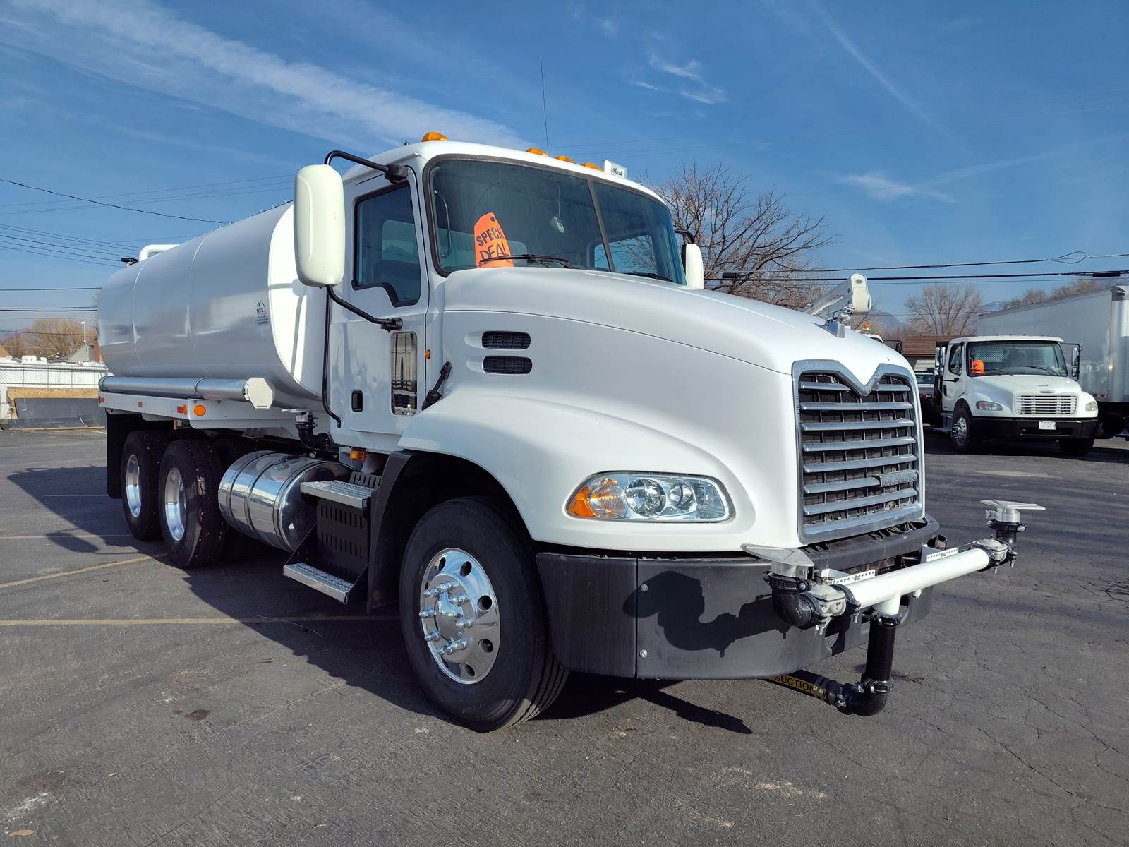 Original Price $ 78,500 - GREAT FIND! 2011 Mack CXU613 Water Truck, MP7 10.8 Ltr, Turbo, 6 Cyl, HP 340, Eaton Fuller Autoshift 6-Speed Trans, NEW 4,000-gallon water tank, Front sprayers - (Front, (2) Sides & Rear) - Controls inside cab, Sun Visors, Cab marker lights, AM/FM/CD Stereo, A/C, Cup Holders, Door pockets, Door site window, All Aluminum Wheels, Aluminum Fuel Tank, and Air Tanks, Power windows/locks, Power Mirrors, Parking Brake, Jake Brake, 6X4, PTO, Rear view mirrors, Sides Steps, Grab handles, Ladder on tank, Leaf-Air Suspenssion, Tires size 295/75R22.5.