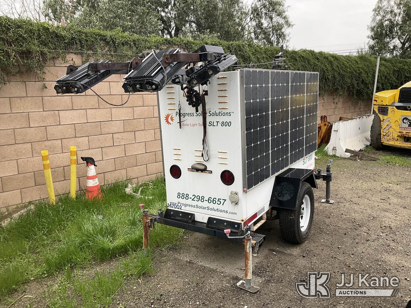 2011 PROGRESS SLT-80 Portable Light Tower, s/n 1P9B71317BA661073, battery powered, (Starts & Operates) (Application for Special Equipment) NOTE: This unit is being sold AS IS/WHERE IS via Timed Auction and is located in Jurupa Valley, CA. Inspection & preview days for this unit are the 2 business days prior to the first day of items closing for this auction, item is located at 4510 Muth Way Jurupa Valley, CA 92509 and hours of operations are 8a-4p. For pre-sale questions, please contact please contact Office Staff @ (310) 353-7140. Dealer License Number 45696. (Buyer is responsible for removal. Assistance by consignor or JJ Kane Auctions is not assured.)