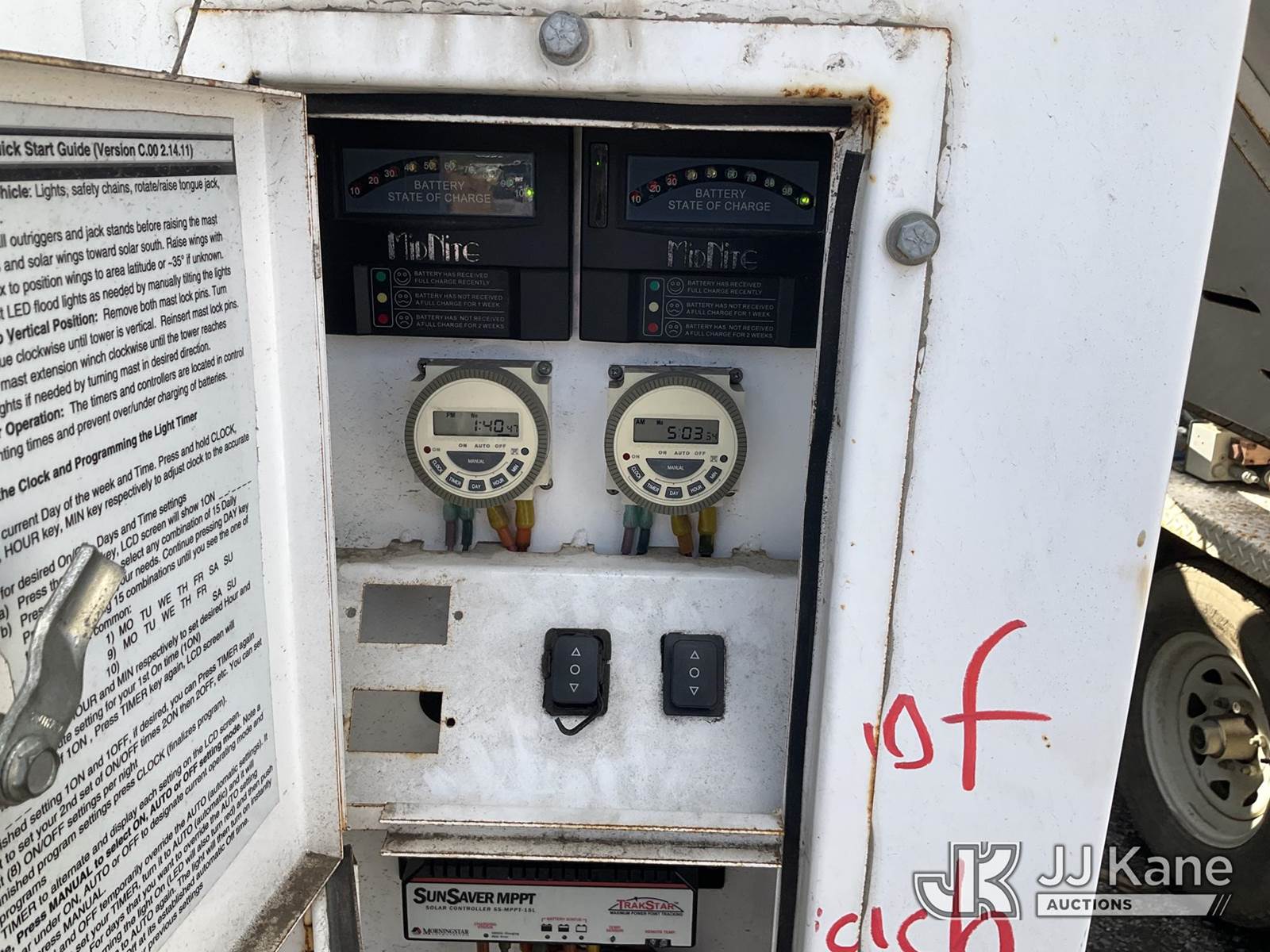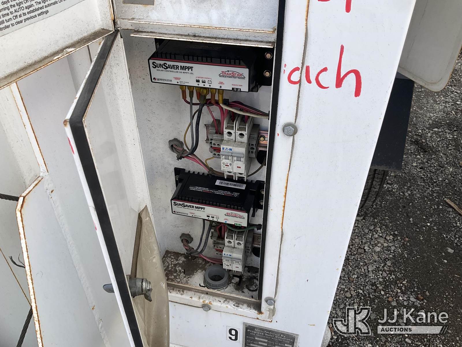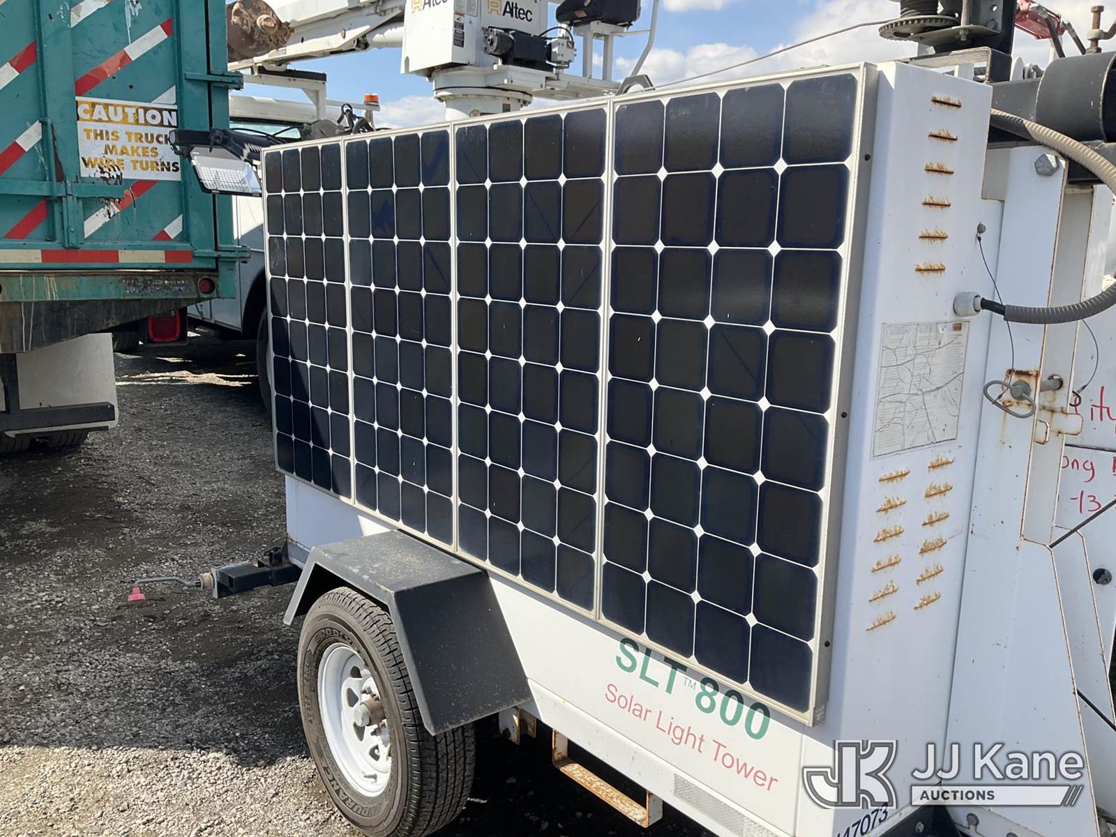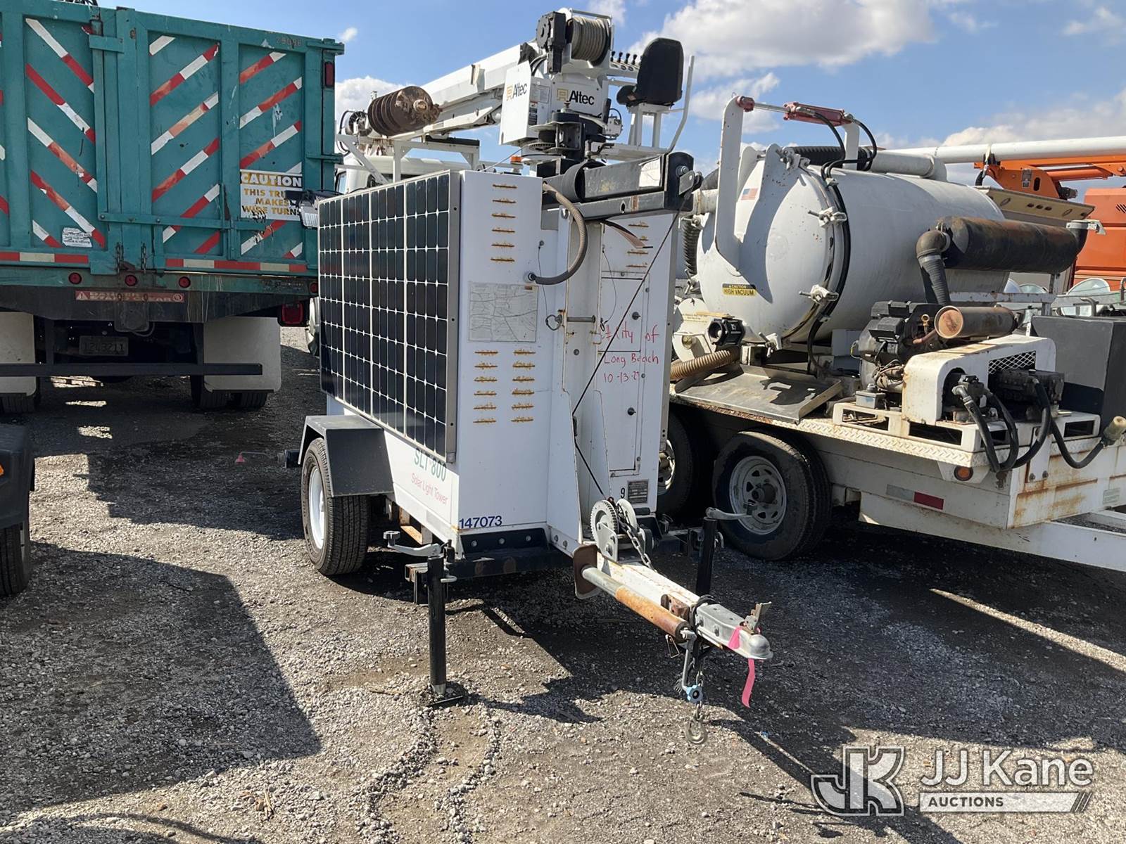 2011 Progress Solar Solutions SLT800 Portable Light Tower, s/n 1P9B71310BA661075, Solar/Battery Powered, electric, with ball hitch, solar panels, (Starts & Operates) NOTE: This unit is being sold AS IS/WHERE IS via Timed Auction and is located in Jurupa Valley, CA. Inspection & preview days for this unit are the 2 business days prior to the first day of items closing for this auction, item is located at 4510 Muth Way Jurupa Valley, CA 92509 and hours of operations are 8a-4p. For pre-sale questions, please contact please contact Office Staff @ (310) 353-7140. Dealer License Number 45696. (Buyer is responsible for removal. Assistance by consignor or JJ Kane Auctioneers is not assured.)