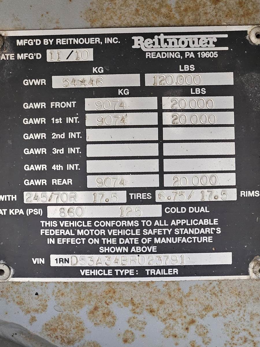 2011 Reitnouer Big Bubba All Aluminum Drop Deck, 53' x 102", Aluminum Main Beams Deck and Rails, Sliding Winches, Stake Pockets, Pipe Spools, Coil Package, 2 Tool Boxes, Tri Axle, Air Ride, Outside Aluminum Wheels, Inside Steel Wheels, 17.5 Tires, Manual Dump Valve, 2-10-9 Light Package.