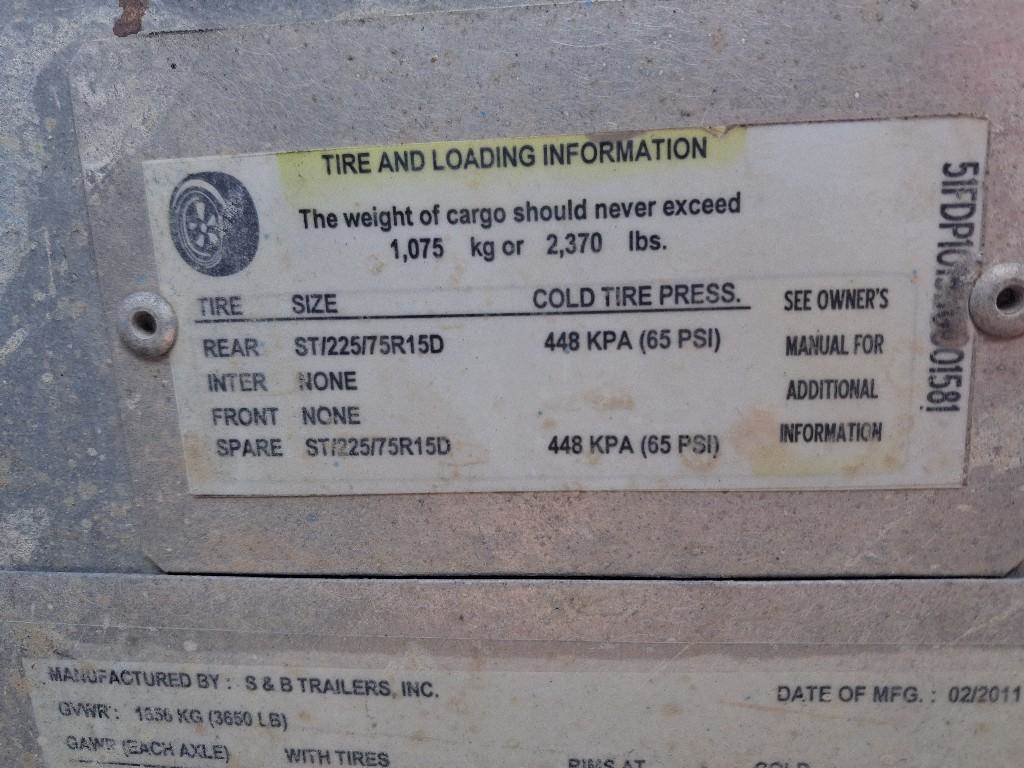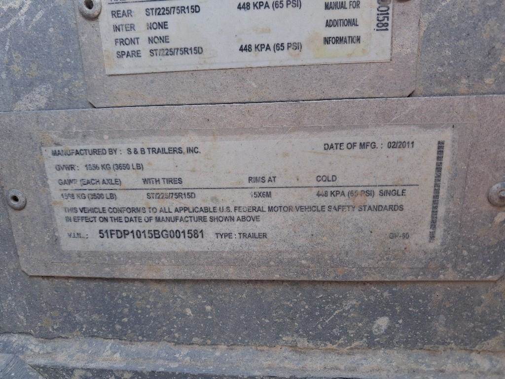 2011 10FT S & B Trailer, 2,370 LB Max Capacity