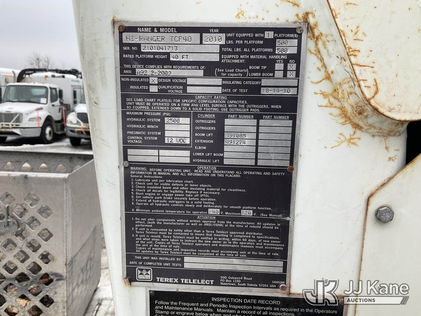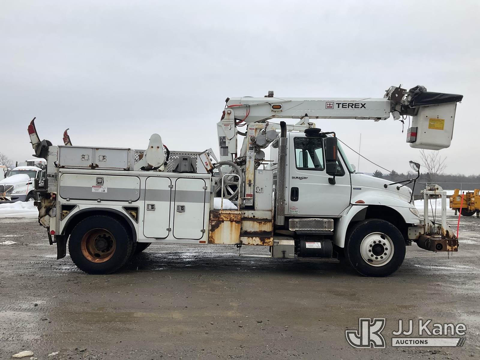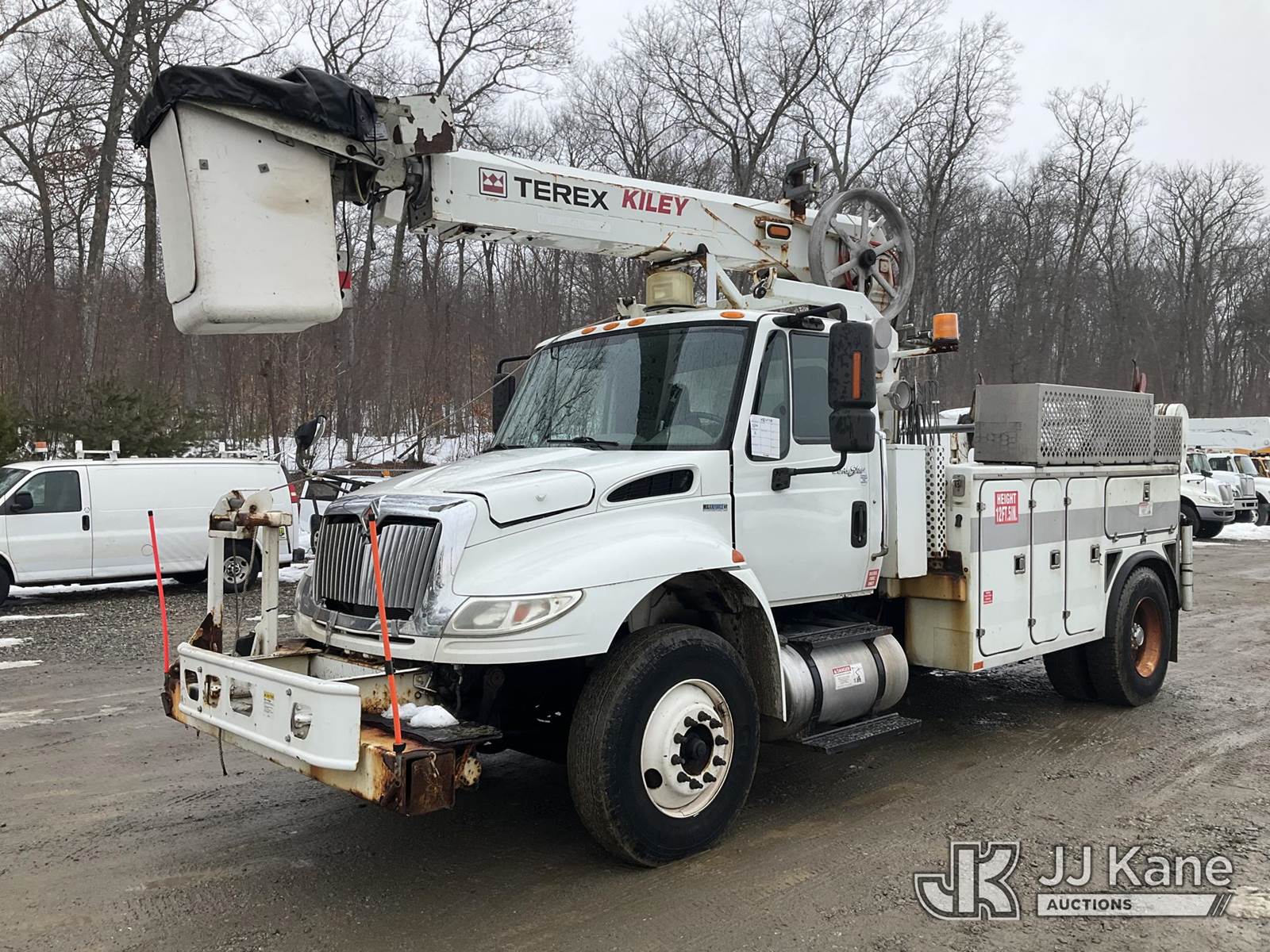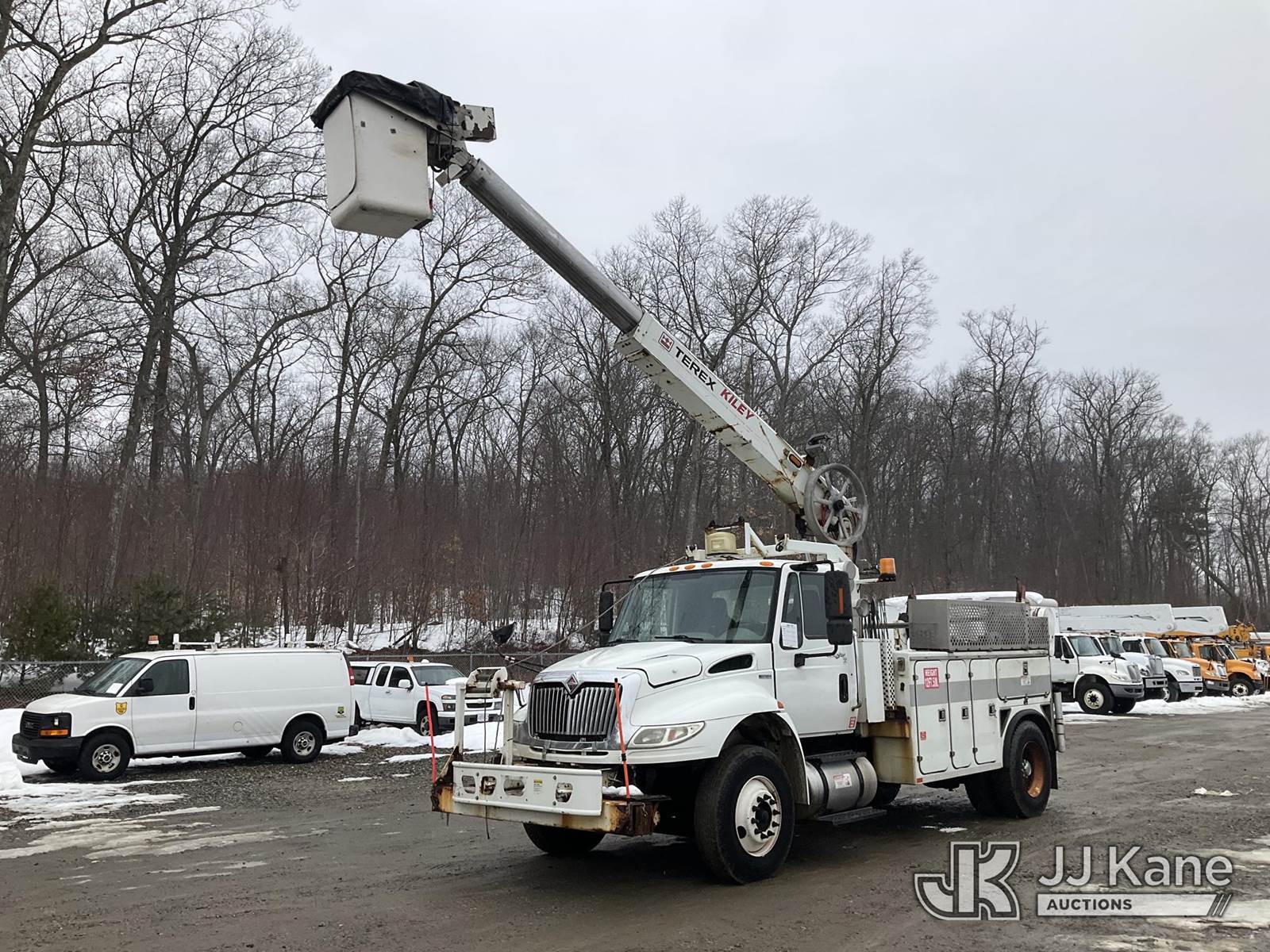 Terex/HiRanger TCP40, 45 ft, Telescopic Cable Placing Bucket Truck s/n 2101041713, with single-man basket, rear mounted on 2011 International 4400 Utility Truck, MaxxForce 7.6L 4X2, diesel, Auto, A/C, with hyd reel carrier, (106,833 miles) (Runs, Moves & Upper Operates) (Check Engine Light On) (Reads 15,037 hours) This is a Titled Item NOTE: This unit is being sold AS IS/WHERE IS via Timed Auction and is located in Shrewsbury, MA. Inspection & preview days for this unit are the 2 business days prior to the first day of items closing for this auction, item is located at 11 Fortune Blvd Shrewsbury, MA 01545 and hours of operations are 8a-4p. For pre-sale questions, please contact Rob Gifford @ (508) 864-4126. (Manuals provided in cab) (Buyer is responsible for removal. Assistance by consignor or JJ Kane Auctions is not assured.)