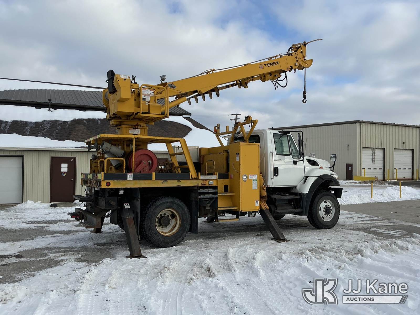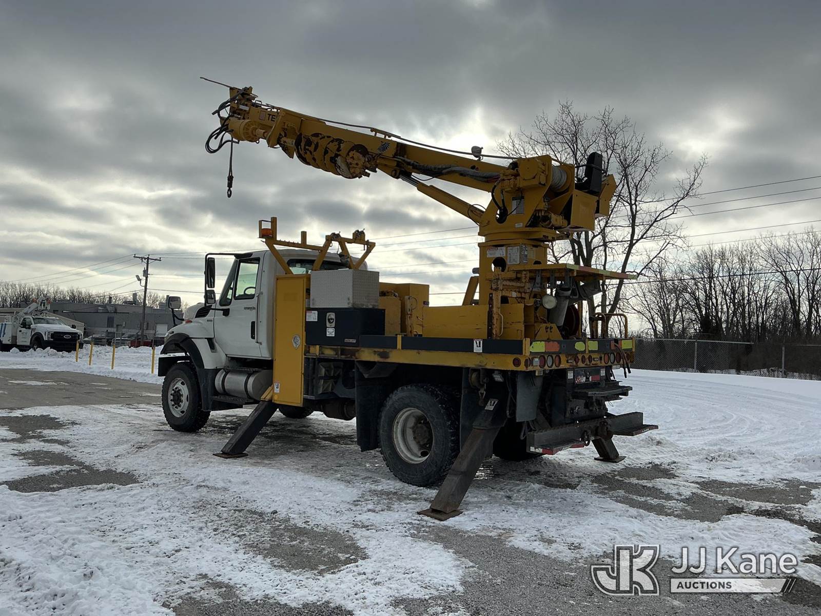 Terex/Telelect Commander 4047, 23,210 Lb Digger Derrick s/n 2100742530, with 47 ft. sheave height, 3-stage hyd. boom, pole grabs, 2 spd digger, heel winch & riding console, rear mounted on 2011 International 7300 Flatbed/Service Truck, 7.6L L6 DIESEL 4X4, Auto, A/C, with Vanair air compressor, capstan, inverter & hyd. tool reel, (106,037 miles) (Runs, Moves & Some Upper Functions Operates) (Check Engine Light On, Boom Extend Functions Inoperable) This is a Titled Item NOTE: This unit is being sold AS IS/WHERE IS via Timed Auction and is located in Fort Wayne, IN. Inspection & preview days for this unit are the 2 business days prior to the first day of items closing for this auction, item is located at 3020 Commercial Rd Fort Wayne, IN 46809 and hours of operations are 8a-4p. For pre-sale questions, please contact Eric Mcintosh @ (260) 205-2483 (Manuals provided in cab) (Buyer is responsible for removal. Assistance by consignor or JJ Kane Auctions is not assured.)