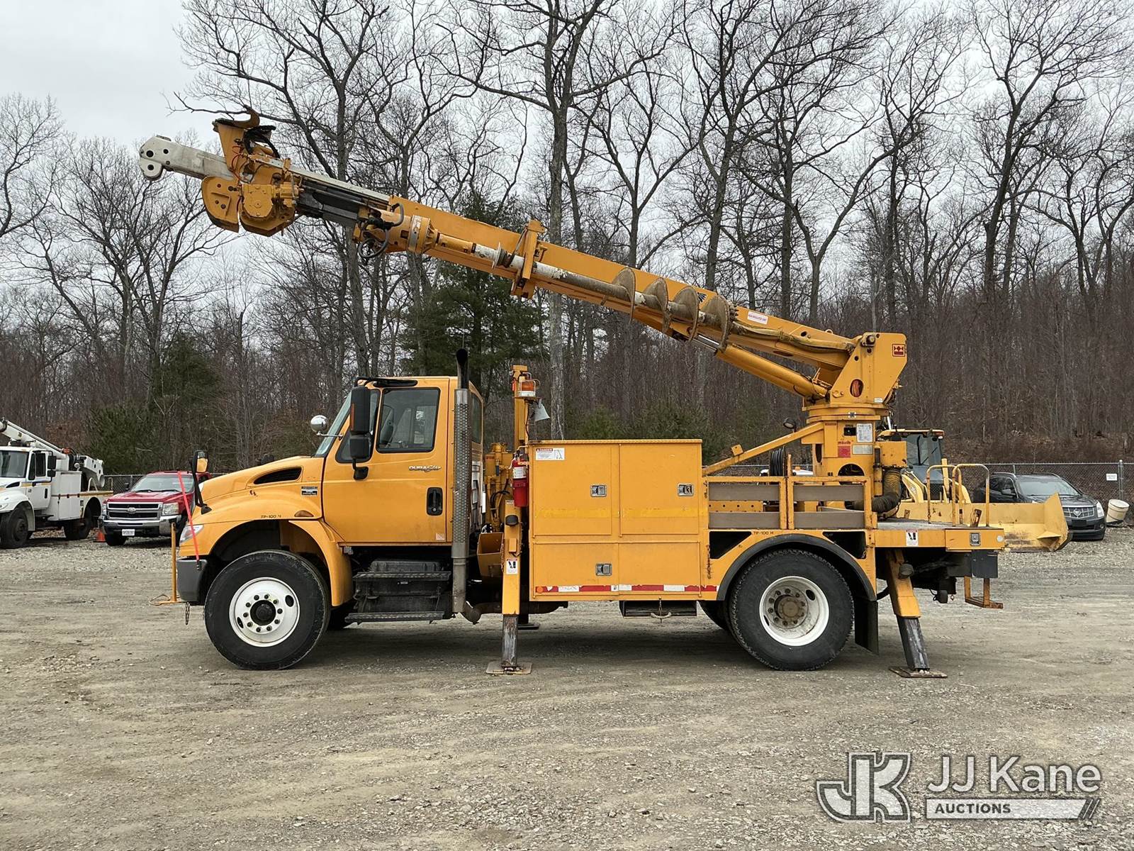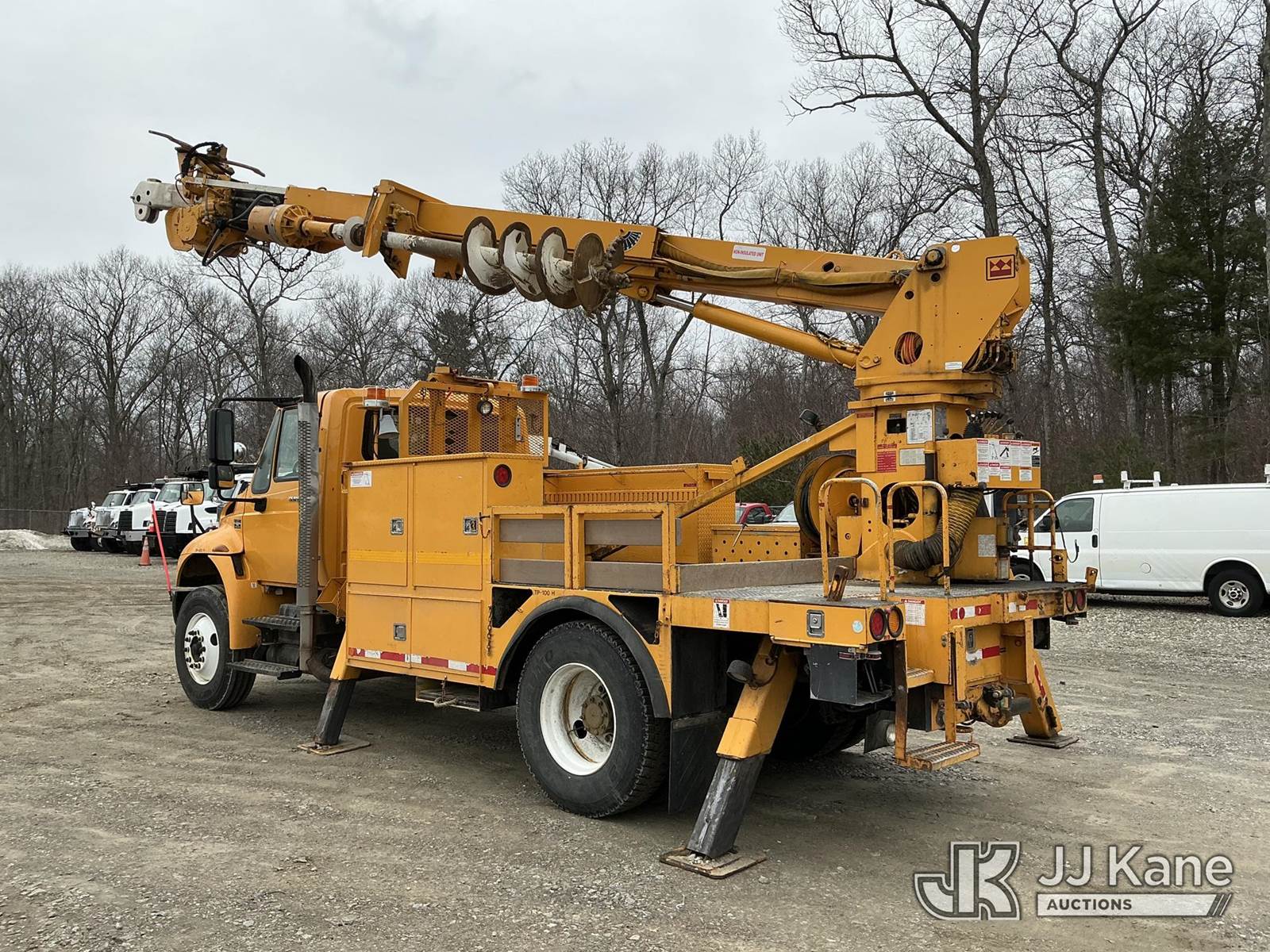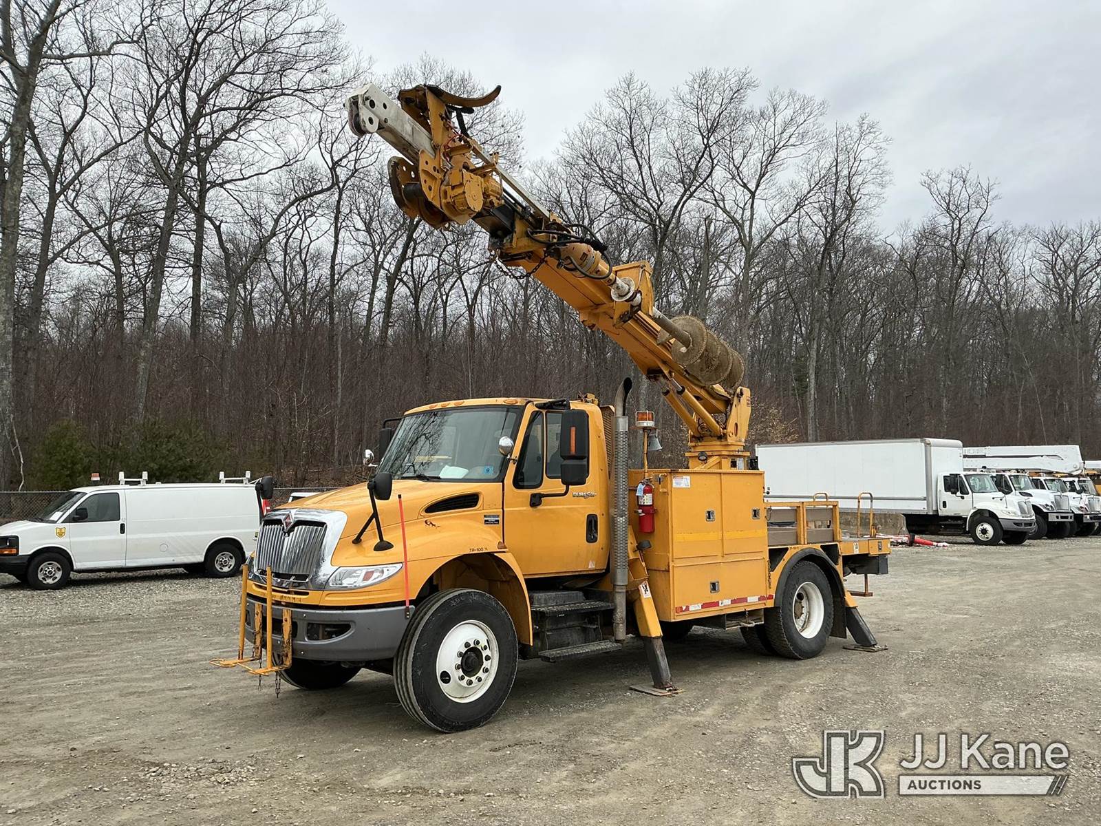 Terex/Telelect Commander C4047, 18,890 Lb Digger Derrick s/n 2110143051, with 47 ft sheave height, 2-spd digger, tip winch, pole grabs & stand up controls, corner mounted on 2011 International 4400 Flatbed/Utility Truck, MaxxForce 7.6L 4X2, diesel, Auto, A/C, (60,696 miles) (Runs, Moves & Upper Operates) (Check Engine Light On, Small Hydraulic Leak At Front Road Side Outrigger) (Reads 8,410 hours) This is a Titled Item NOTE: This unit is being sold AS IS/WHERE IS via Timed Auction and is located in Shrewsbury, MA. Inspection & preview days for this unit are the 2 business days prior to the first day of items closing for this auction, item is located at 11 Fortune Blvd Shrewsbury, MA 01545 and hours of operations are 8a-4p. For pre-sale questions, please contact Rob Gifford @ (508) 864-4126. (Missing manuals, See Auction Company for Manufacturers Information to obtain manuals) (Buyer is responsible for removal. Assistance by consignor or JJ Kane Auctions is not assured.)