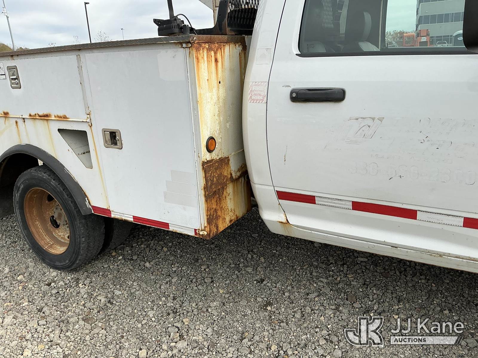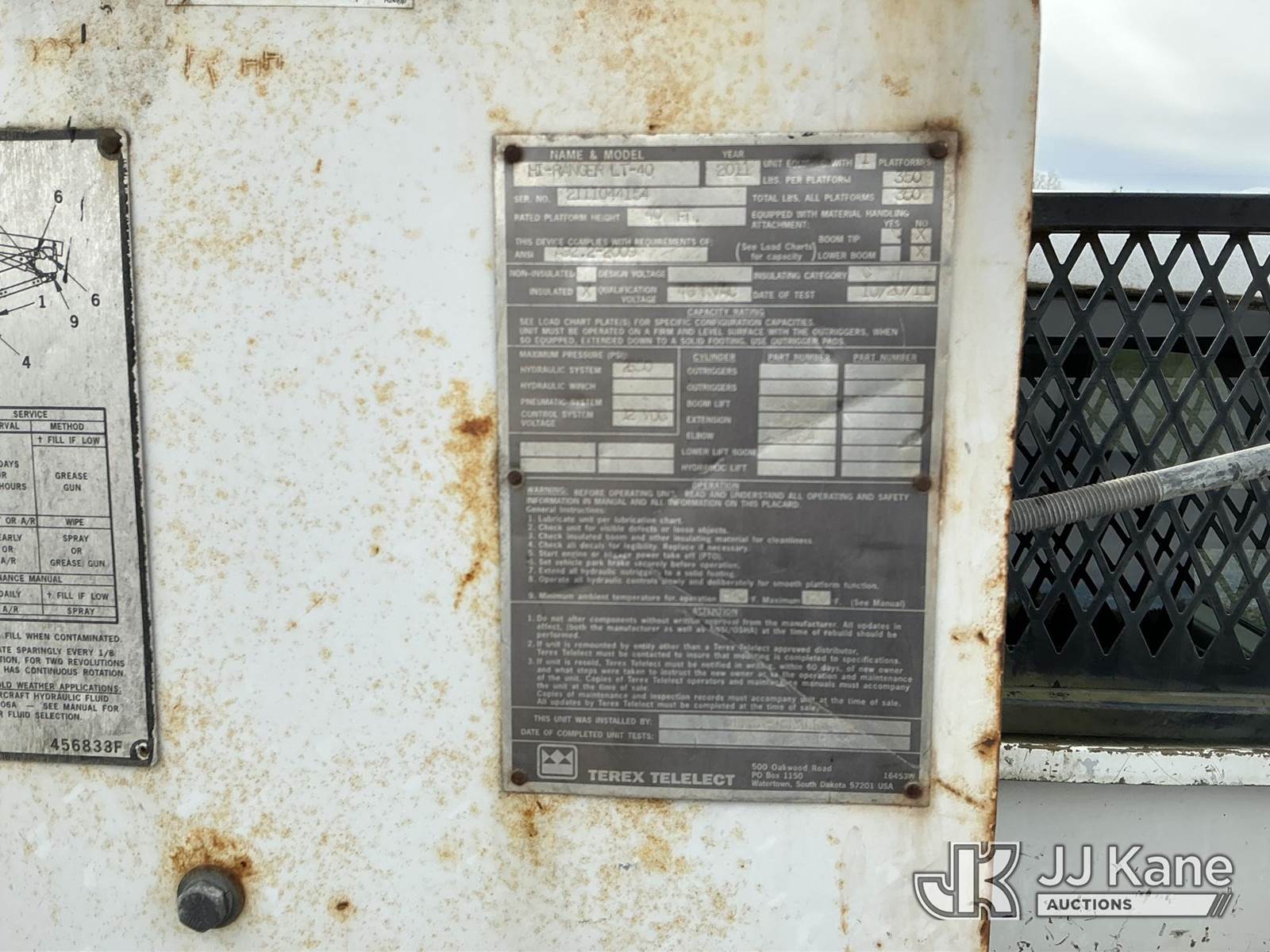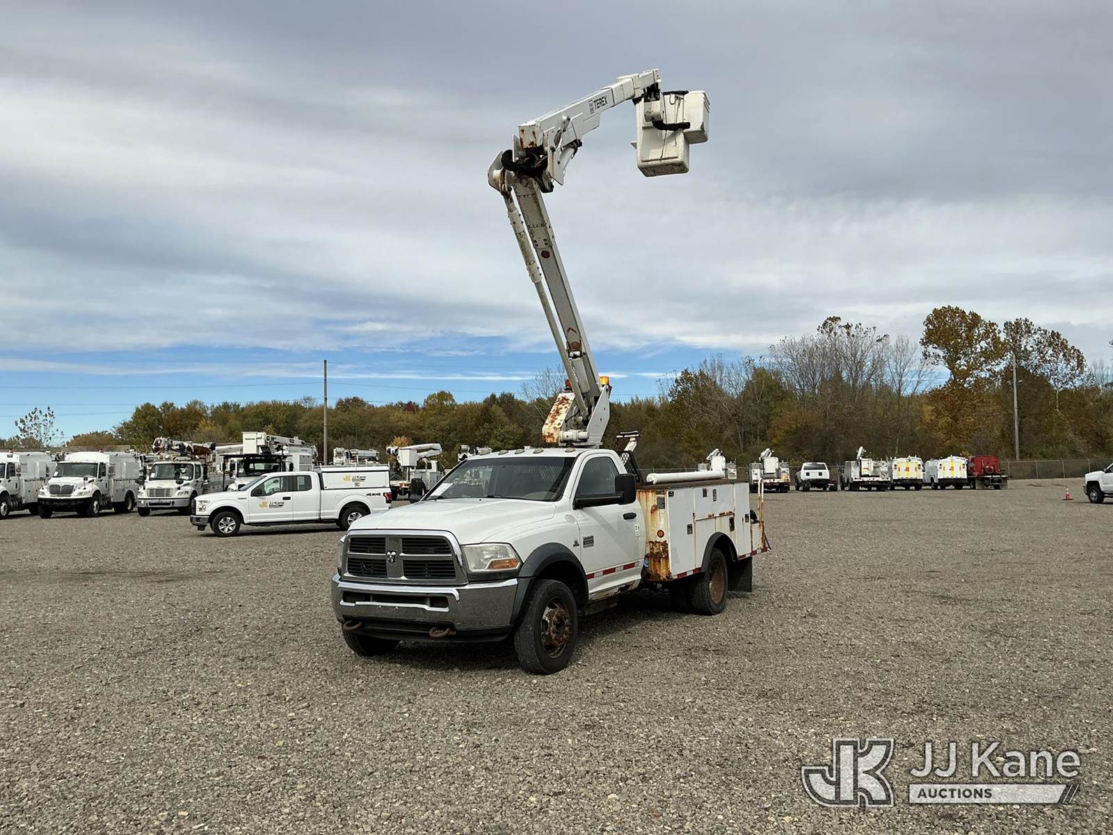 Terex/Telelect Hi-Ranger LT-40, 45 ft, Articulating & Telescopic Bucket Truck s/n 2111044154, with single-man bucket, mounted behind cab on 2011 Dodge Ram 5500 4X4 Regular Cab 2WD Service Truck, 6.7L L6 OHV 24V TURBO DIESEL Automatic, RWD, A/C, (166,504 miles) (Runs & Moves, Upper Operates) (Body & Rust Damage) This is a Titled Item NOTE: This unit is being sold AS IS/WHERE IS via Timed Auction and is located in Louisville, OH. Inspection & preview days for this unit are the 2 business days prior to the first day of items closing for this auction, item is located at 3648 Beck Ave Louisville, OH 44641 and hours of operations are 8a-4p. For pre-sale questions, please contact Aaron Coleman @ (330) 495-4041 or aaron.coleman@jjkane.com. (Manuals provided in cab) (Buyer is responsible for removal. Assistance by consignor or JJ Kane Auctioneers is not assured.)