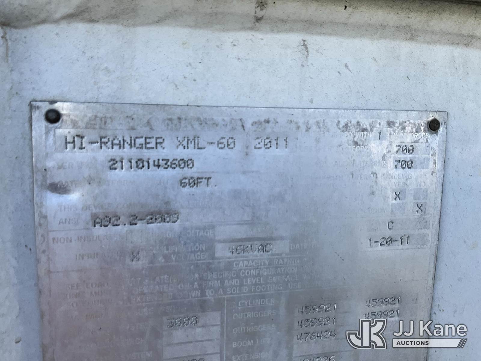 Terex/Telelect Hi-Ranger XML-60, 65 ft, Material Handling Bucket Truck s/n 2110143600, with two-man bucket, rear mounted on 2011 International 7500 T/A Utility Truck, 9.3L L6 diesel, Auto, 6X4, A/C, (131,796 miles) Electric Co-Op Owned (Runs, Moves & Upper Operates) (Outriggers Alarm Always On) This is a Titled Item NOTE: This unit is being sold AS IS/WHERE IS via Timed Auction and is located in Owensboro, KY. For more information & removal arrangements please contact Spencer Owen @ 502-232-2541. Load Out will be by appointment only M-F; must call 24 HRS. in advance. Buyer/Hauler must present copy of paid invoice upon arrival. Purchaser acknowledges ALL lots must be removed within 5 business days of Auction, or a storage fee may be incurred. This item is used and may contain defects that are not immediately detectable. Text description and photos given are meant to be used as a guide only. The conditions are provided by the consignor; you are responsible for inspecting item before bidding. All information provided is believed to be correct but no warranty as such is either intended or implied. All items are sold AS IS - WHERE IS AND WITH ALL FAULTS AND DEFECTS THEREIN. Auctioneer Michael Whitebread / License # 256617 (Missing manuals, See Auction Company for Manufacturers Information to obtain manuals) (Buyer is responsible for removal. Assistance by consignor or JJ Kane Auctions is not assured.)