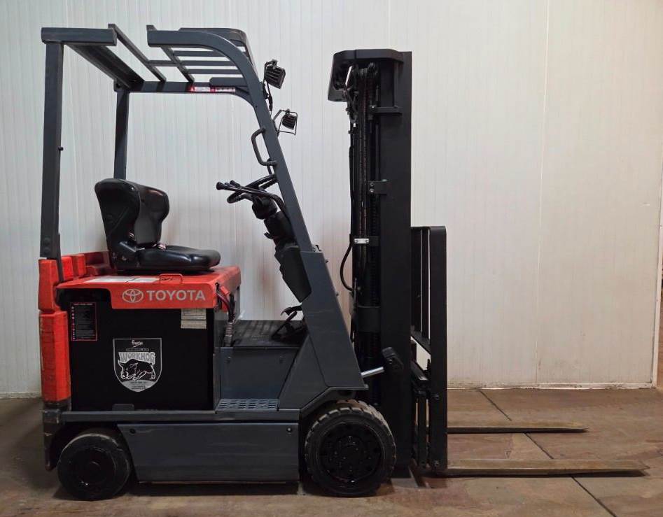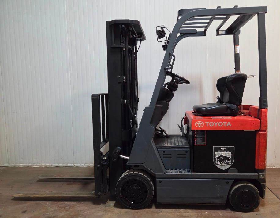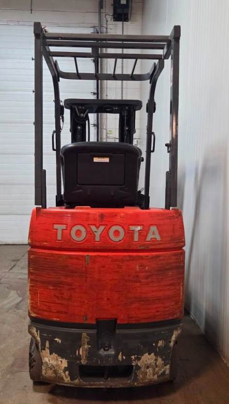 TOYOTA(2011) 7FBEU18 3,000 lb. capacity 36V 3-wheel electric forklift with 189” max. lift height, 3-stage mast, side shift, cushion tires,...