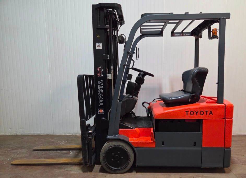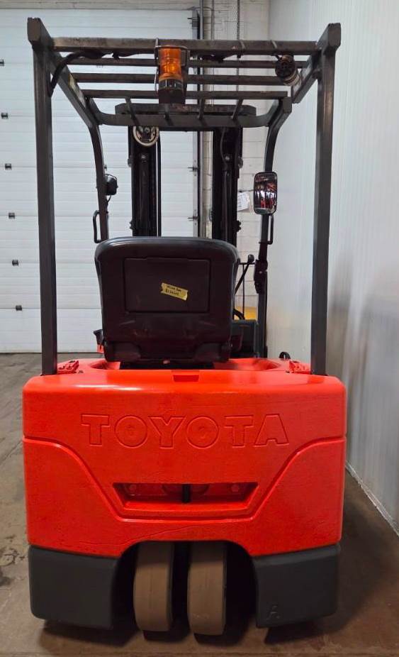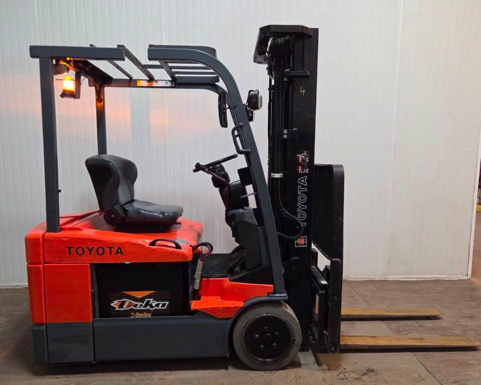 TOYOTA (2011) 7FBEU18 3,000 lb. capacity 36V 3-wheel electric forklift with 189” max. lift height, 3-stage mast, side shift, cushion tires, 12,329 drive hours & 3,172 lift hours (recorded on meter at time of listing), s/n: 22548