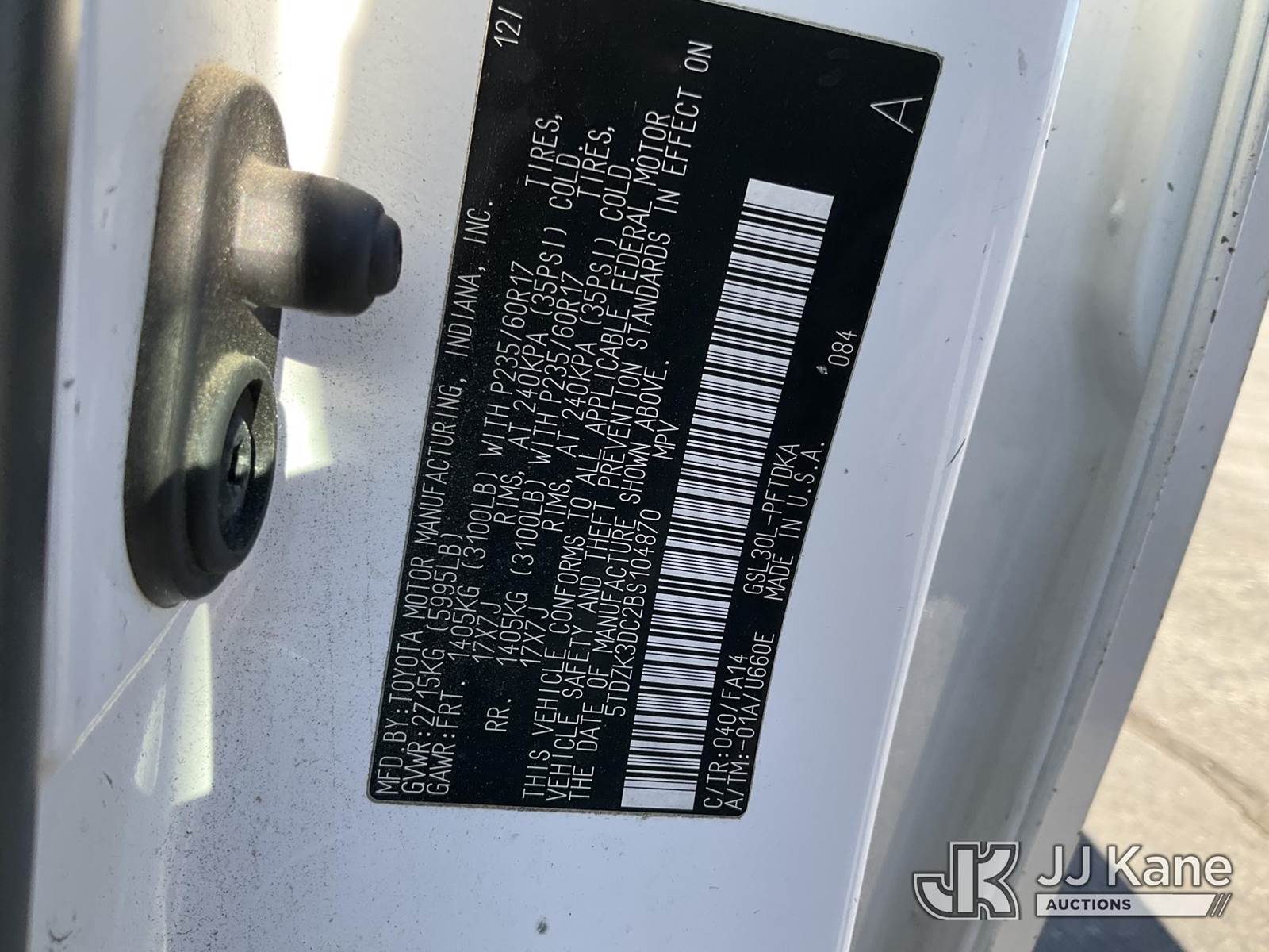 2011 Toyota Sienna Mini Passenger Van, 6-cyl gas, Auto, A/C, (119,757 miles) (Runs & Moves) (Interior Damage, Driver Side Mirror Damaged) This is a Titled Item NOTE: This unit is being sold AS IS/WHERE IS via Timed Auction and is located in Salt Lake City, UT. Titles executed exactly as bidder registered. Ensure your name and/or business name and address in JJ Kane and/or ProxiBid is correct before bidding. For more information or removal arrangements please call 801-519-0123 and provide sale date and lot number. (Buyer is responsible for removal. Assistance by consignor or JJ Kane Auctioneers is not assured.)