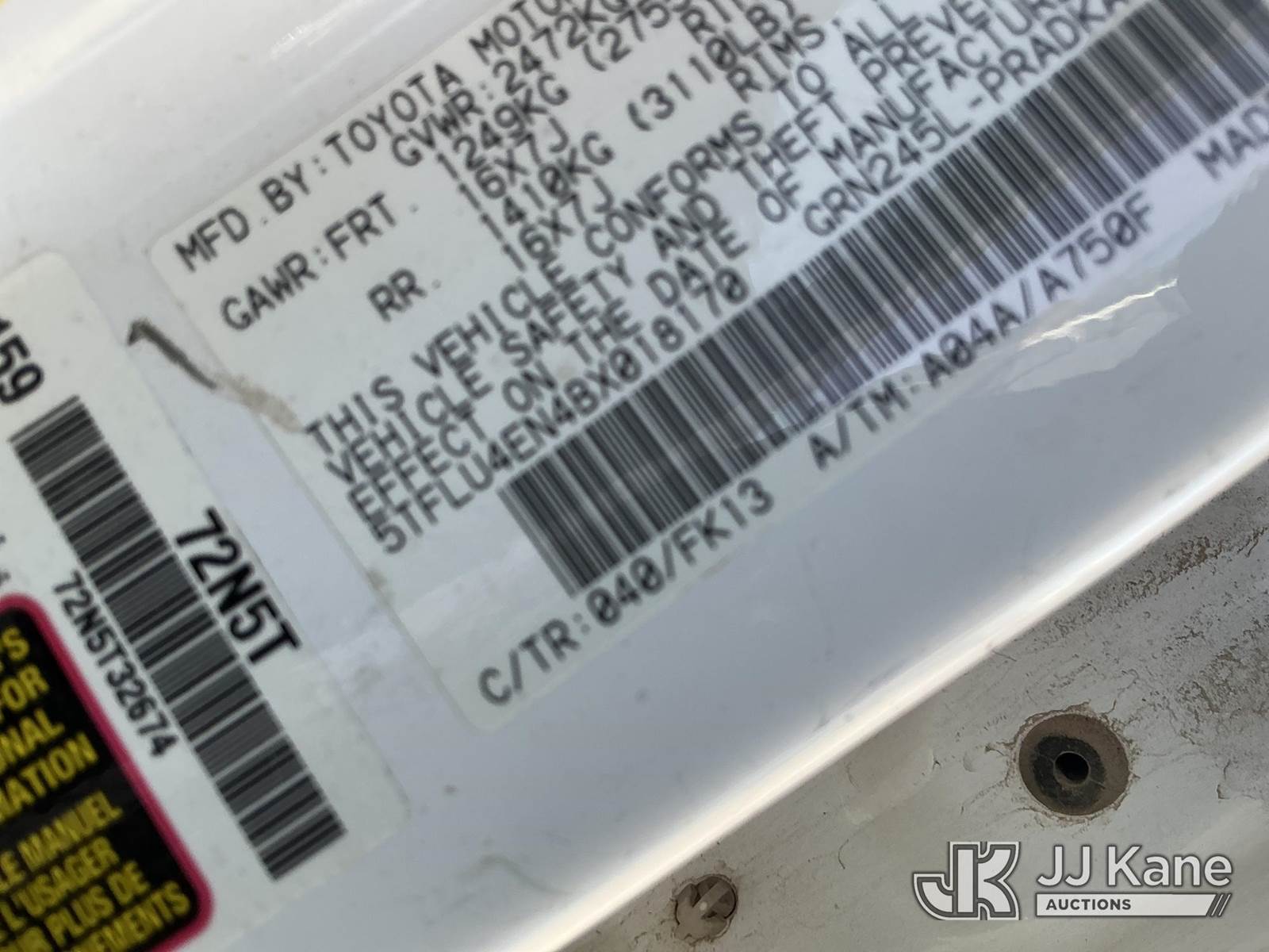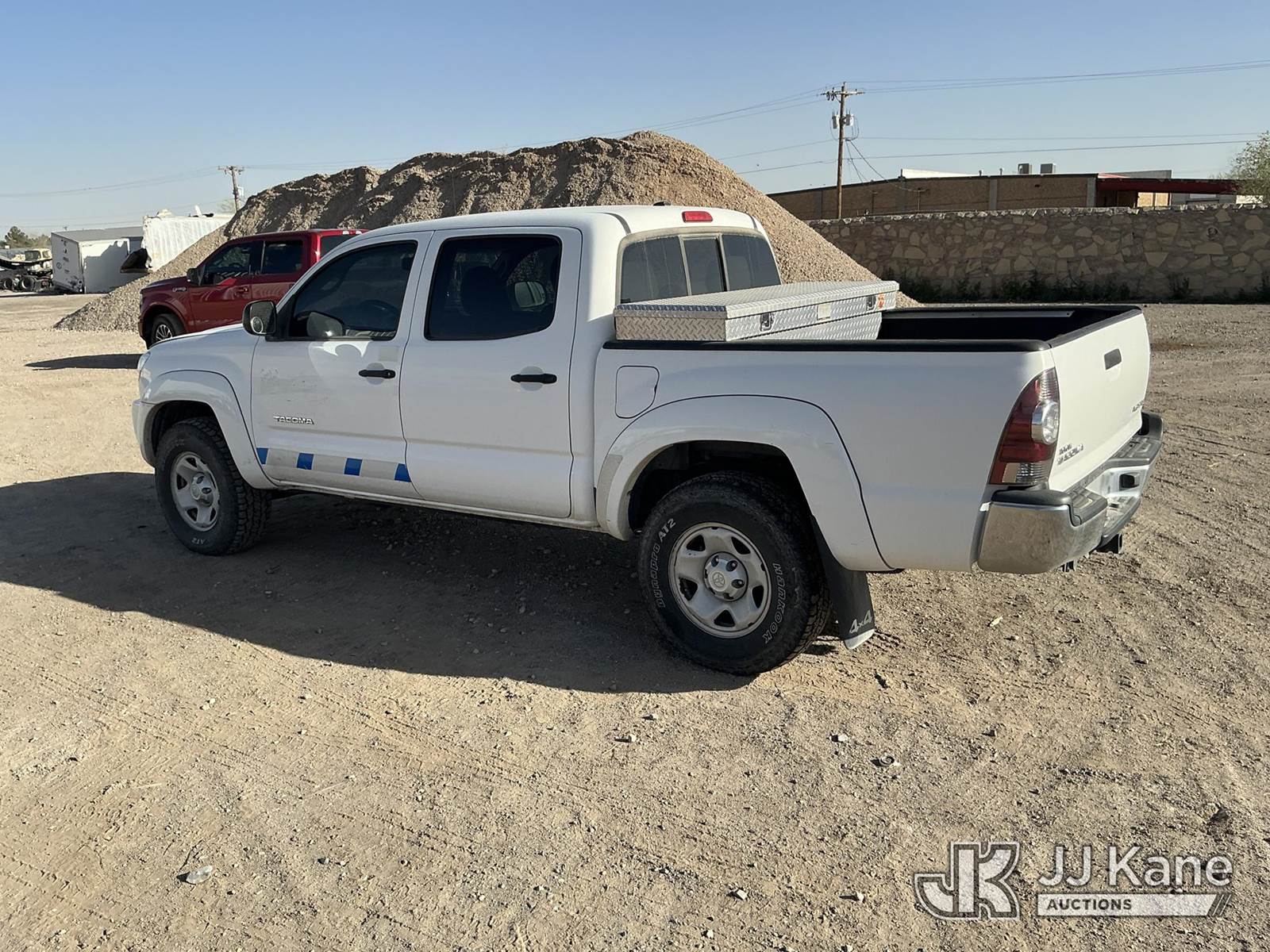 2011 Toyota Tacoma Crew-Cab Pickup Truck, 6-cyl gas, 4WD, Auto, A/C, with bed mounted toolbox , (133,838 miles) (Runs & Moves) (Paint & Body Damage) This is a Titled Item NOTE: This unit is being sold AS IS/WHERE IS via Timed Auction and is located in El Paso, TX. Inspection & preview days for this unit are by appointment only; please contact us at contact@jjkane.com or 84-Go-JJKane for more details. (Buyer is responsible for removal. Assistance by consignor or JJ Kane Auctions is not assured.)