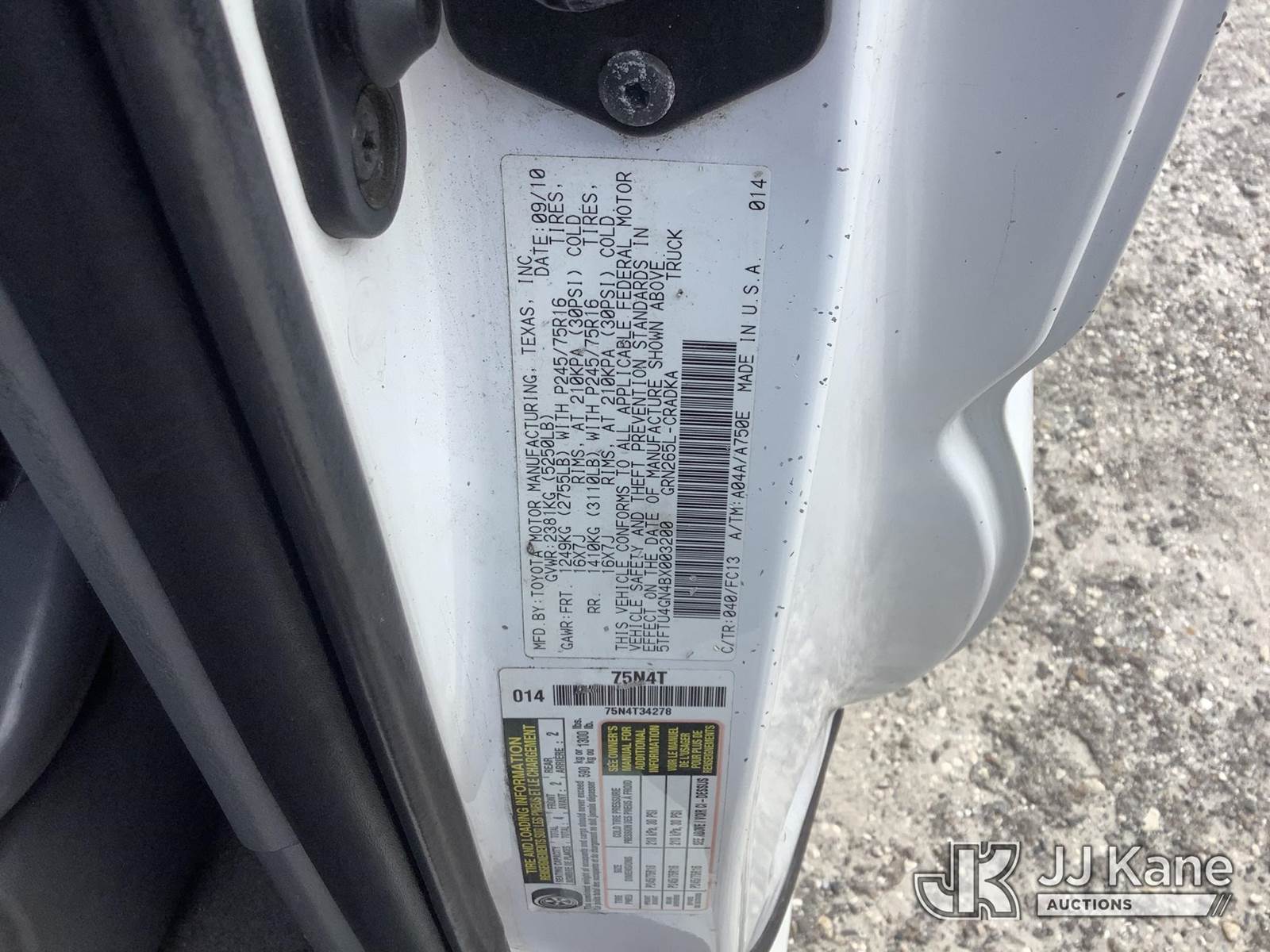 2011 Toyota Tacoma Extended-Cab Pickup Truck, 6-cyl gas, Auto, A/C, (213,430 miles) (Runs & Moves) (Paint Damage) This is a Titled Item NOTE: This unit is being sold AS IS/WHERE IS via Timed Auction and is located in Thonotosassa, FL. Inspection & preview days for this unit are the 2 business days prior to the first day of items closing for this auction, item is located at 11720 N US 301 Thonotosassa, Fl 33592 and hours of operations are 8a-4p. For pre-sale questions, please contact Office Staff @ (813) 986-2485. (Buyer is responsible for removal. Assistance by consignor or JJ Kane Auctioneers is not assured.)