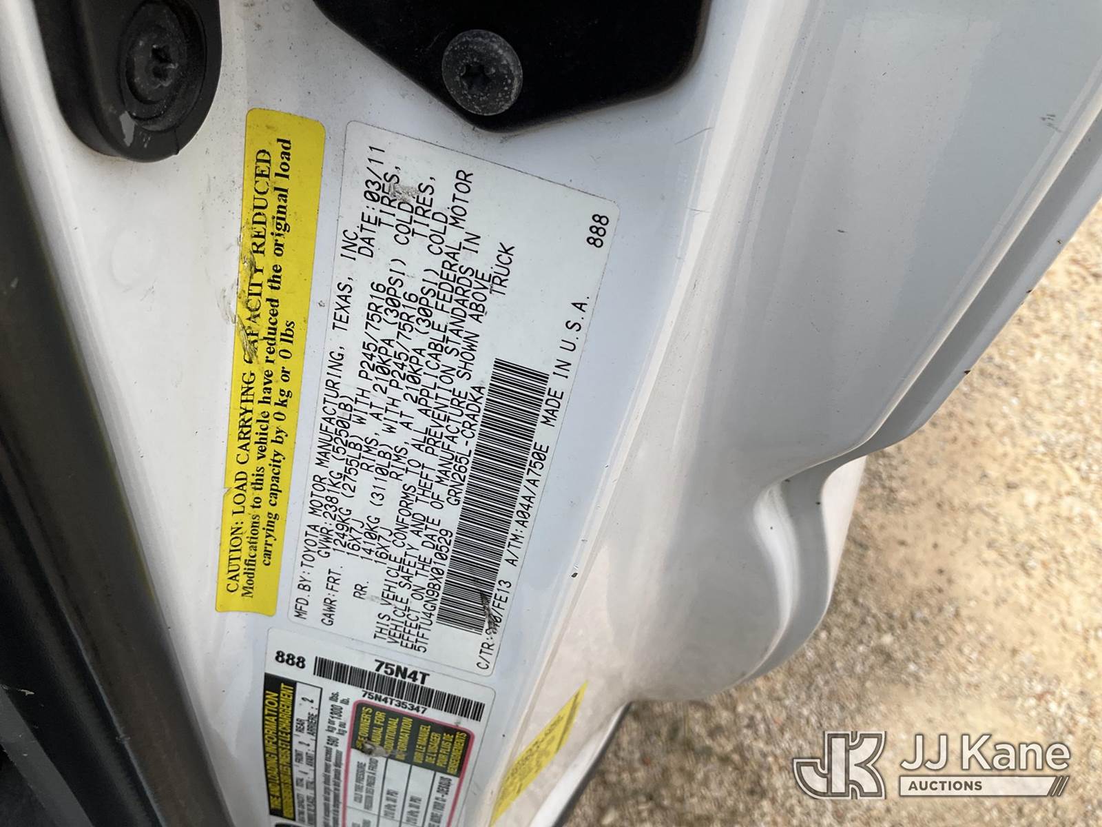 2011 Toyota Tacoma Extended-Cab Pickup Truck, 6-cyl gas, RWD, Auto, A/C, with Truck Bed Boxes, (128,931 miles) (Not Running, Condition Unknown, Has Power, Check Engine Light On, Battery Light On, Traction Control Light On, Tire Pressure Light On, A/T Oil Temp Light On, Oil Light On) This is a Titled Item NOTE: This unit is being sold AS IS/WHERE IS via Timed Auction and is located in Marion, TX. Inspection & preview days for this unit are the 2 business days prior to the first day of items closing for this auction, item is located at 3292 S Santa Clara Rd Marion, TX 78124 and hours of operations are 8a-4p. For pre-sale questions, please contact Brian Jarrell @ 210-540-3147. (Buyer is responsible for removal. Assistance by consignor or JJ Kane Auctions is not assured.)