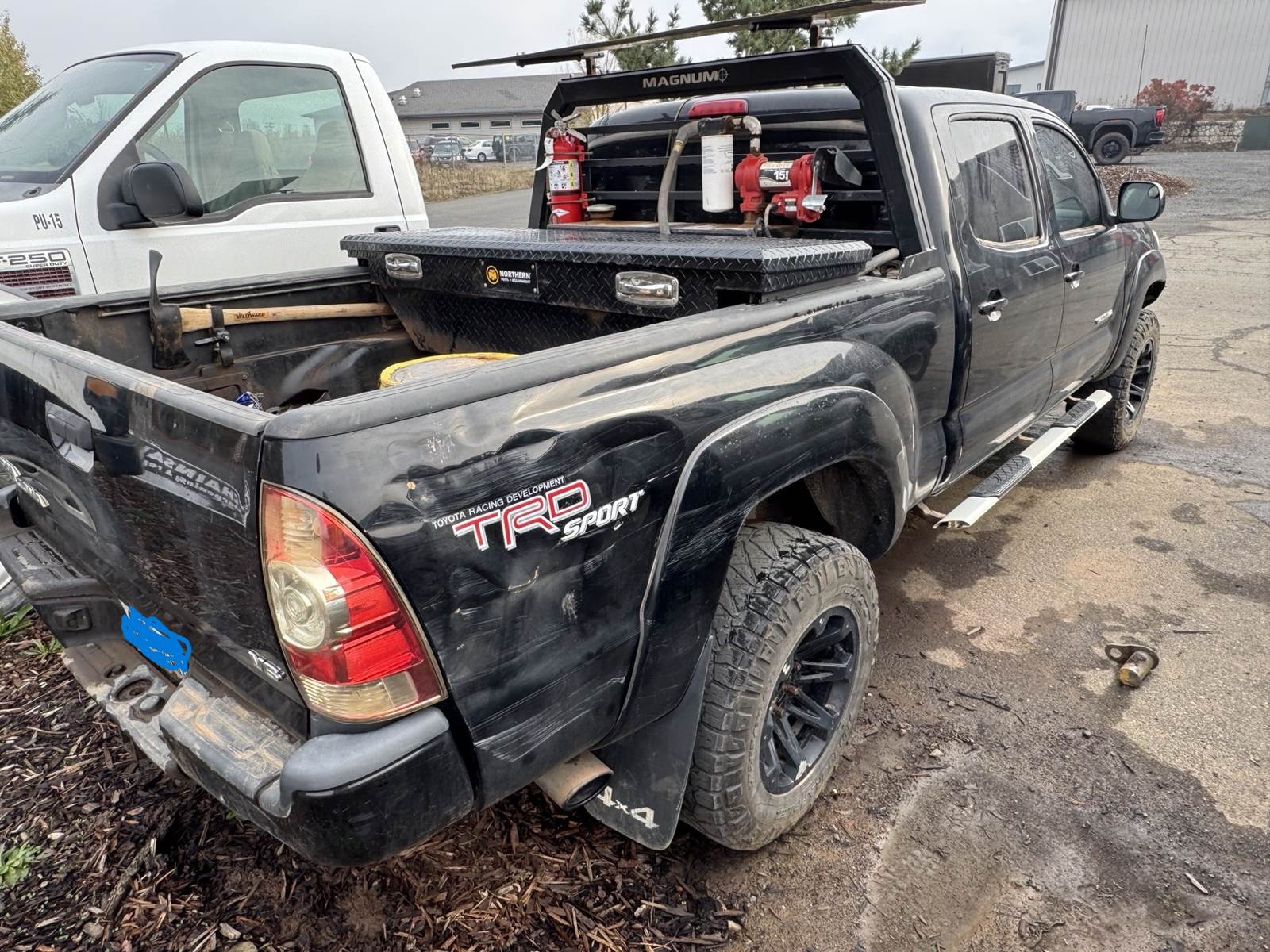 TRUCK CLEANS UP NICELY AND HAS A FEW DENTS IN THE BED OF THE TRUCK
