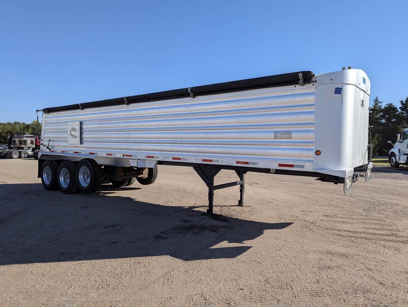 2016 Travis 39' half round aluminum frameless end dump, front axle lifts, electric tarp, Nationwide delivery available,
