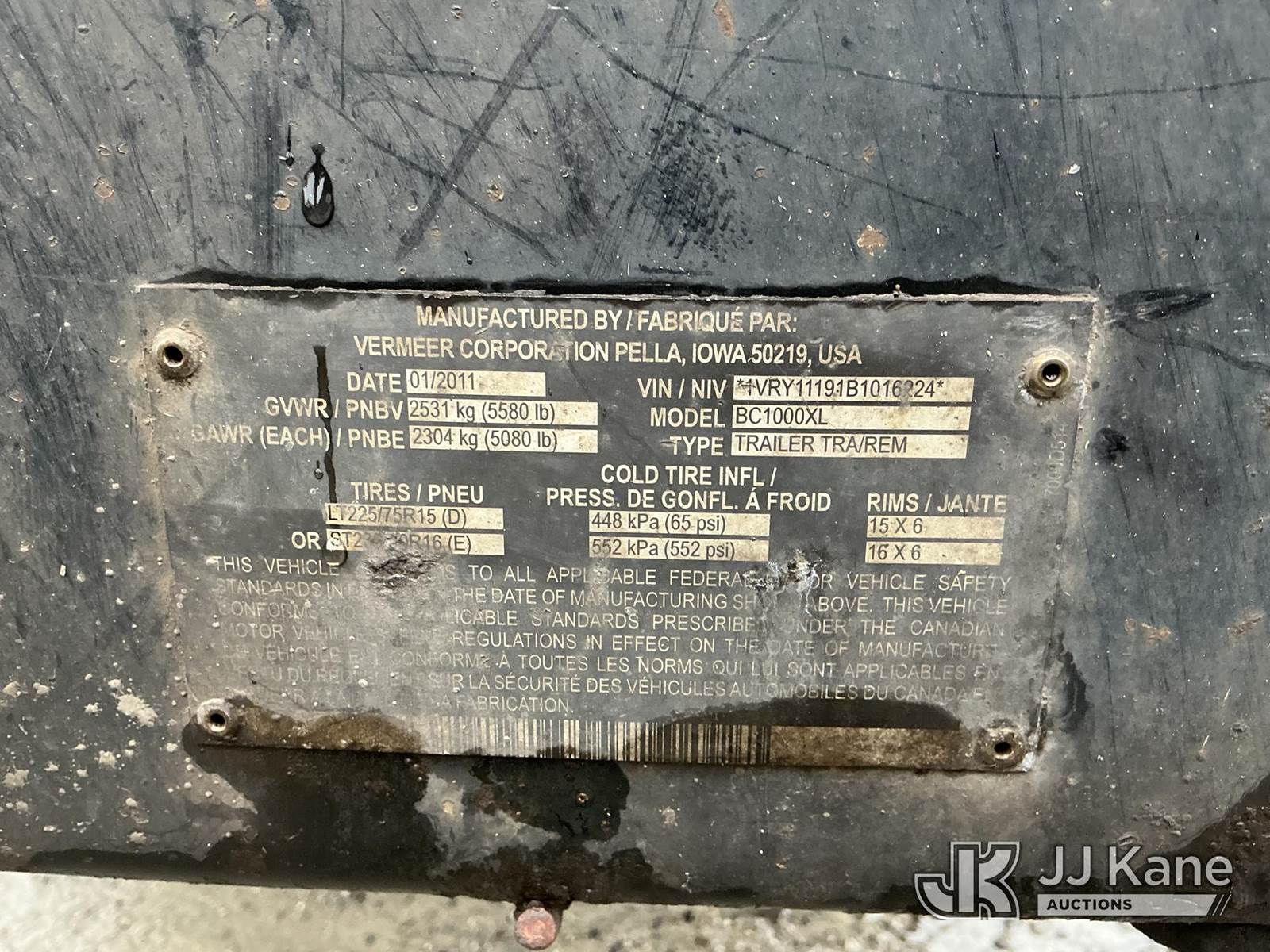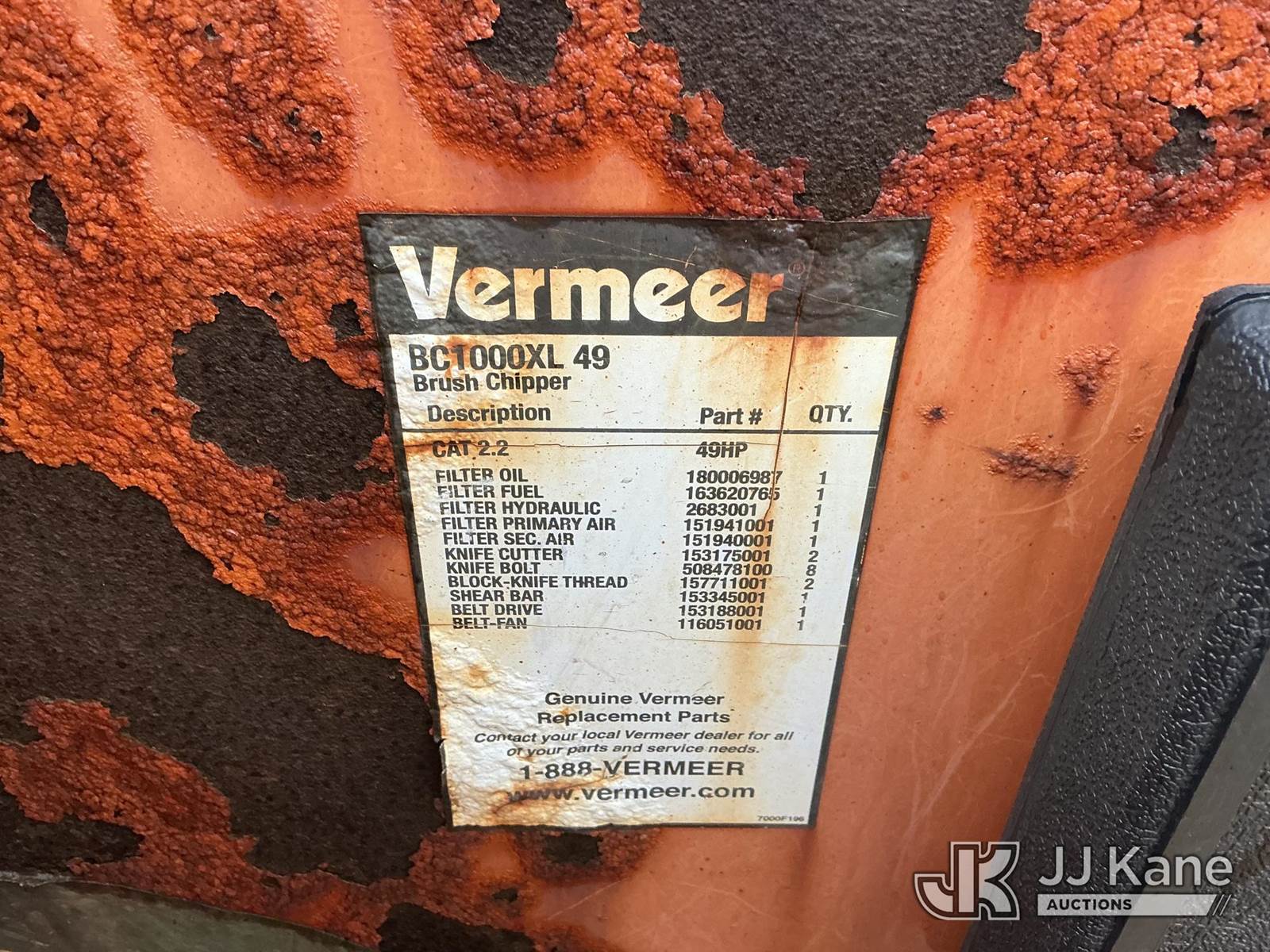 2011 Vermeer BC1000XL Chipper (12in Drum), Cat diesel, (Not Running, Damaged Ignition, Road Side Tire Does Not Hold Air, Seller States: Needs Tires, Hydraulic Valve Repair, Feed Wheel Motor, Suction Hose & Ignition Switch) (Reads 2,796 hours) This is a Titled Item NOTE: This unit is being sold AS IS/WHERE IS via Timed Auction and is located in Shrewsbury, MA. Inspection & preview days for this unit are the 2 business days prior to the first day of items closing for this auction, item is located at 11 Fortune Blvd Shrewsbury, MA 01545 and hours of operations are 8a-4p. For pre-sale questions, please contact Rob Gifford @ (508) 864-4126. (Buyer is responsible for removal. Assistance by consignor or JJ Kane Auctions is not assured.)