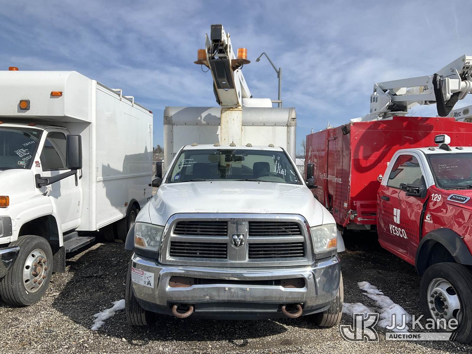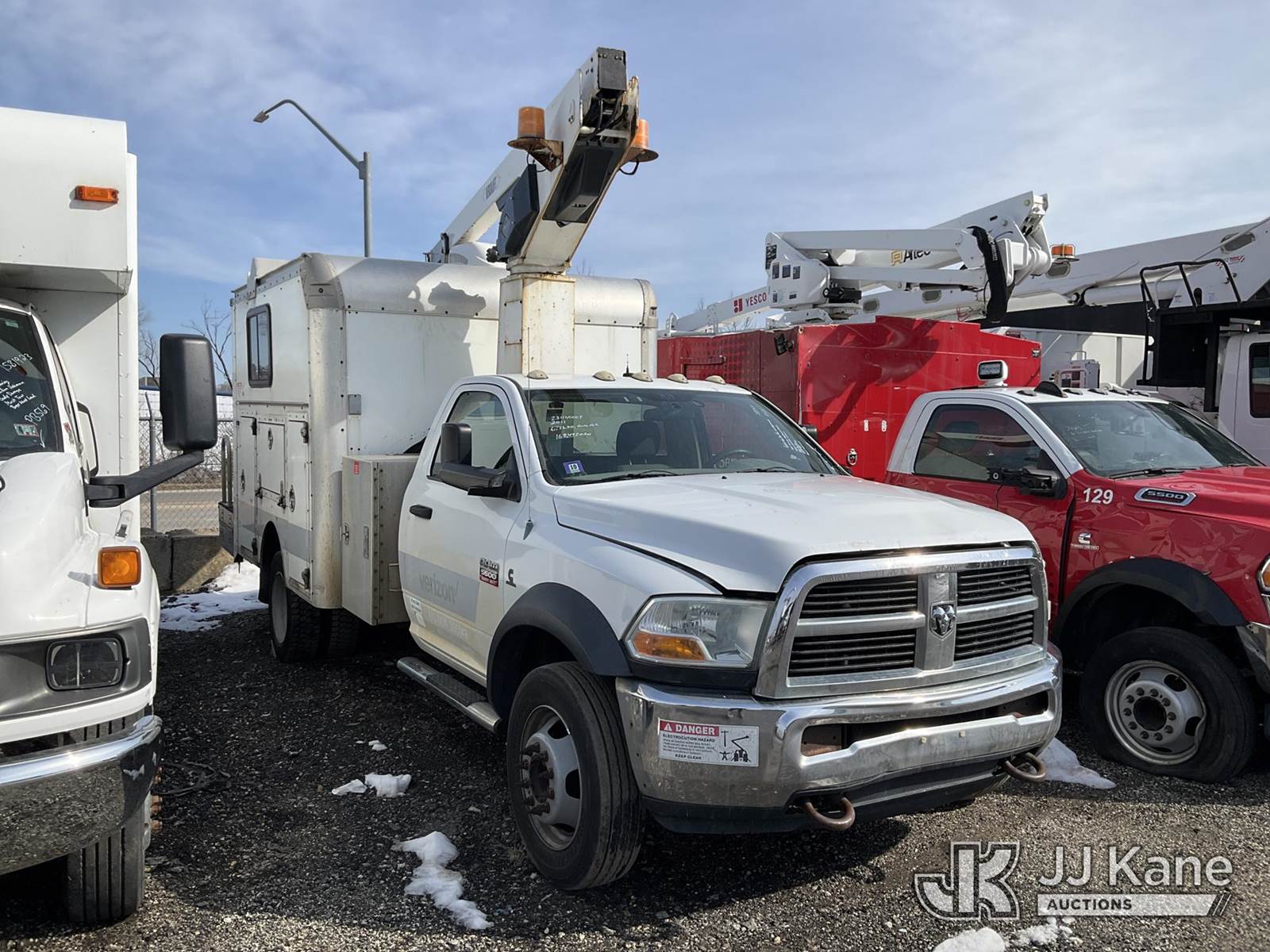 Versalift TEL29N 03, 34 ft, Telescopic Non-Insulated Bucket Truck s/n AG100036, with single-man bucket, mounted behind cab on 2011 RAM 5500 Cable Splicing Truck, 6.7L diesel, Auto, A/C, (168,492 miles) (Possible Wrong Key Or Key Not Programmed, Not Running, Condition Unknown, Upper Condition Unknown, Body Damage, Missing Upper Plate, Must Tow, Buyer Must Load) This is a Titled Item NOTE: This unit is being sold AS IS/WHERE IS via Timed Auction and is located in Plymouth Meeting, PA. Inspection & preview days for this unit are the 2 business days prior to the first day of items closing for this auction, item is located at 1402 Conshohocken Rd Plymouth Meeting, PA 19462 and hours of operations are 8a-4p. For pre-sale questions, please contact Bruce Thomas @ (267) 887-0392 or bruce.thomas.jr@jjkane.com. (Manuals provided in cab) (Buyer is responsible for removal. Assistance by consignor or JJ Kane Auctions is not assured.)