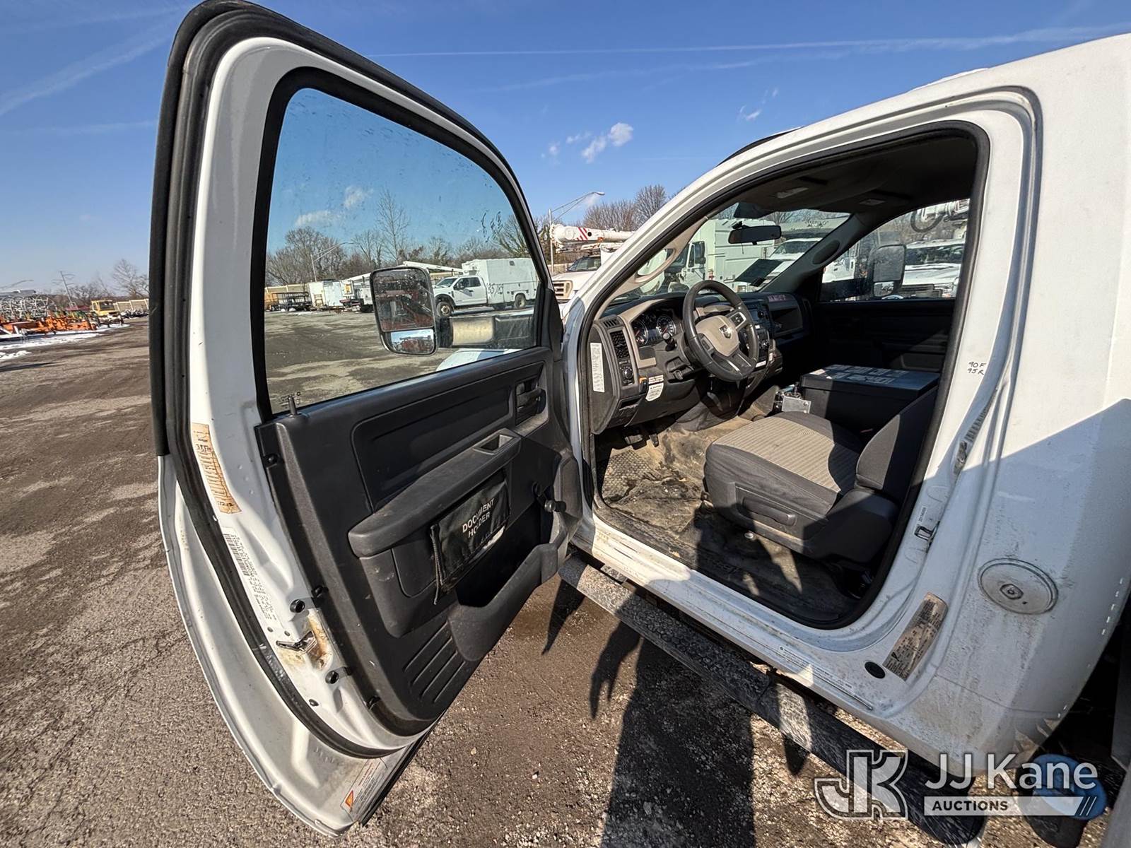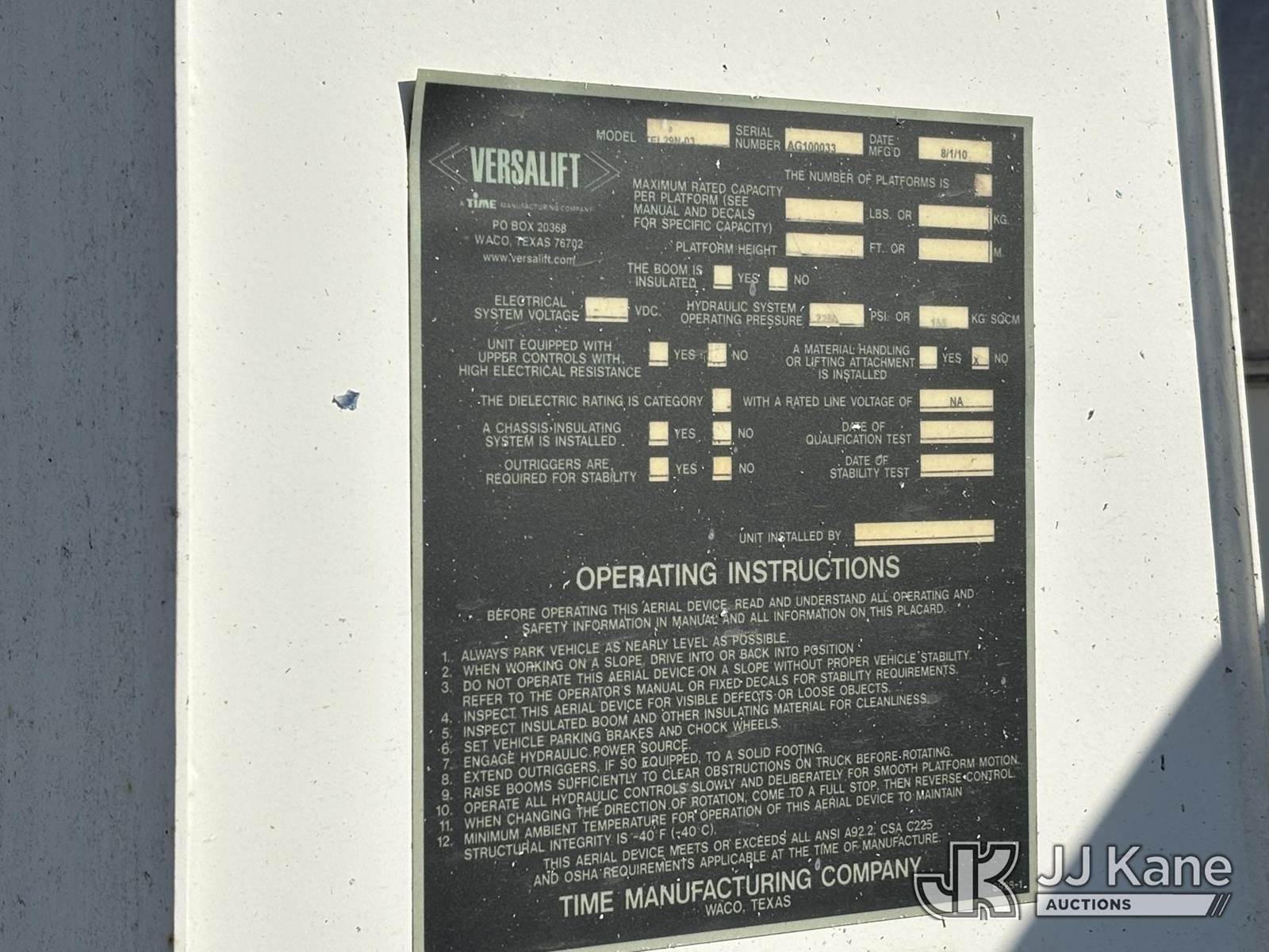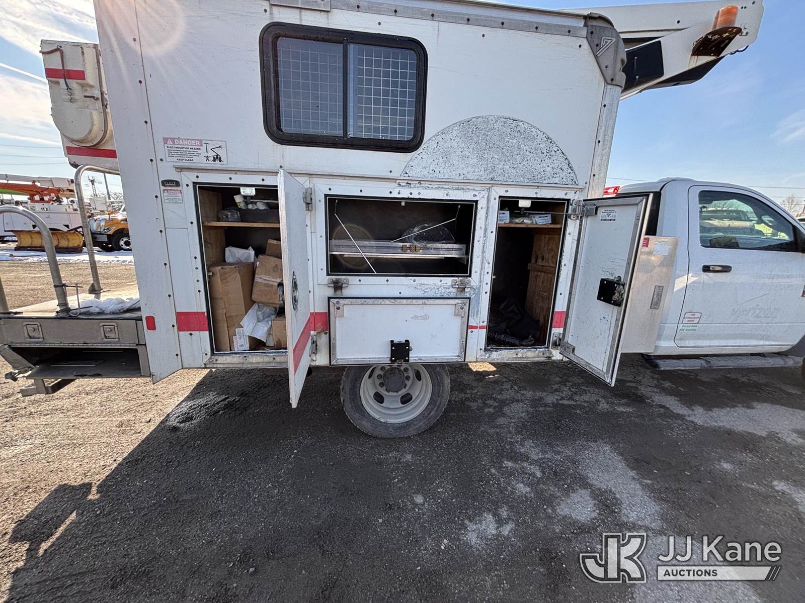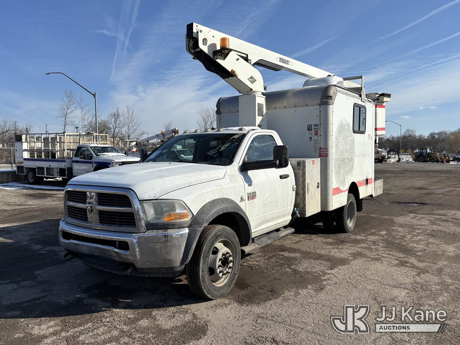 Versalift TEL29N03, 34 ft, Telescopic Non-Insulated Bucket Truck s/n AG100033, with single-man bucket, mounted behind cab on 2011 Dodge 5500 Cable Splicing Truck, 6.7L diesel, Auto, A/C, (185,189 miles) (Jump To Start, Runs Moves & Upper Condition Unknown, Body Damage, Check Engine Light On, Not Charging, Must Tow) This is a Titled Item NOTE: This unit is being sold AS IS/WHERE IS via Timed Auction and is located in Plymouth Meeting, PA. Inspection & preview days for this unit are the 2 business days prior to the first day of items closing for this auction, item is located at 1402 Conshohocken Rd Plymouth Meeting, PA 19462 and hours of operations are 8a-4p. For pre-sale questions, please contact Bruce Thomas @ (267) 887-0392 or bruce.thomas.jr@jjkane.com. (Missing manuals, See Auction Company for Manufacturers Information to obtain manuals) (Buyer is responsible for removal. Assistance by consignor or JJ Kane Auctions is not assured.)
