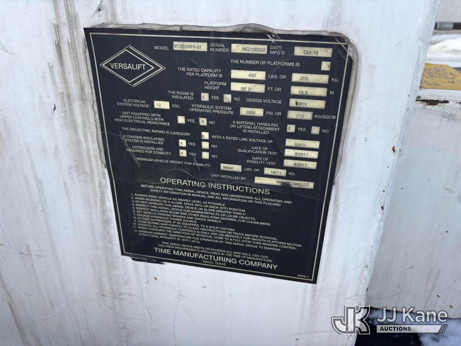 Versalift V0350MHI-01, 55 ft, Over-Center Material Handling Bucket Truck s/n MG10002, with Single-Man Bucket & 4 Outriggers, center mounted on 2011 Freightliner M2 106 T/A Utility Truck, Cummins diesel, Auto, A/C, (45,971 miles) (Runs Moves & Upper Operates, Rust On Utility Body) This is a Titled Item NOTE: This unit is being sold AS IS/WHERE IS via Timed Auction and is located in Plymouth Meeting, PA. Inspection & preview days for this unit are the 2 business days prior to the first day of items closing for this auction, item is located at 1402 Conshohocken Rd Plymouth Meeting, PA 19462 and hours of operations are 8a-4p. For pre-sale questions, please contact Bruce Thomas @ (267) 887-0392 or bruce.thomas.jr@jjkane.com. (Missing manuals, See Auction Company for Manufacturers Information to obtain manuals) (Buyer is responsible for removal. Assistance by consignor or JJ Kane Auctions is not assured.)