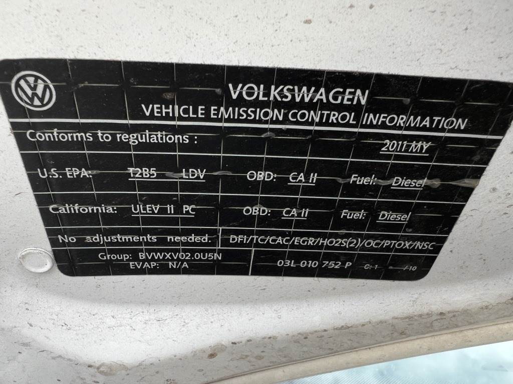 Location: Washougal WA ***City Government Surplus*** VIN: 3VWPL8AJ4BM634159 Engine: TDI 2.0L 4cyl Diesel Transmission: Automatic Cross bars, power windows, power mirrors, power locks, cruise control, A/M, AM/FM/Bluetooth, 205/55R16 tires. Miles: 52,604