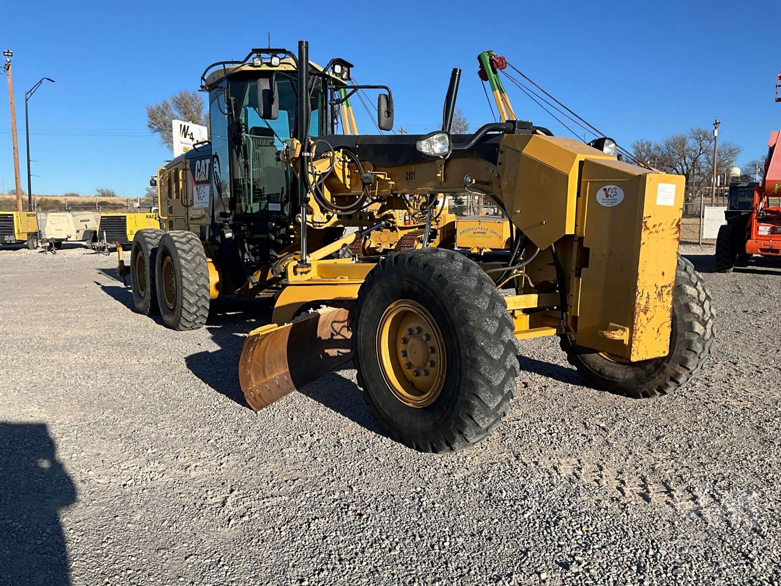 CATERPILLAR MOTORGRADER VHP MODEL VHP MODEL, CAB, A/C, RADIO, JOYSTICK CONTROLS, 14' MOLDBOARD, MS RIPPER, PUSH BLOCK, REAR VIEW CAMERA, 14:00R-24 TIRES, HOUR METER READS: 3864, ***MAIN FRAME WAS WELDED & REPAIRED***