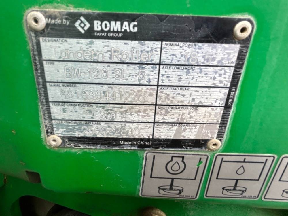 2012 2017 BOMAG BW120SL-5 VIBRATORY TANDEM SMOOTH DRUM ROLLER