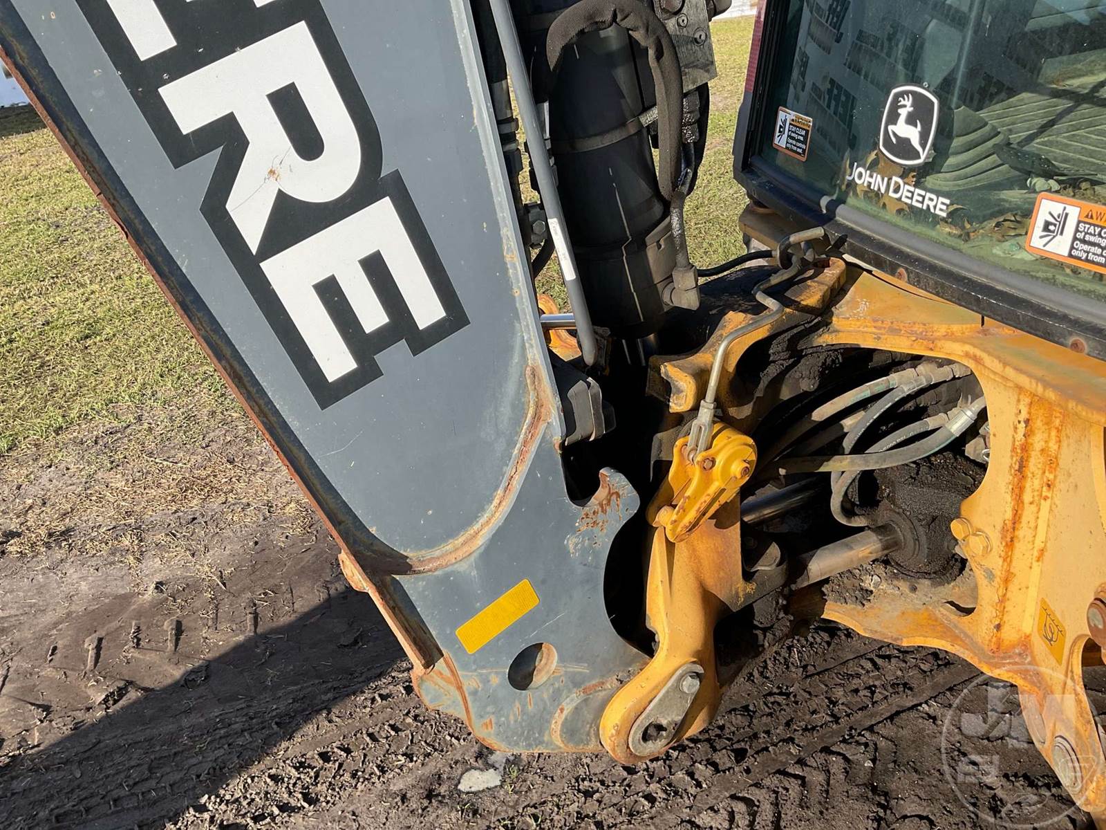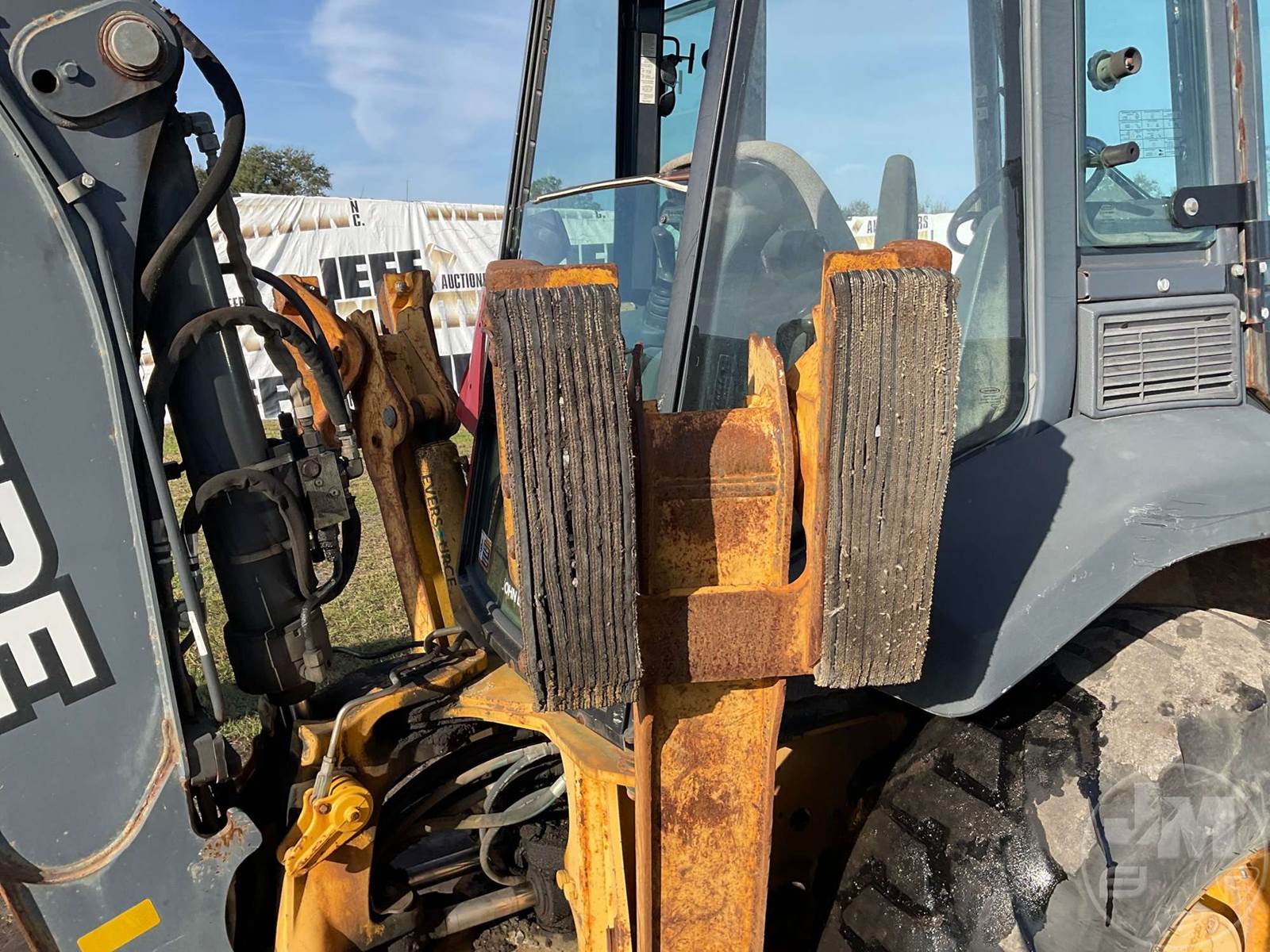DEERE 4X4 LOADER BACKHOE, CANOPY, QC, GP BKT, AUX HYD, 24" BUCKET, FRONT TIRE SIZE 12-16.5NHS, REAR TIRE SIZE 19.5L-24, HOUR METER READS:...