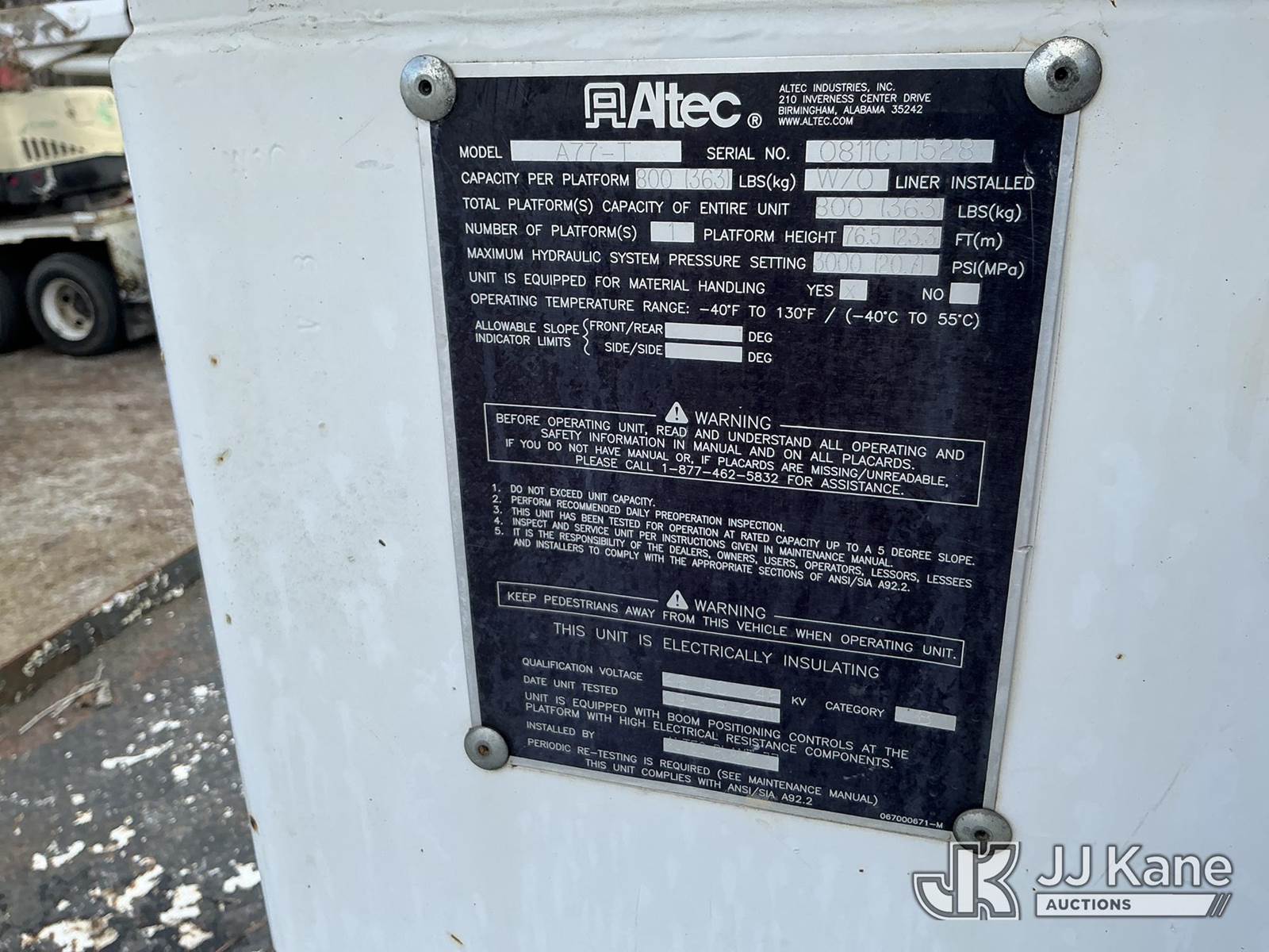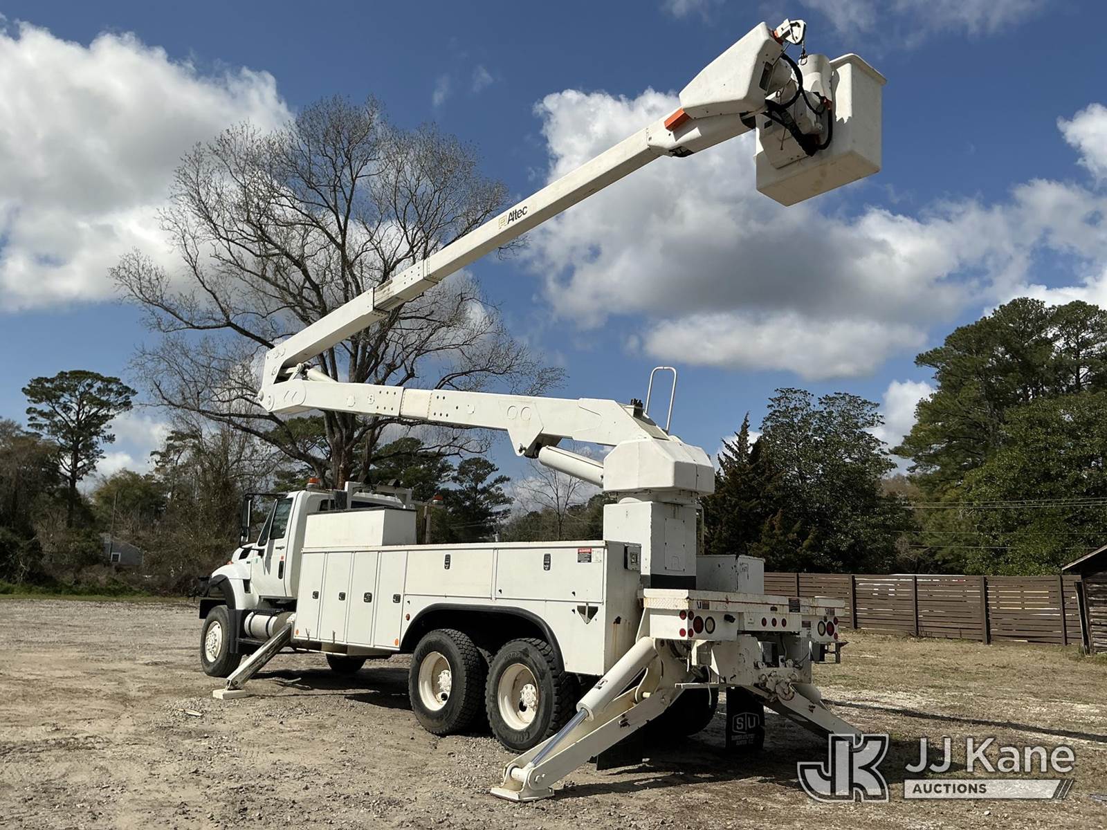 Altec A77T, 82 ft, Articulating & Telescopic Material Handling Bucket Truck s/n 0811C11528, with two man bucket & 4 hydraulic outriggers, rear mounted on 2012 International 7400 6x6 Utility Truck, MaxxForce 7.6L diesel, Auto, A/C, (36,001 miles) (Runs, Moves, Upper Operates) This is a Titled Item NOTE: This unit is being sold AS IS/WHERE IS via Timed Auction and is located in Castle Hayne, NC. Inspection & preview days for this unit are by appointment only; please contact us at contact@jjkane.com or 84-Go-JJKane for more details. (Manuals provided in cab) (Buyer is responsible for removal. Assistance by consignor or JJ Kane Auctions is not assured.)