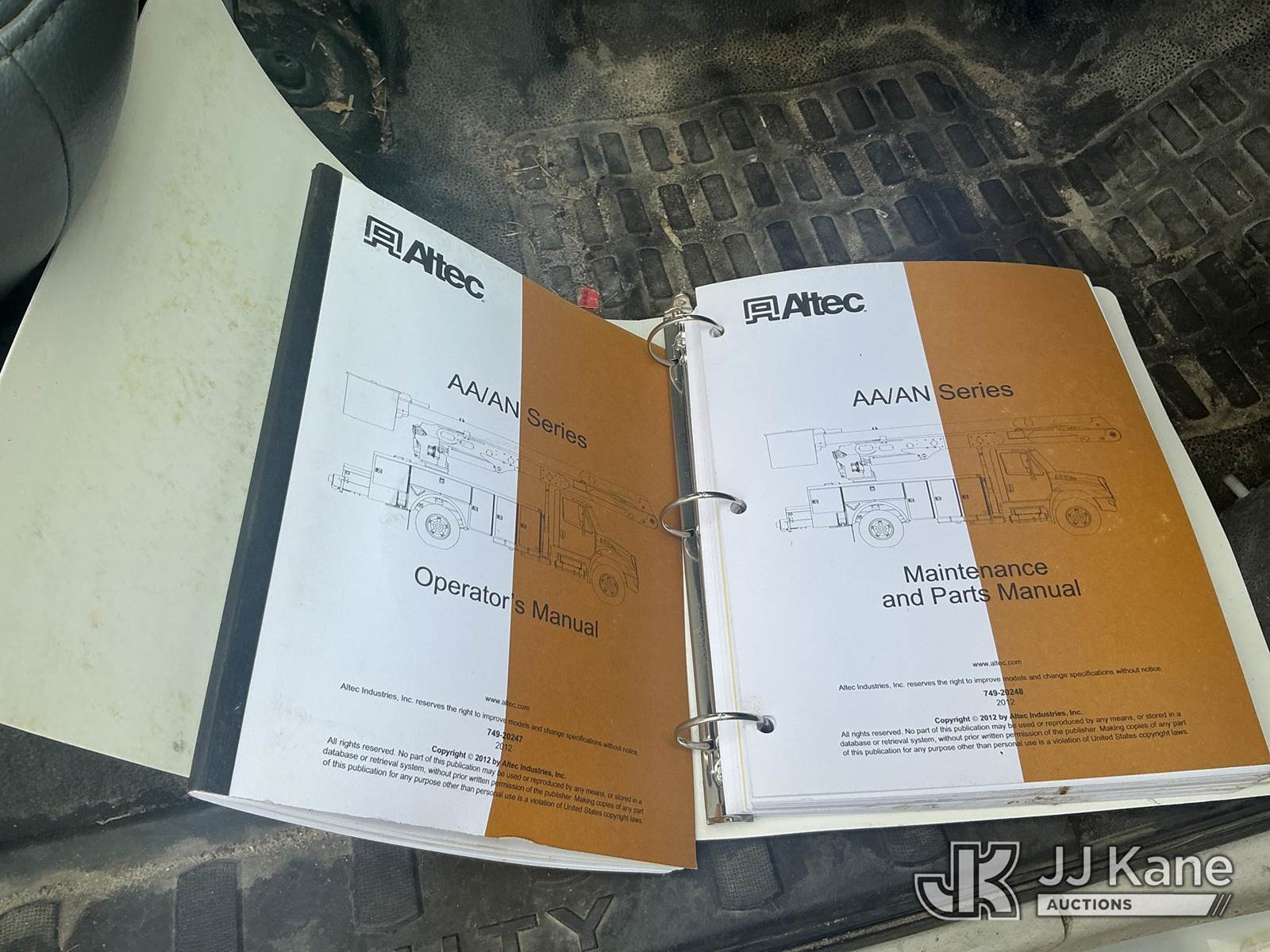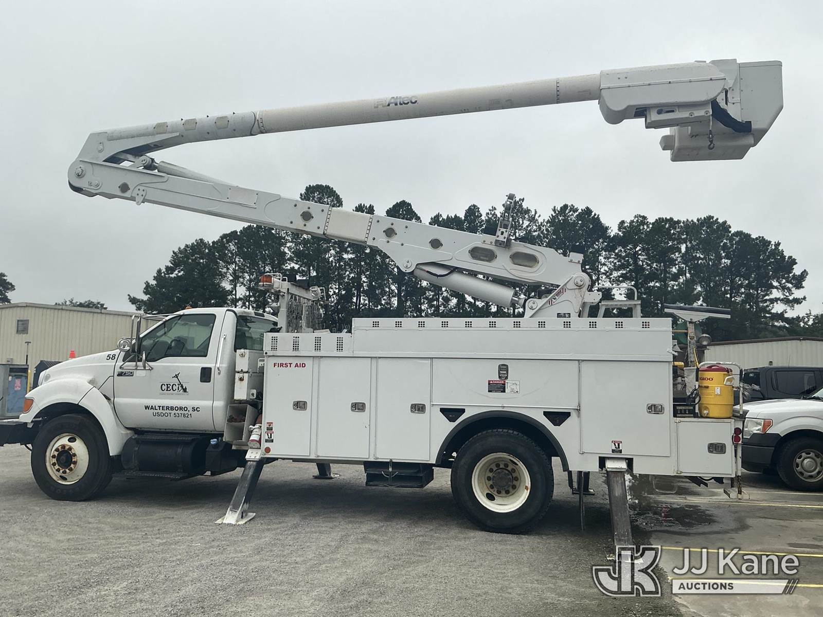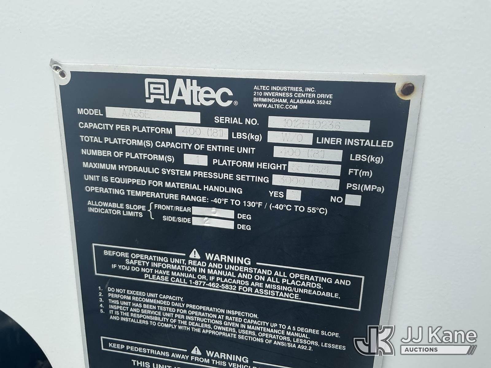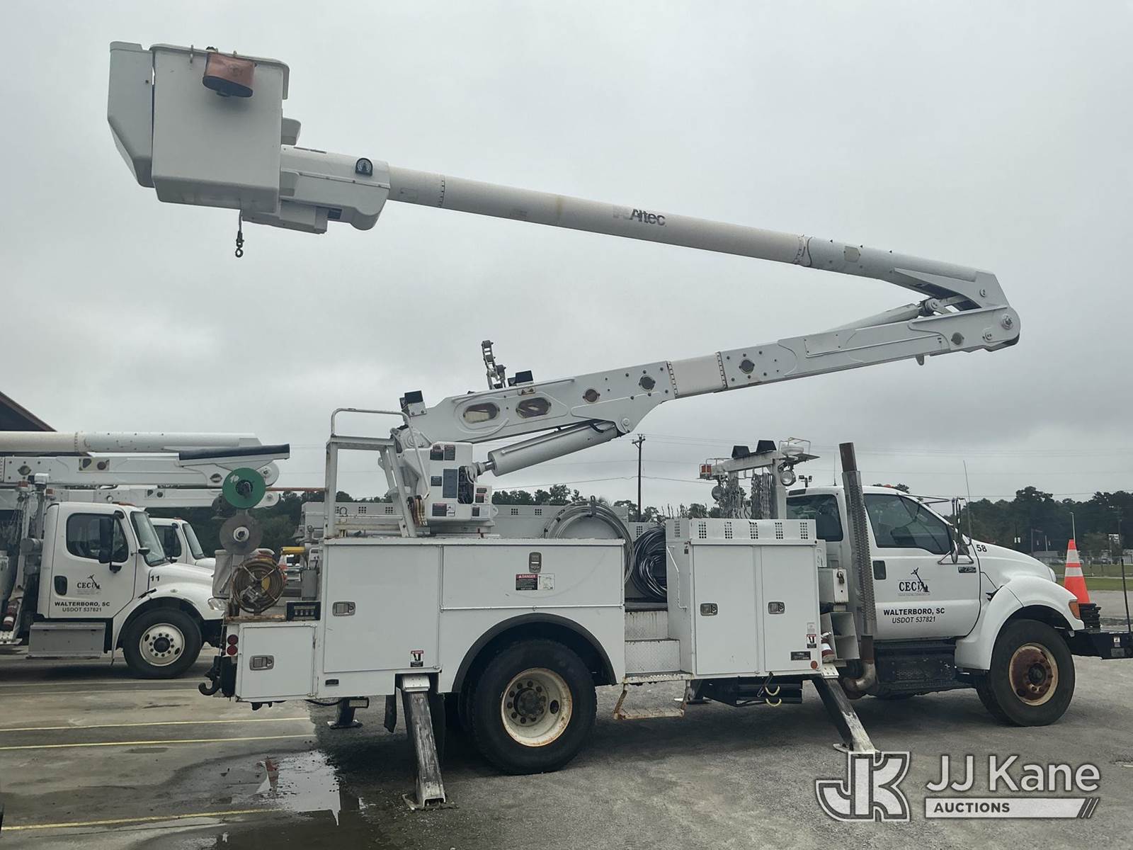 Altec AA55E, 60 ft, Material Handling Bucket Truck s/n 1012FH0236, with two-man bucket, 4 hydraulic outriggers, rear mounted on 2012 Ford F750 Utility Truck, Cummins ISB 6.7L diesel, Auto, A/C, with front winch, (89,822 miles) (Co-Op Unit) (Runs, Moves & Upper Operates) This is a Titled Item NOTE: This unit is being sold AS IS/WHERE IS via Timed Auction and is located in Walterboro, SC. For more information & removal arrangements please contact Pete Klimek @ pete.klimek@jjkane.com (Manuals provided in cab) (Buyer is responsible for removal. Assistance by consignor or JJ Kane Auctioneers is not assured.)