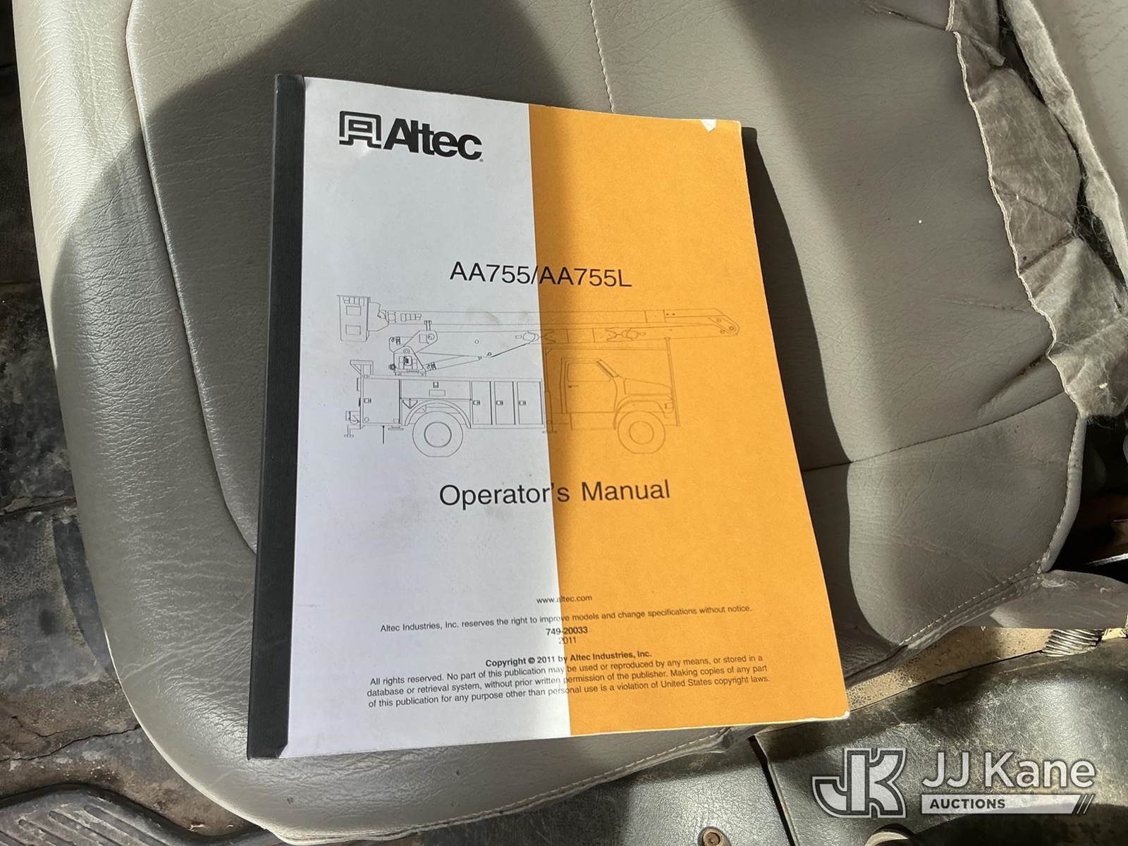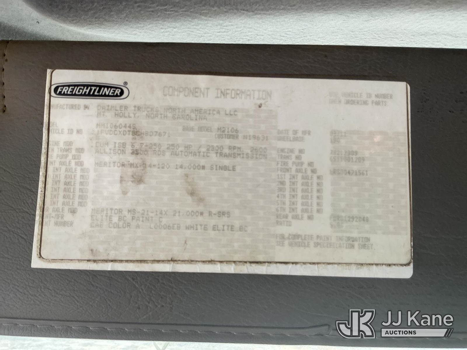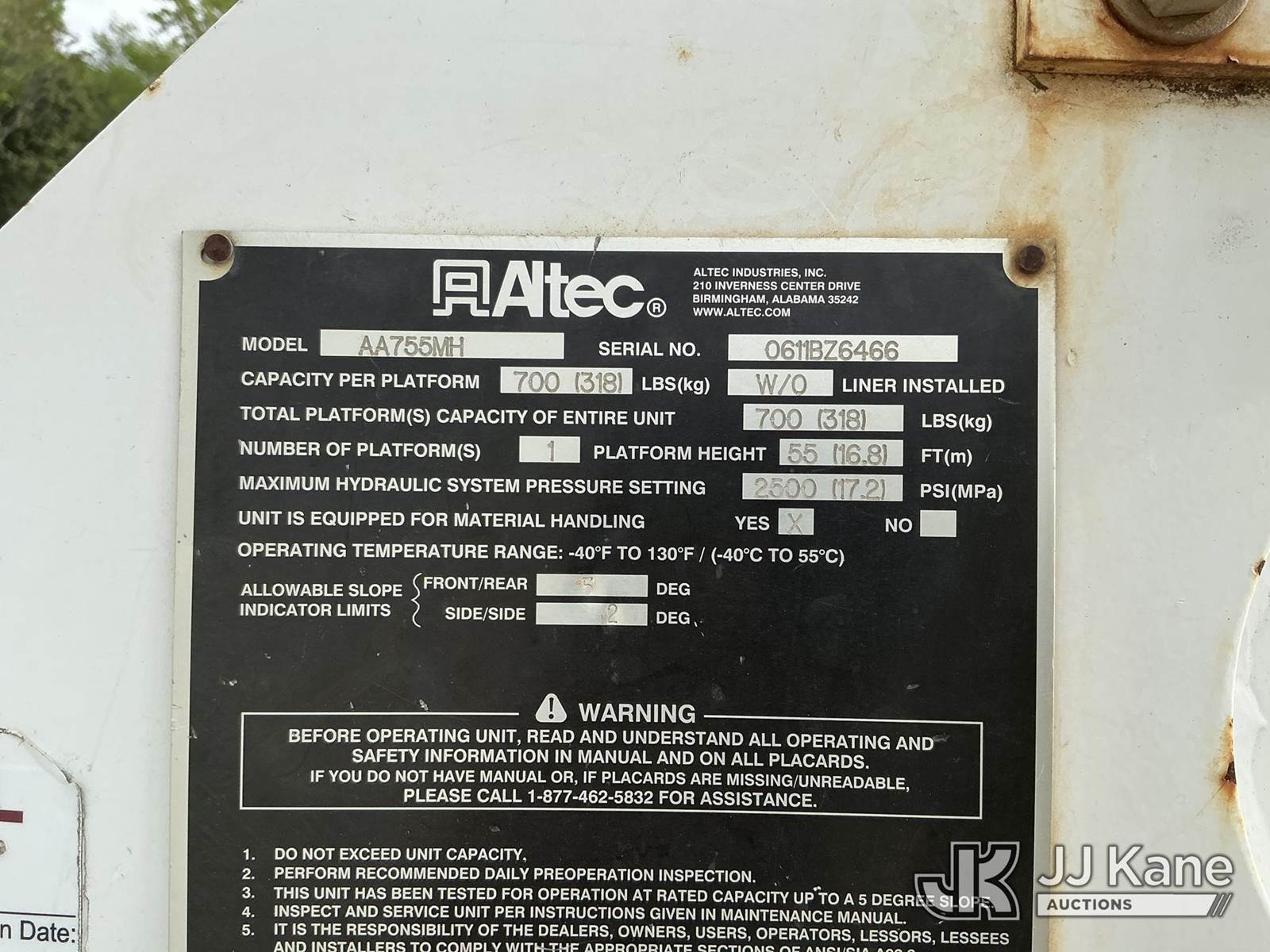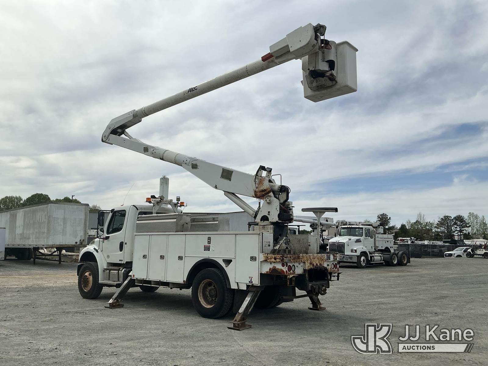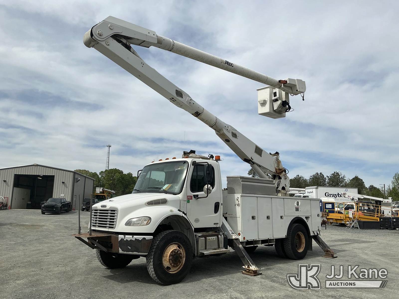 Altec AA755-MH, 60 ft, Material Handling Bucket Truck s/n 0611BZ6466, with two man bucket , rear mounted on 2012 Freightliner M2 106 Utility Truck, Cummins ISB-250 6.7L diesel, 4X4, Auto, A/C, (122,159 miles) (Runs, Moves & Upper Operates) (The manufacturer has notified JJ Kane that this equipment is subject to an open recall. CSN 571 Chassis Air Brake Hose Replacement The equipment should not be operated until this is addressed. Buyer is responsible for reviewing the recall notice and contacting the manufacturer to schedule the recommended corrective actions. Associated costs may be covered by the manufacturer in some cases.) This is a Titled Item NOTE: This unit is being sold AS IS/WHERE IS via Timed Auction and is located in China Grove, NC. Inspection & preview days for this unit are the 2 business days prior to the first day of items closing for this auction, item is located at 820 E NC Hwy 152 China Grove, NC 28023 and hours of operations are 8a-4p. For pre-sale questions, please contact Office Staff @ (704) 674-1113. (Manuals provided in cab) (Buyer is responsible for removal. Assistance by consignor or JJ Kane Auctions is not assured.)