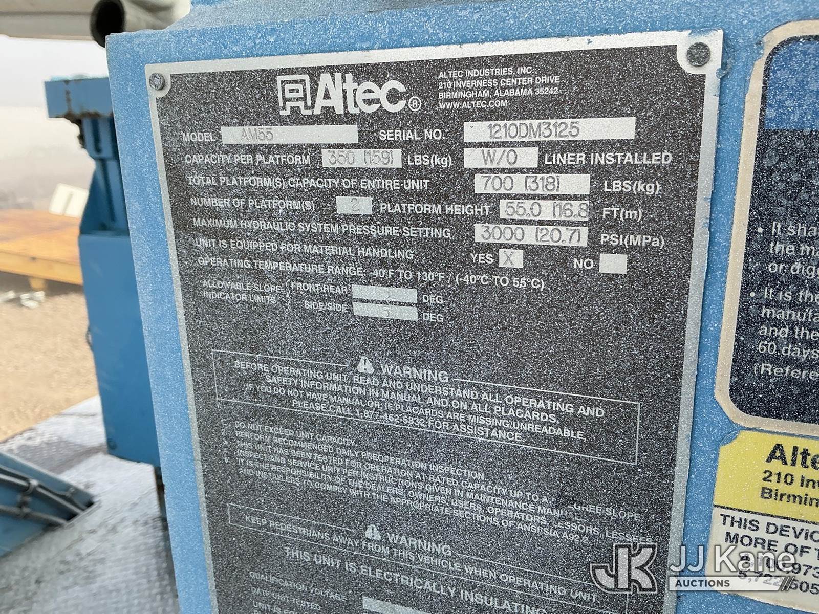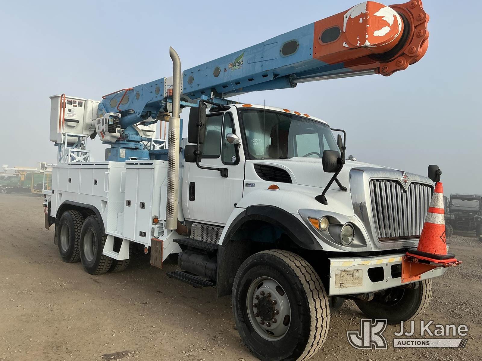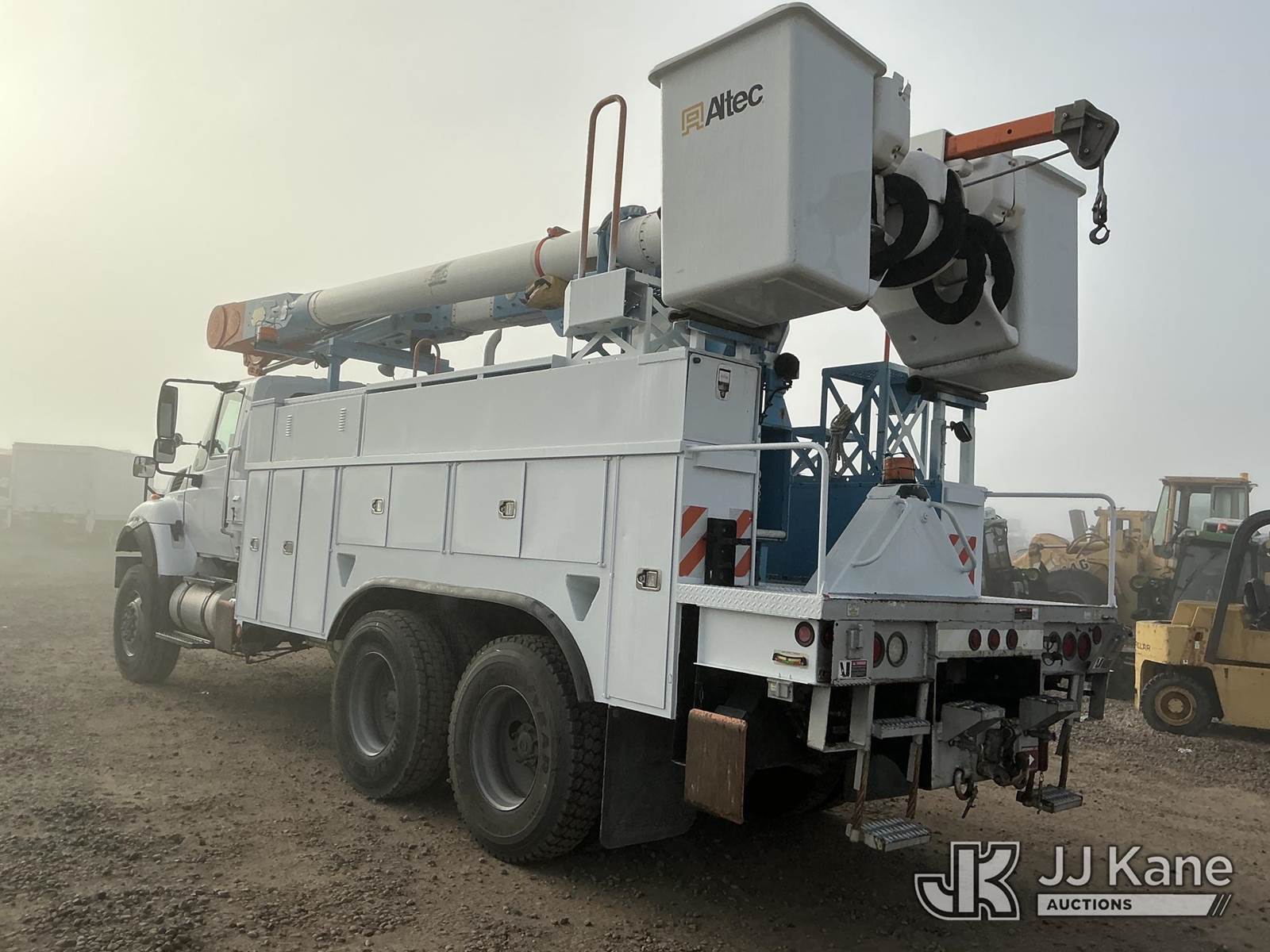 Altec AM55, 60 ft, Over-Center Material Handling Bucket Truck s/n 1210DM3125(YEAR 2010), with double-bucket & 4 hyd outriggers, rear mounted on 2012 International 7400 T/A Utility Truck, 7.6L L6 DIESEL Auto, 6X6, A/C, (41,861 miles) (Runs & Moves, PTO Engages, Upper Does Not Operate, Very Low On Diesel (Boom Year 2010)) (Reads 3,161 hours) Subject to CARB Regs,CARB non Compliant,Cannot Operate on CA Roads/Highways until Compliant This is a Titled Item NOTE: This unit is being sold AS IS/WHERE IS via Timed Auction and is located in Dixon, CA. Inspection & preview days for this unit are the 2 business days prior to the first day of items closing for this auction, item is located at 8668 Sparling Ln Dixon, CA 95620 and hours of operations are 8a-4p. For pre-sale questions, please contact JJ Kane Staff at (707) 678-8060 (dixon@jjkane.com). Dealer License Number 45696. (Manuals provided in cab) (Buyer is responsible for removal. Assistance by consignor or JJ Kane Auctions is not assured.)