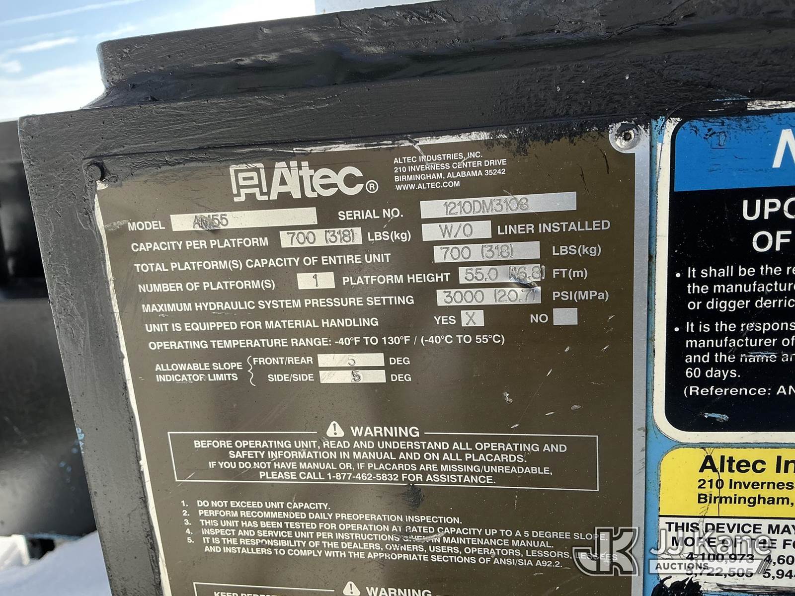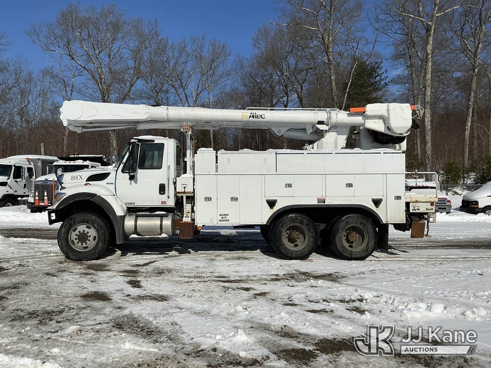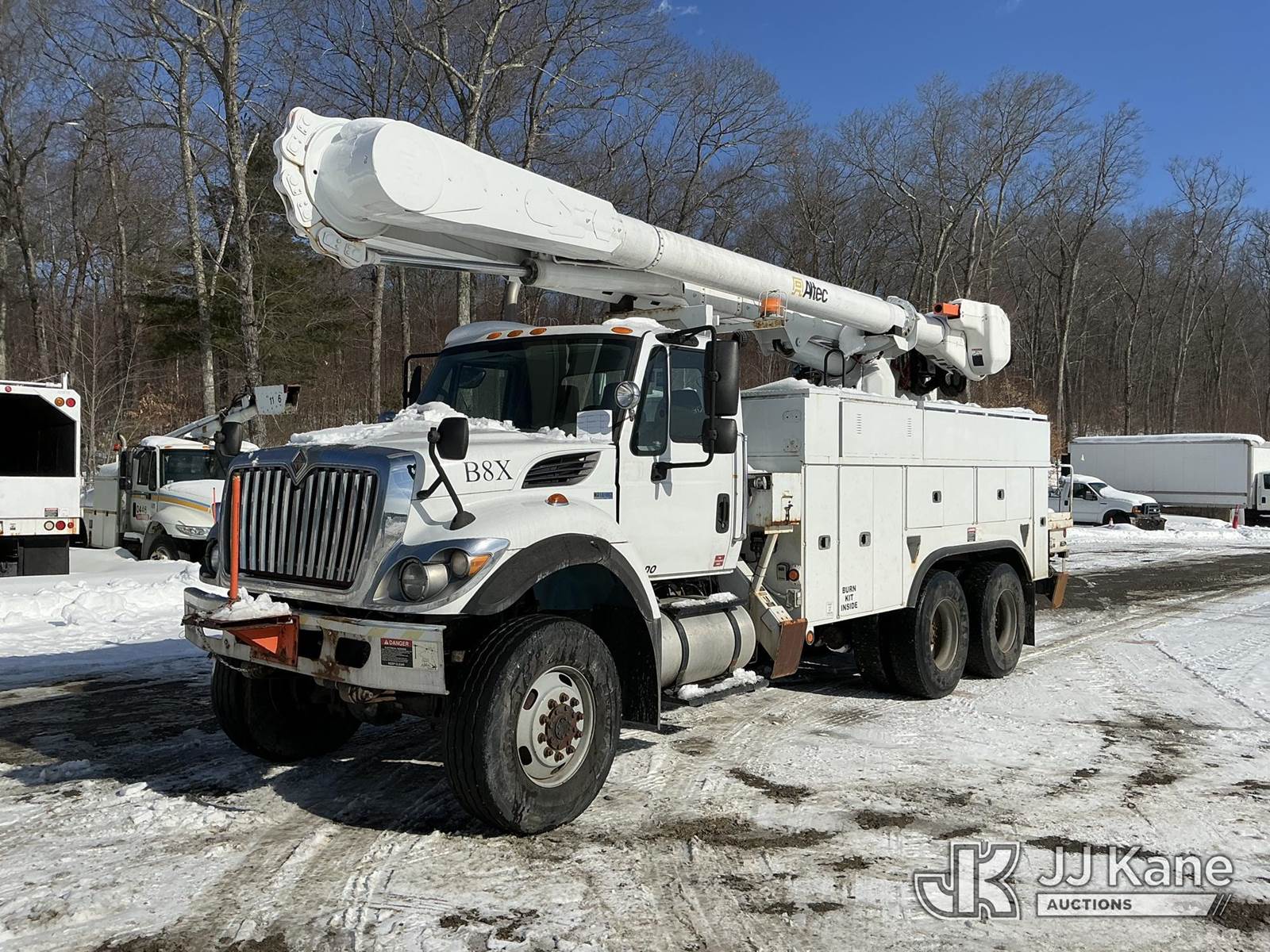 Altec AM55-MH, 60 ft, Over-Center Material Handling Bucket Truck s/n 1210DM3108 (2010), with two man bucket & 4 hyd outriggers, rear mounted on 2012 International 7400 Utility Truck, MaxxForce 7.6L 6X6, diesel, Auto, A/C, (69,674 miles) (Runs & Moves) (PTO Not Engaging, No Response From Outrigger Controls, Upper Condition Unknown) (Reads 4,869 hours) This is a Titled Item NOTE: This unit is being sold AS IS/WHERE IS via Timed Auction and is located in Shrewsbury, MA. Inspection & preview days for this unit are the 2 business days prior to the first day of items closing for this auction, item is located at 11 Fortune Blvd Shrewsbury, MA 01545 and hours of operations are 8a-4p. For pre-sale questions, please contact Rob Gifford @ (508) 864-4126. (Manuals provided in cab) (Buyer is responsible for removal. Assistance by consignor or JJ Kane Auctions is not assured.)