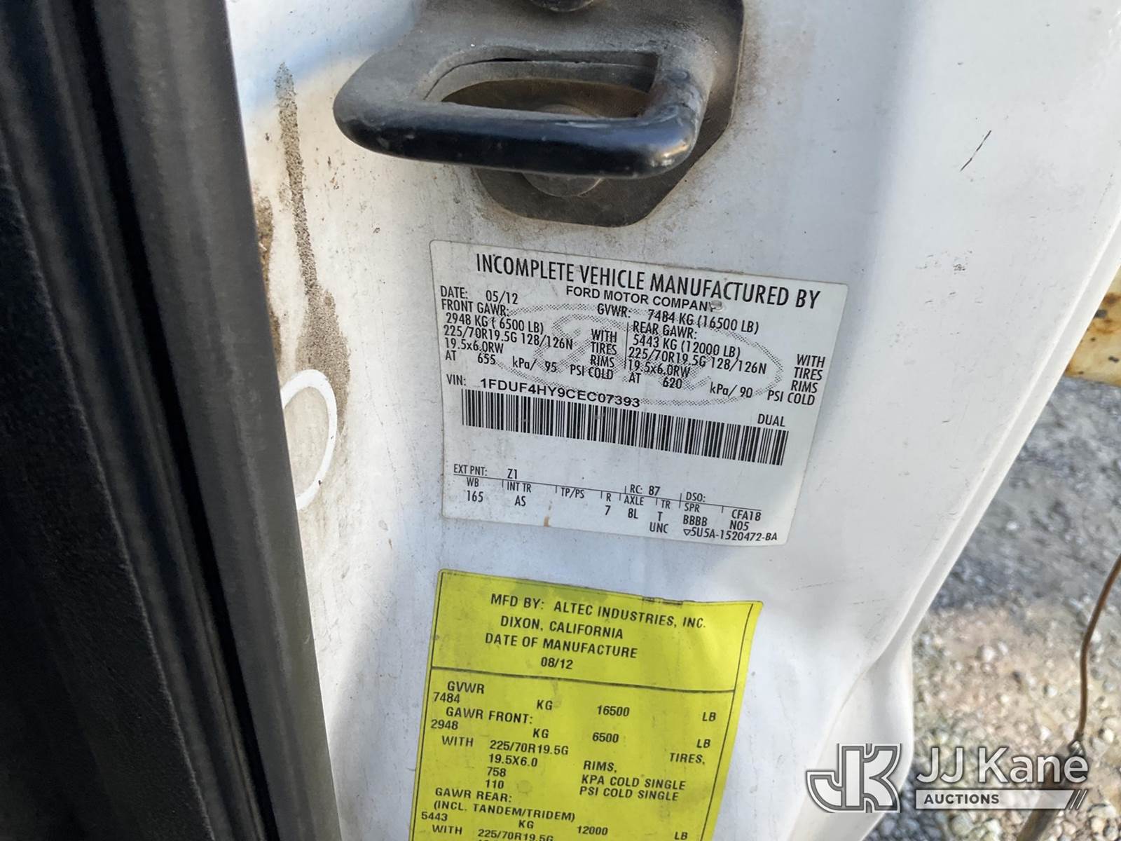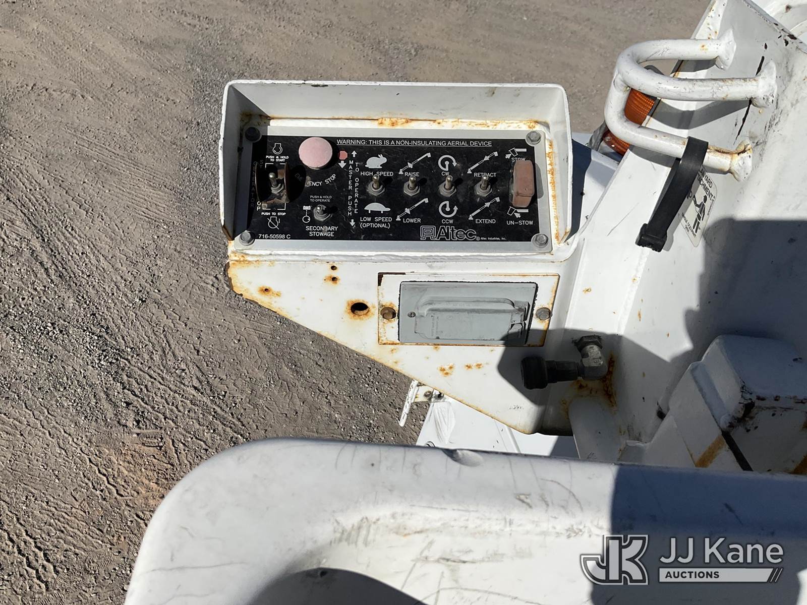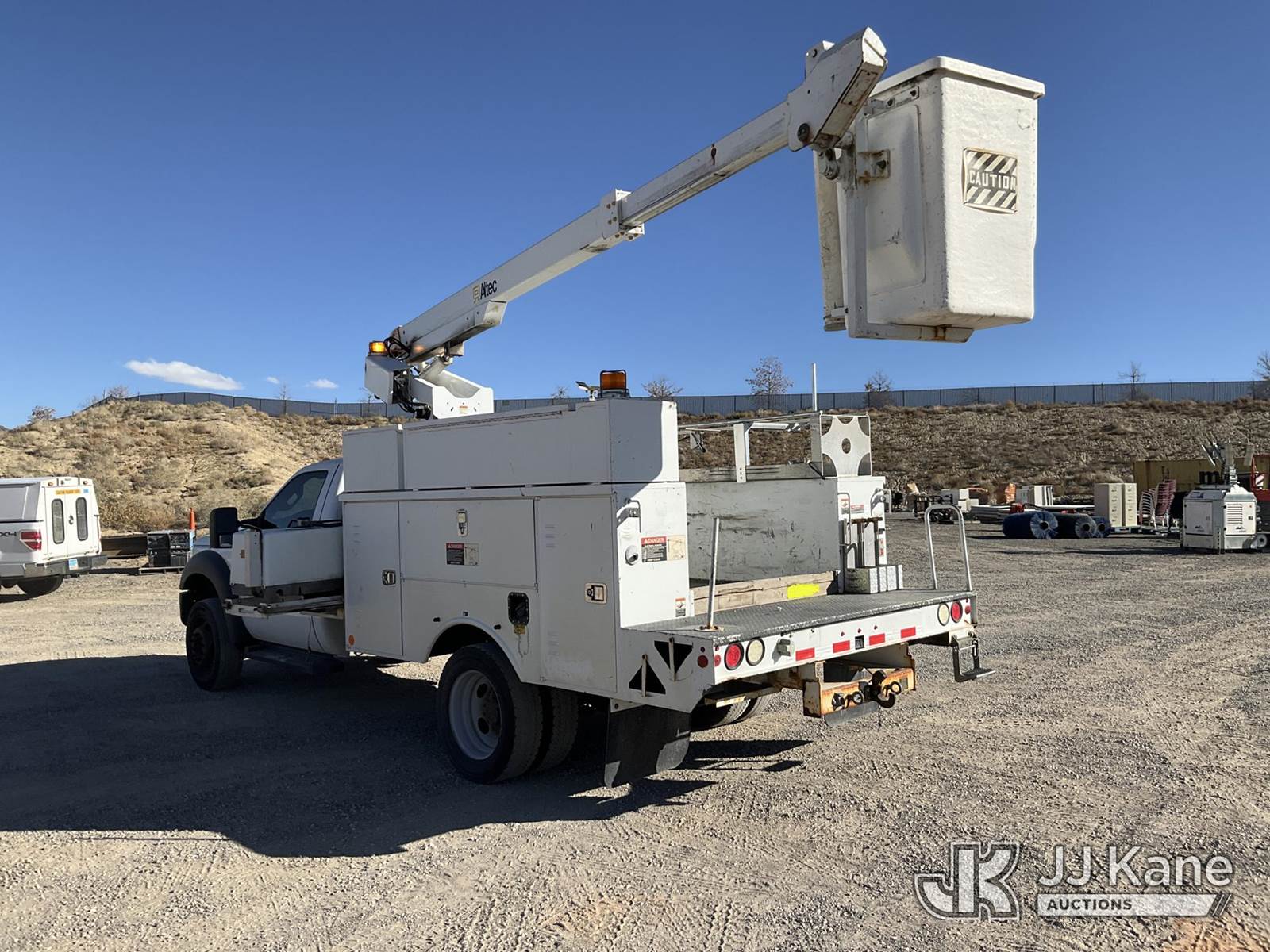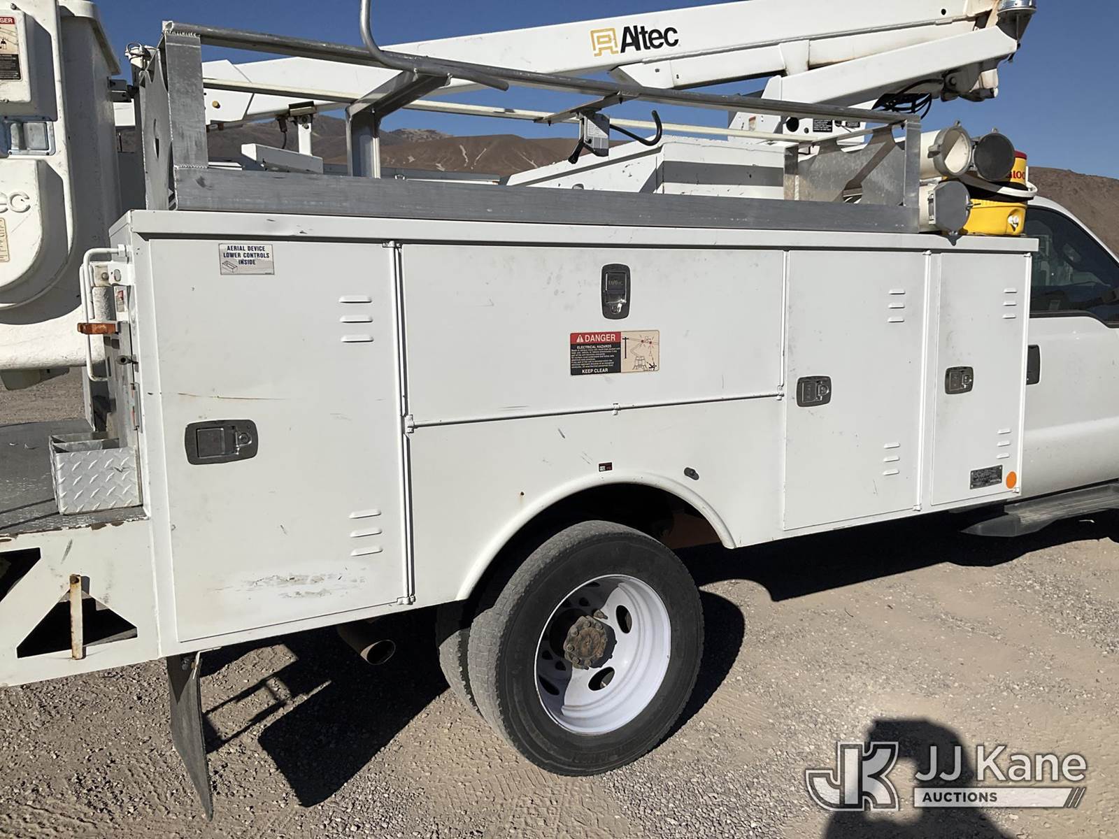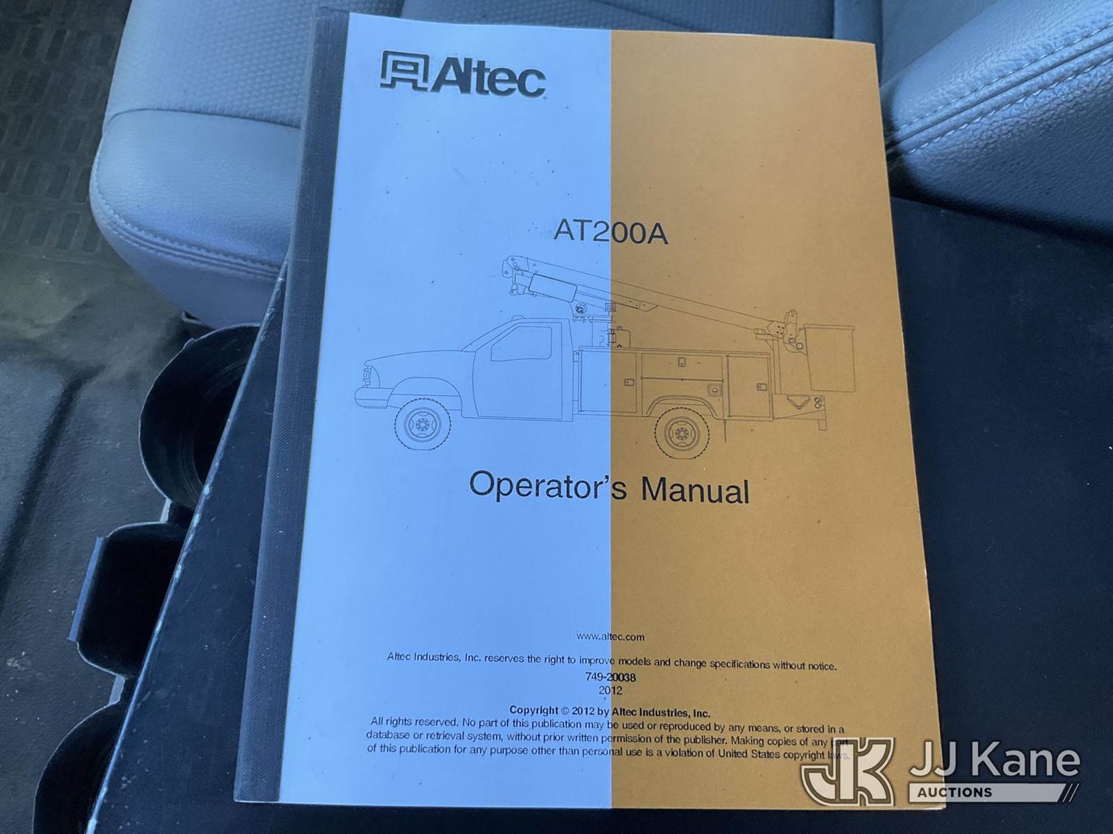 Altec AT200-A, 30 ft, Telescopic Non-Insulated Bucket Truck s/n 0712BV17735, with single man bucket, mounted behind cab on 2012 Ford F-450 SD Regular Cab DRW Service Truck, 6.8L V10 SOHC 30V Gas Auto, 4wd, A/C, with cummins onan generator, (146,368 miles) (Runs, Moves & Upper Operates) (Generator Jump to Start) This is a Titled Item NOTE: This unit is being sold AS IS/WHERE IS via Timed Auction and is located in Sparks, NV. Inspection & preview days for this unit are the 2 business days prior to the first day of items closing for this auction, item is located at 601 Britain Dr Sparks, NV 89437 and hours of operations are 8a-4p. Titles executed exactly as bidder registered. Ensure your name and/or business name and address in JJ Kane and/or ProxiBid is correct before bidding. For pre-sale questions, please contact Office Staff @ (801) 519-0123 and provide sale date and lot number. Sparks Dealer License Number DLR000052908 / OHV000052909. (Manuals provided in cab) (Buyer is responsible for removal. Assistance by consignor or JJ Kane Auctioneers is not assured.)