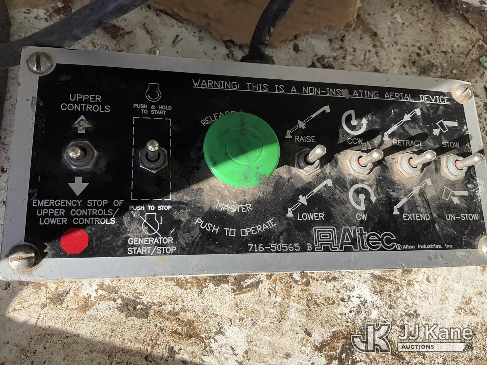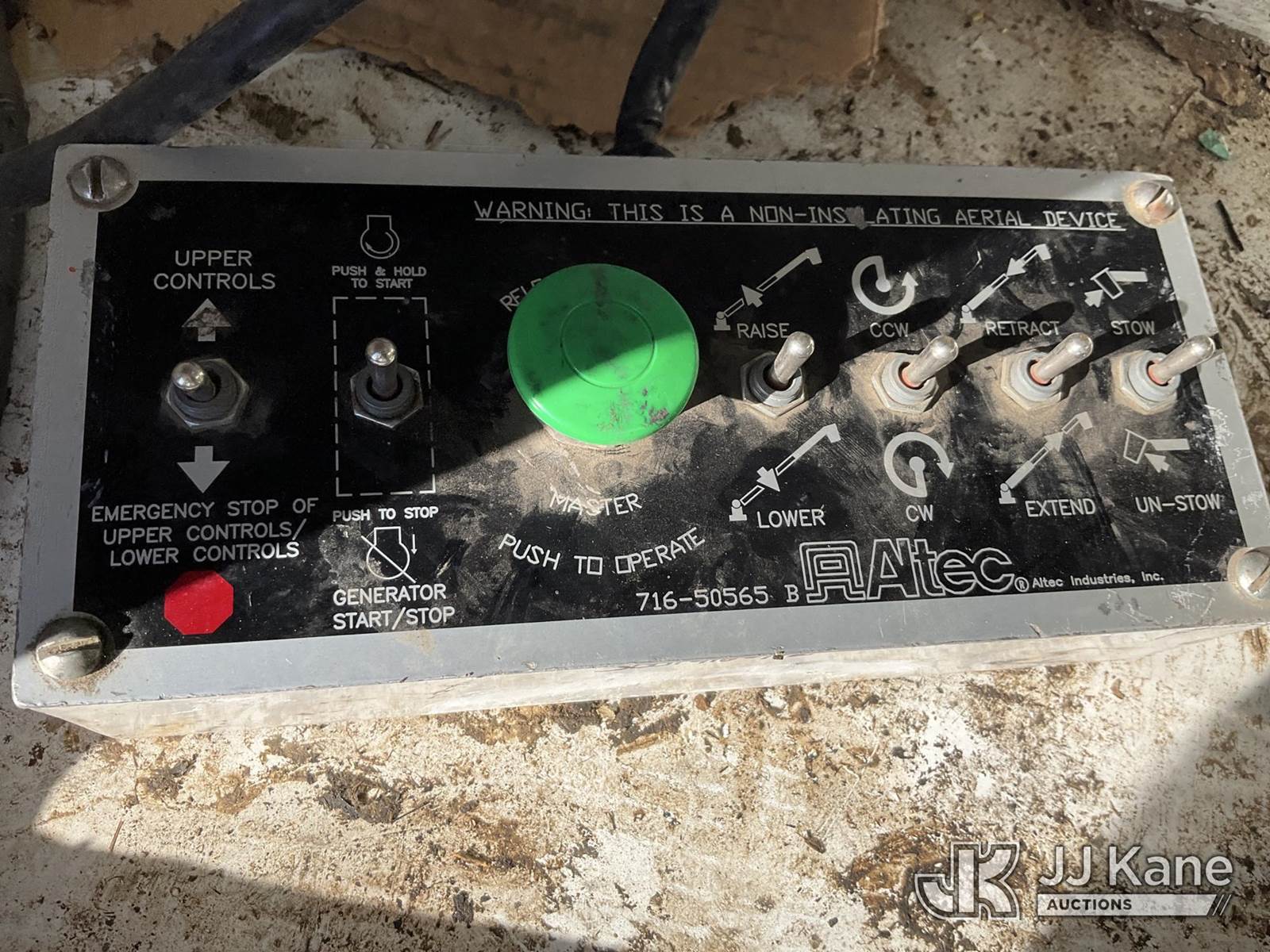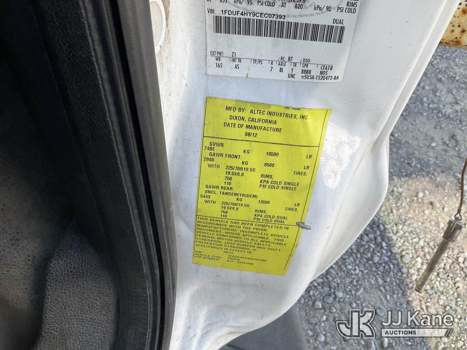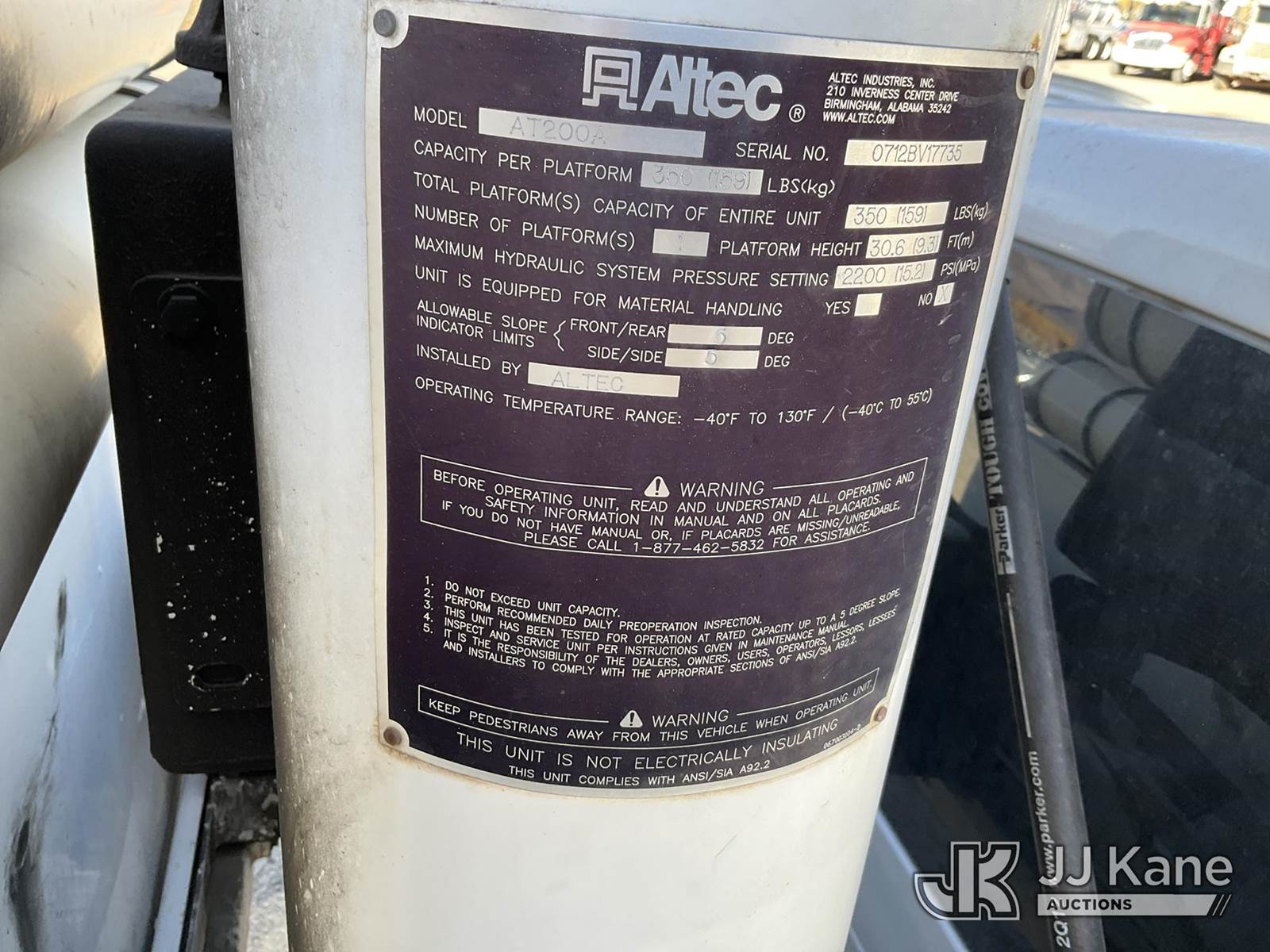 Altec AT200-A, 30 ft, Telescopic Non-Insulated Bucket Truck s/n 0712BV17735, with single man bucket, mounted behind cab on 2012 Ford F-450 SD Regular Cab DRW Service Truck, 6.8L V10 SOHC 30V Gas Auto, 4wd, A/C, with cummins onan generator, (146,368 miles) (Runs, Moves & Upper Operates) (Generator Jump to Start) This is a Titled Item NOTE: This unit is being sold AS IS/WHERE IS via Timed Auction and is located in Sparks, NV. Inspection & preview days for this unit are the 2 business days prior to the first day of items closing for this auction, item is located at 601 Britain Dr Sparks, NV 89437 and hours of operations are 8a-4p. Titles executed exactly as bidder registered. Ensure your name and/or business name and address in JJ Kane and/or ProxiBid is correct before bidding. For pre-sale questions, please contact Office Staff @ (801) 519-0123 and provide sale date and lot number. Sparks Dealer License Number DLR000052908 / OHV000052909. (Manuals provided in cab) (Buyer is responsible for removal. Assistance by consignor or JJ Kane Auctioneers is not assured.)