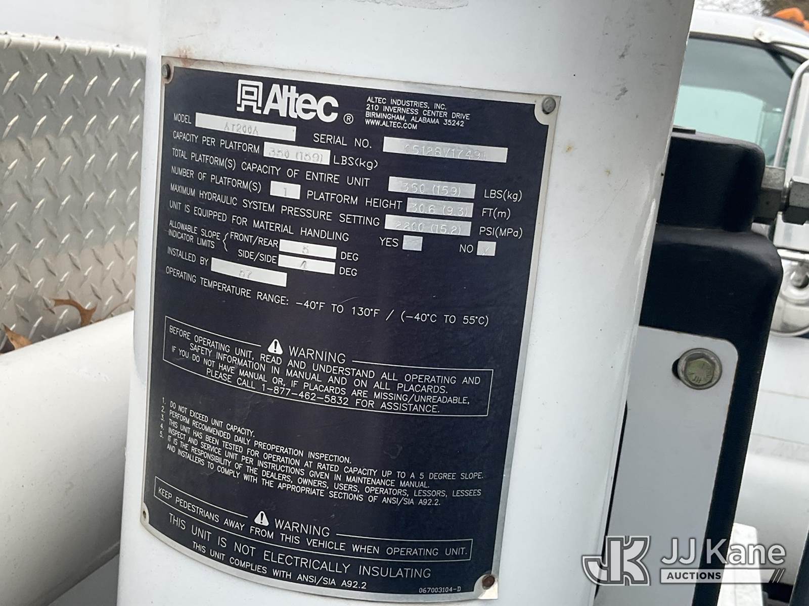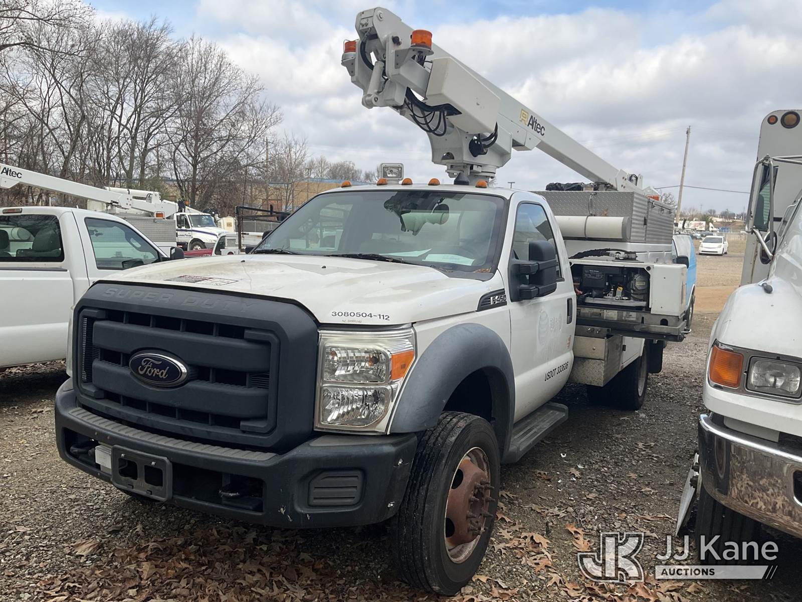 Altec AT200-A, 30 ft, Telescopic Non-Insulated Bucket Truck s/n 0512BV17491, Onan 4500 with single man bucket, mounted behind cab on 2012 Ford F-450 SD Service Truck, 10-cyl gas, RWD, Auto, A/C, (115,711 miles) (Runs & Moves) (Jump to Start, Brakes are soft, Generator clicks with Jump Box but does Not Start, Upper Condition Unknown) This is a Titled Item NOTE: This unit is being sold AS IS/WHERE IS via Timed Auction and is located in Memphis, TN. Inspection & preview days for this unit are by appointment only; please contact us at contact@jjkane.com or 84-Go-JJKane for more details. (Manuals provided in cab) (Buyer is responsible for removal. Assistance by consignor or JJ Kane Auctions is not assured.)