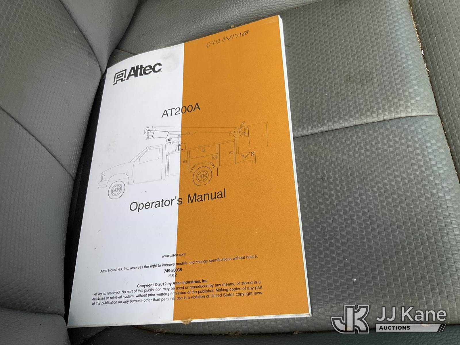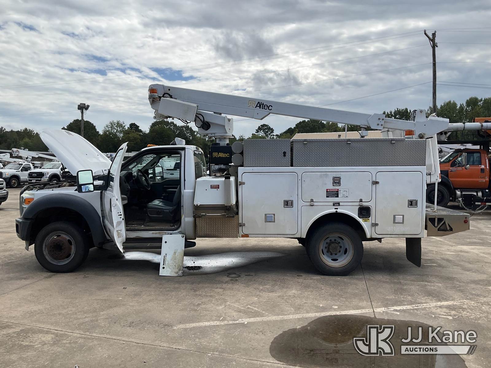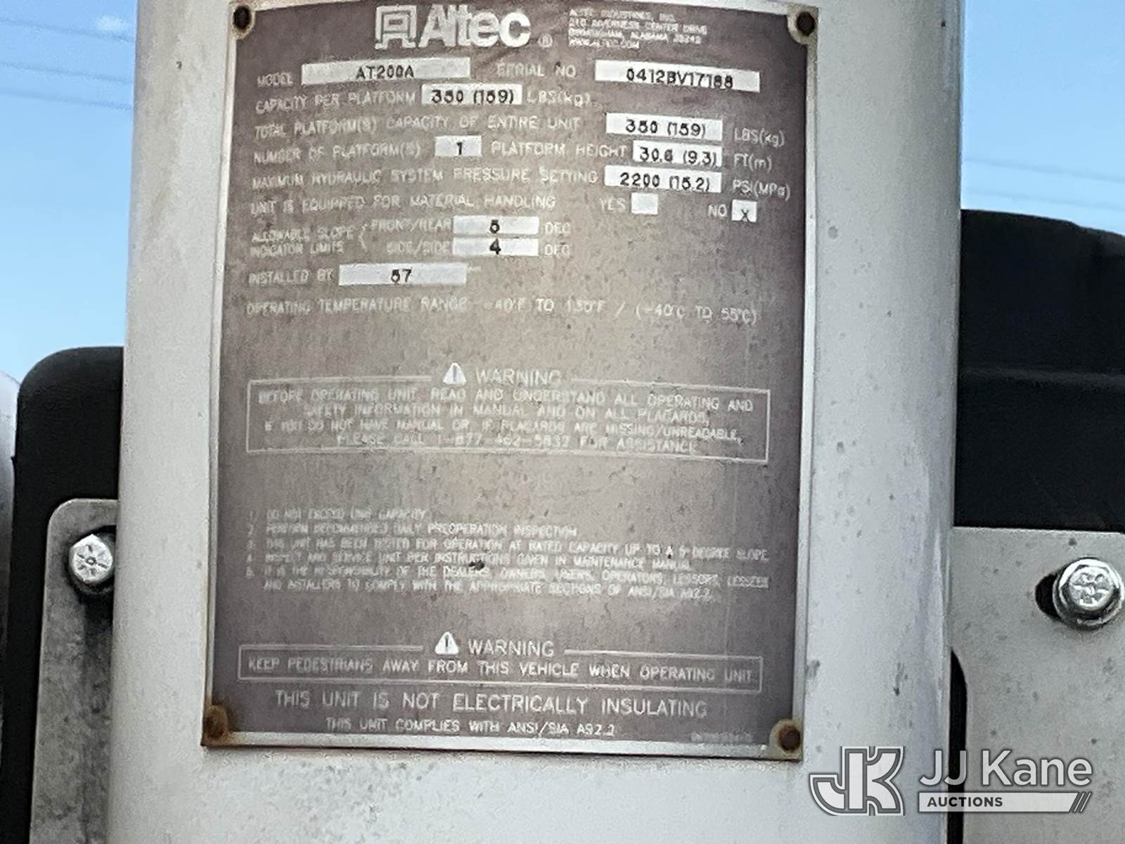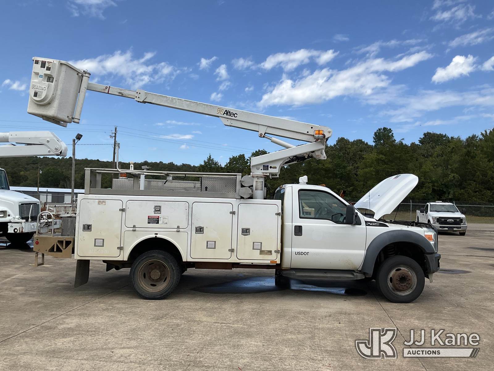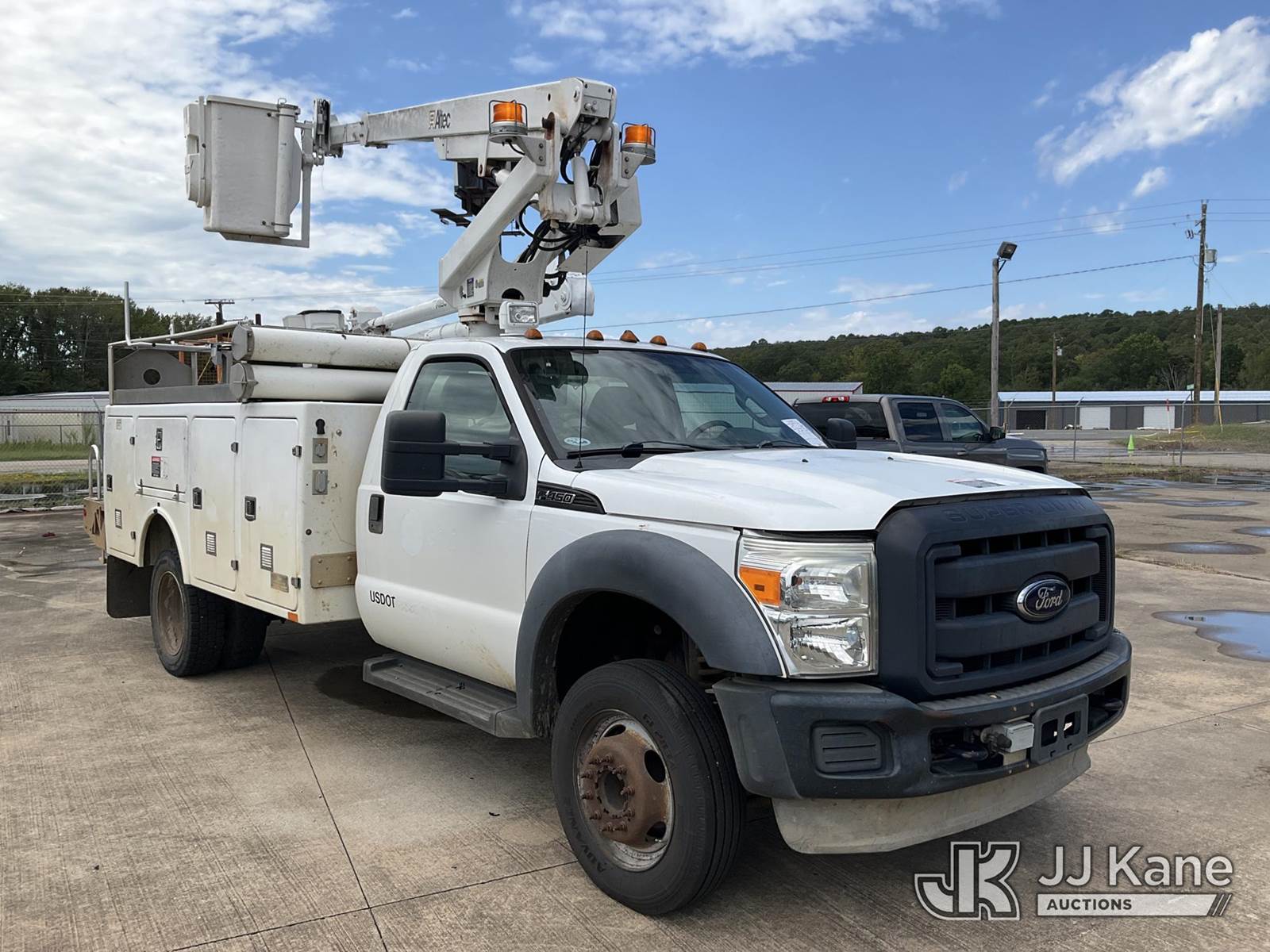 Altec AT200-A, 35 ft, Telescopic Bucket Truck s/n 0412BV17188, with single-man bucket, mounted behind cab on 2012 Ford F450 Service Truck, 10-cyl gas, Auto, A/C, (179,847 miles) (Jump to Start, Runs, Moves & Operates, Hood Stays are Weak) This is a Titled Item NOTE: This unit is being sold AS IS/WHERE IS via Timed Auction and is located in Conway, AR. For more information & removal arrangements please contact Jeremy Walters @ jeremy.walters@jjkane.com (Manuals provided in cab) (Buyer is responsible for removal. Assistance by consignor or JJ Kane Auctioneers is not assured.)