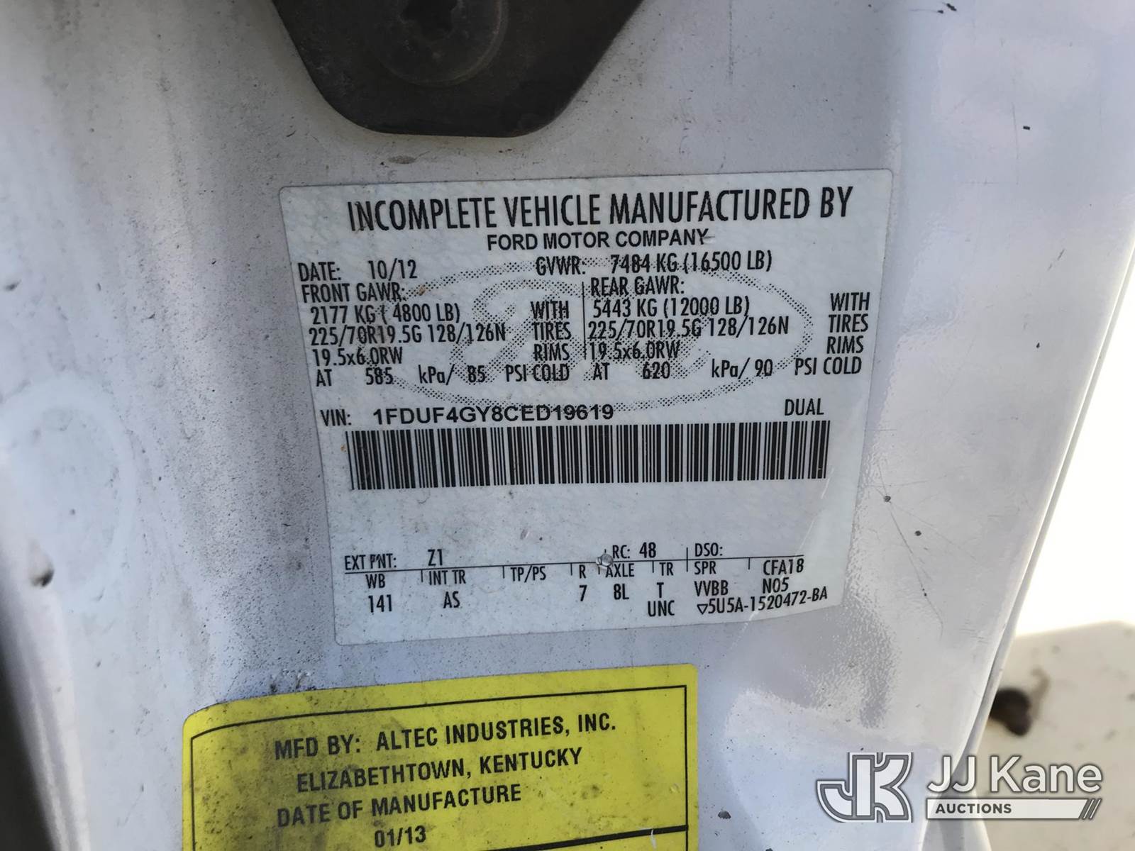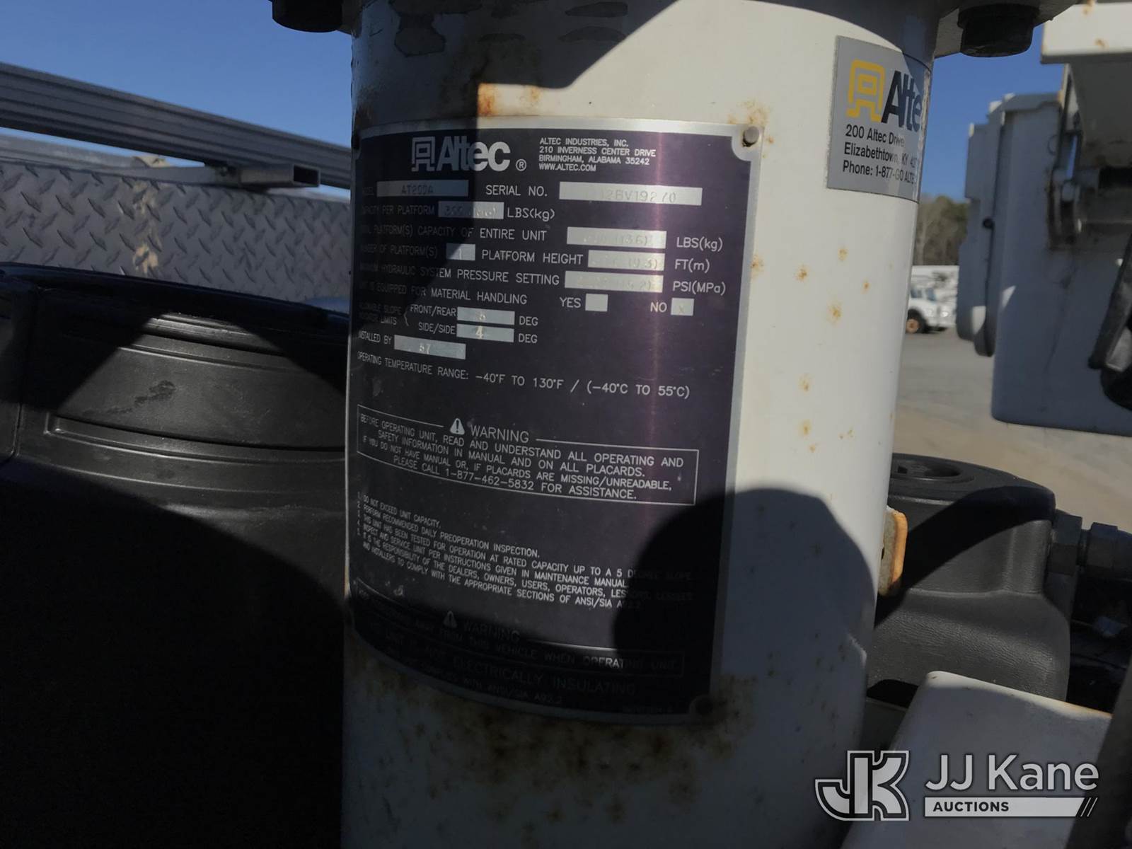 Altec AT200-A, 35 ft, Telescopic Non-Insulated Bucket Truck s/n 1212BV9270, with single-man bucket, mounted behind cab on 2012 Ford F450 Service Truck, 10-cyl gas, Auto, RWD, A/C, (190,032 miles) (Runs, Moves & Upper Operates) (Jump To Start) This is a Titled Item NOTE: This unit is being sold AS IS/WHERE IS via Timed Auction and is located in Mount Airy, NC. Inspection & preview days for this unit are by appointment only; please contact us at contact@jjkane.com or 84-Go-JJKane for more details. (Missing manuals, See Auction Company for Manufacturers Information to obtain manuals) (Buyer is responsible for removal. Assistance by consignor or JJ Kane Auctions is not assured.)