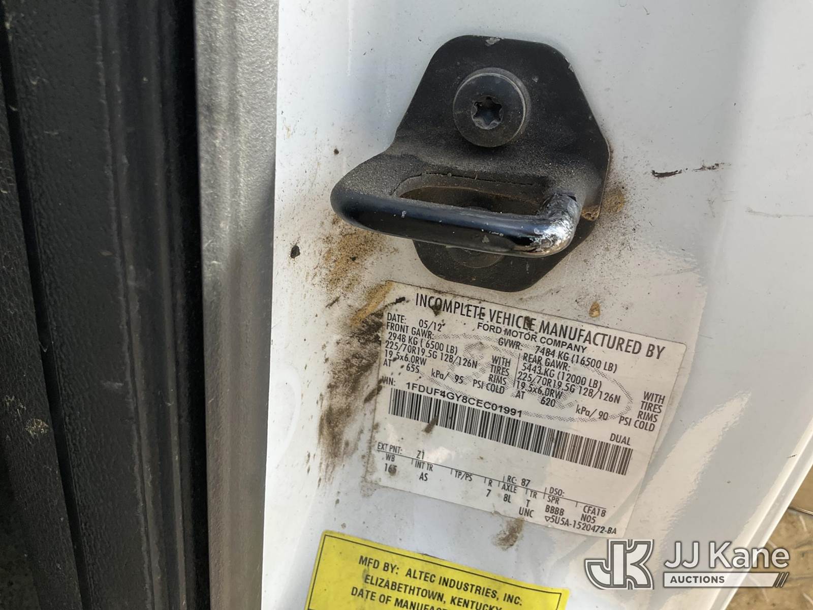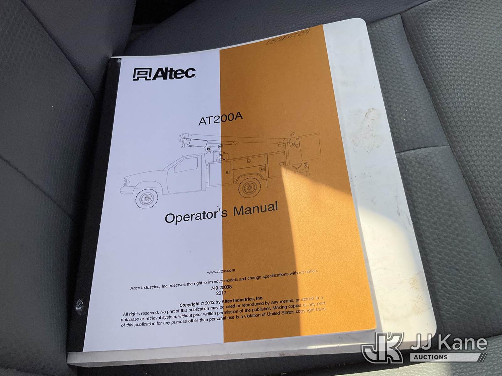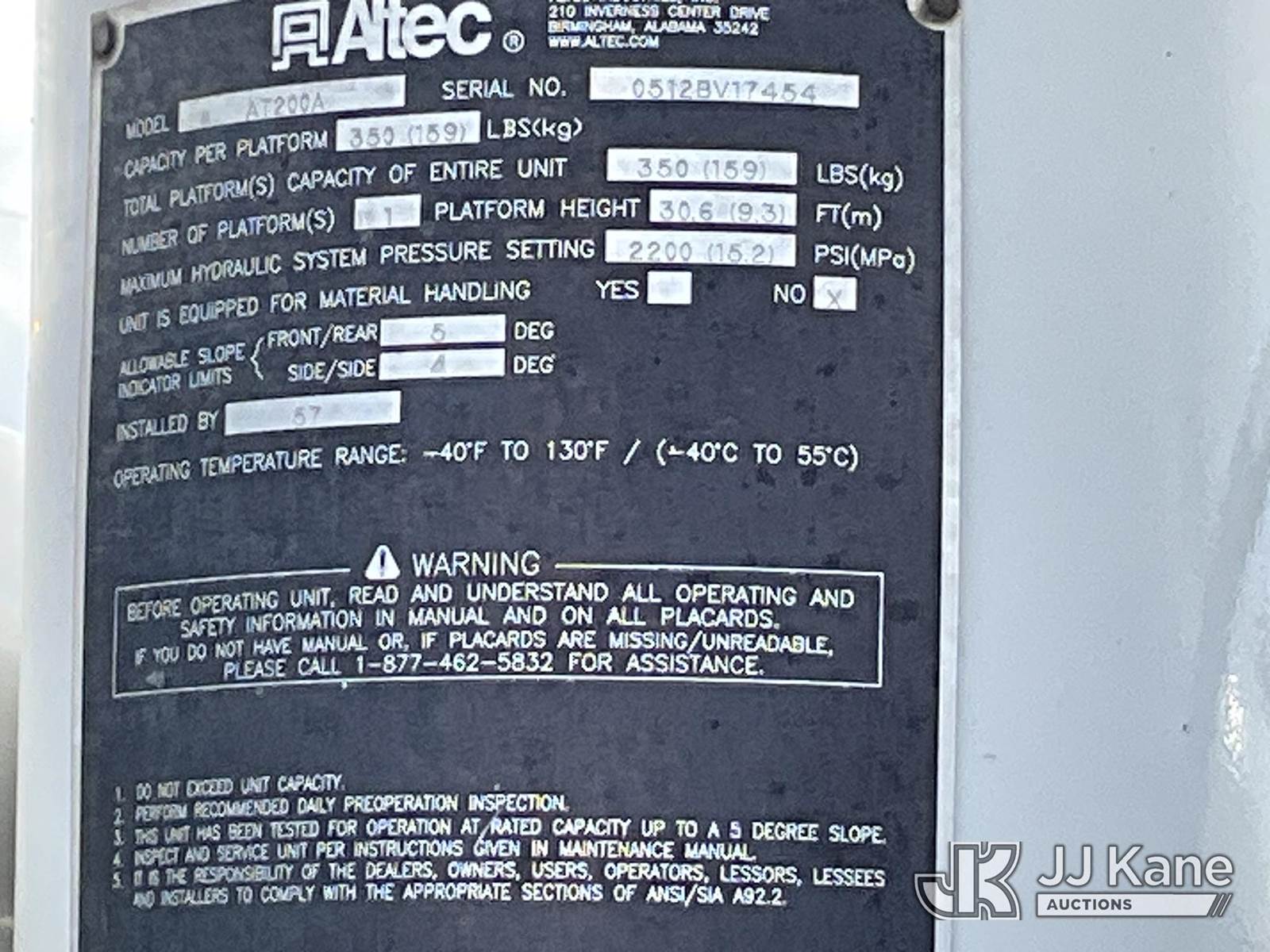 Altec AT200-A, 35 ft, Telescopic Non-Insulated Bucket Truck s/n 0512BV17454, Onan 4500 mounted behind cab on 2012 Ford F450 Service Truck, 10-cyl gas, Auto, A/C, (146,522 miles) (Runs, Moves & Operates ) This is a Titled Item NOTE: This unit is being sold AS IS/WHERE IS via Timed Auction and is located in Conway, AR. Inspection & preview days for this unit are by appointment only; please contact us at contact@jjkane.com or 84-Go-JJKane for more details. (Manuals provided in cab) (Buyer is responsible for removal. Assistance by consignor or JJ Kane Auctions is not assured.)