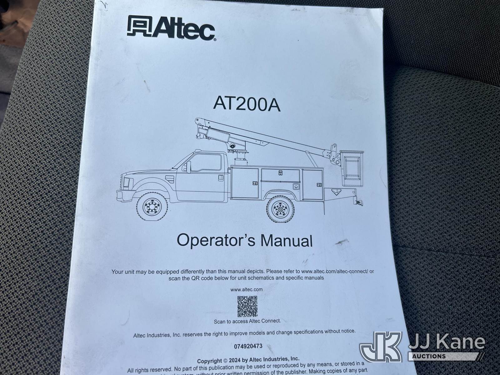 Altec AT200-A, 35 ft, Telescopic Non-Insulated Bucket Truck s/n 0512BV17576, with Single-Man Bucket, mounted behind cab on 2012 FORD F450 Service Truck, 10-cyl gas, 4x2, Auto, A/C, (108,060 miles) (Not Running, Conditions Unknown, Upper Condition Unknown) This is a Titled Item NOTE: This unit is being sold AS IS/WHERE IS via Timed Auction and is located in Waxahachie, TX. Inspection & preview days for this unit are the 2 business days prior to the first day of items closing for this auction, item is located at 999 Solon Rd Waxahachie, TX 75165 and hours of operations are 8a-4p. For pre-sale questions, please contact Alex Bayless @ (469) 550-4938. (Missing manuals, See Auction Company for Manufacturers Information to obtain manuals) (Buyer is responsible for removal. Assistance by consignor or JJ Kane Auctions is not assured.)