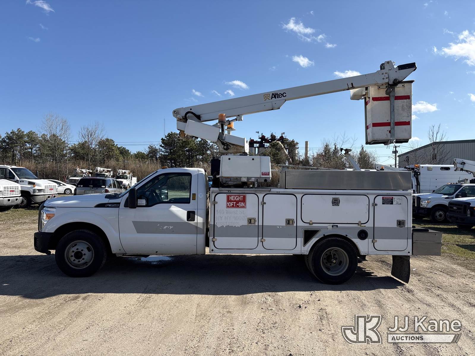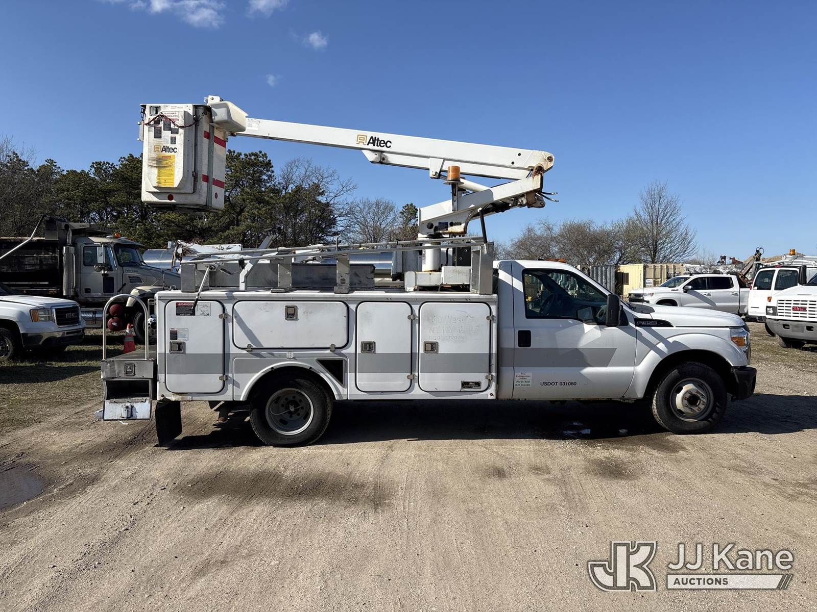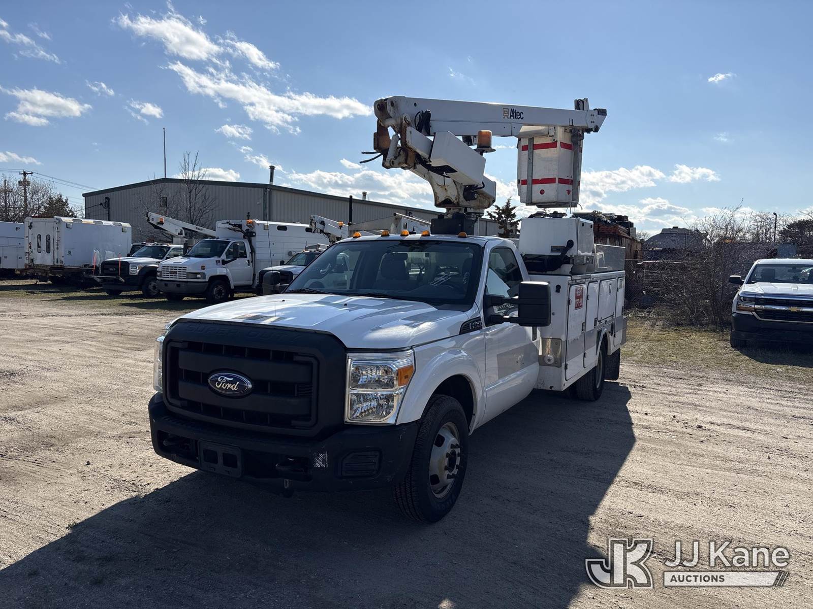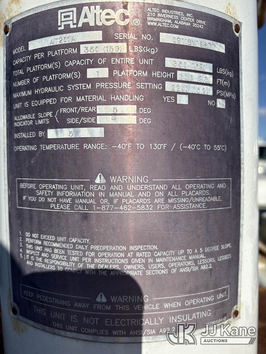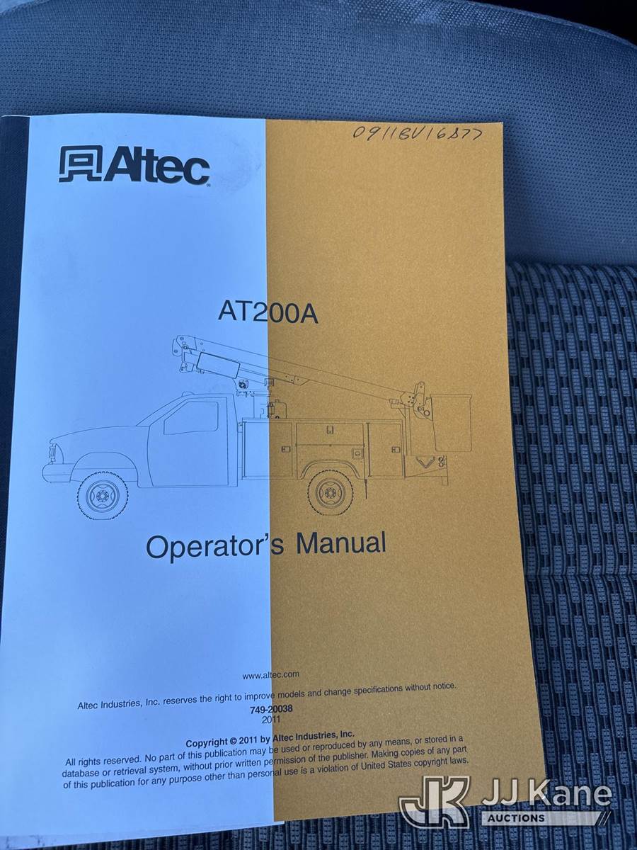Altec AT200-A, 35 ft, Telescopic Non-Insulated Bucket Truck s/n 0911BV16877, with Single-Man Bucket, mounted behind cab on 2012 Ford F350 2WD Service Truck, 8-cyl gas, Auto, A/C, with Onan generator, (73,879 miles) (Runs, Moves & Upper Operates, Boom Does Not Telescope Out Or In, Hydraulic Lines Capped Off- Requires ANSI Inspection for Repair/Replacement Requirements) (Removal is by Appointment Only, Buyer MUST make a appointment prior to picking up, Buyer/Transporter Must have PAID IN FULL RELEASE. No onsite assistance available, Please Come prepared.) This is a Titled Item NOTE: This unit is being sold AS IS/WHERE IS via Timed Auction and is located in Bellport, NY. Inspection & preview days for this unit are by appointment only; please contact us at contact@jjkane.com or 84-Go-JJKane for more details. (Manuals provided in cab) (Buyer is responsible for removal. Assistance by consignor or JJ Kane Auctions is not assured.)