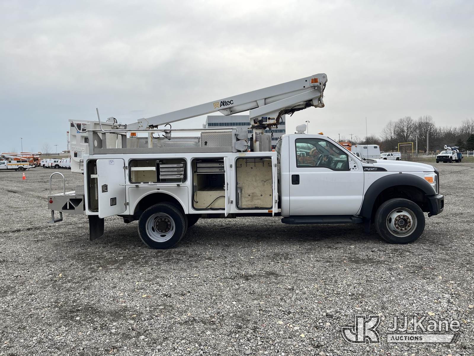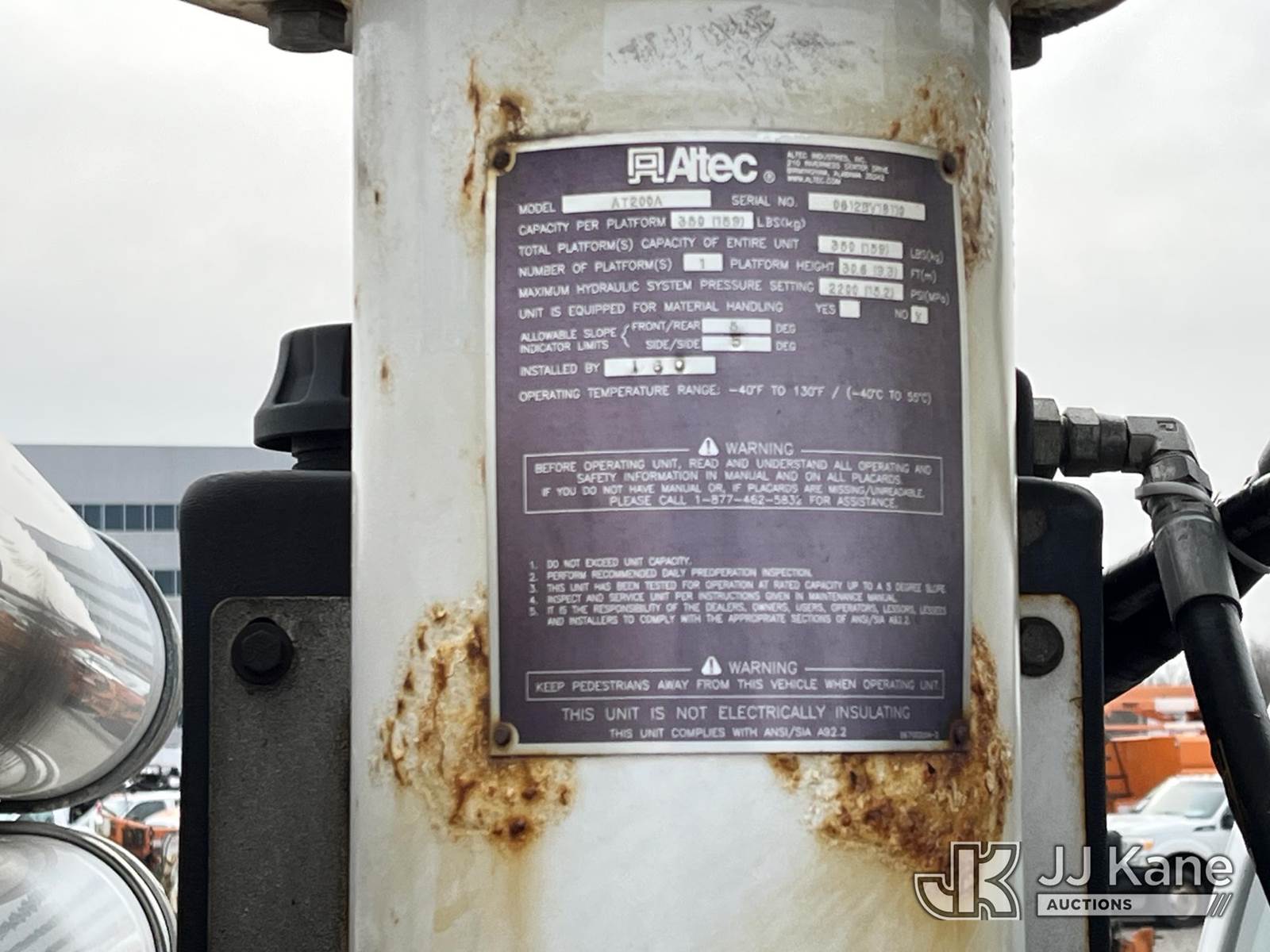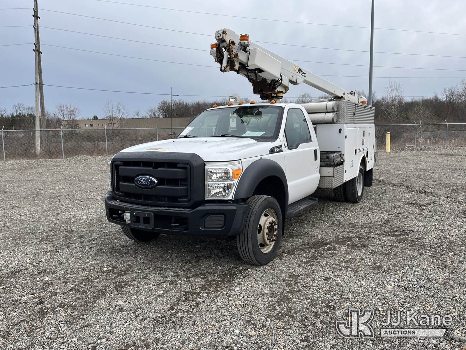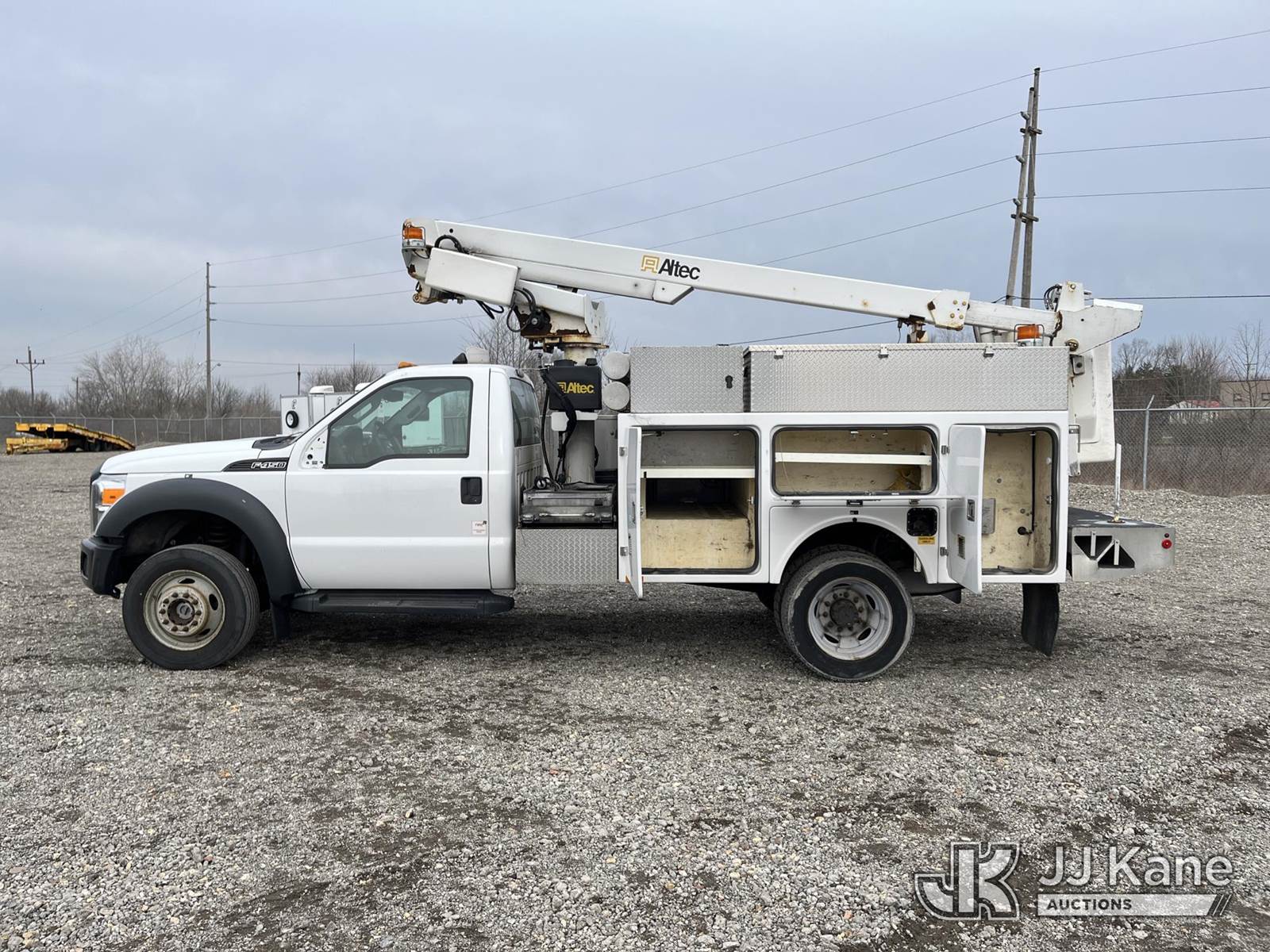 Altec AT200-A, 35 ft, Telescopic Non-Insulated Bucket Truck s/n 0612BV18110, with single-man bucket, mounted behind cab on 2012 Ford F450 4x4 Service Truck, 10-cyl gas, Auto, A/C, (117,541 miles) (Runs & Moves) (Generator Missing, Upper Operation Unknown, Gas Cap & Line Missing, Driver & Passenger Side Mirrors Missing, Body Damage.) This is a Titled Item NOTE: This unit is being sold AS IS/WHERE IS via Timed Auction and is located in Louisville, OH. Inspection & preview days for this unit are the 2 business days prior to the first day of items closing for this auction, item is located at 3648 Beck Ave Louisville, OH 44641 and hours of operations are 8a-4p. For pre-sale questions, please contact Aaron Coleman @ (330) 495-4041 or aaron.coleman@jjkane.com. (Missing manuals, See Auction Company for Manufacturers Information to obtain manuals) (Buyer is responsible for removal. Assistance by consignor or JJ Kane Auctions is not assured.)