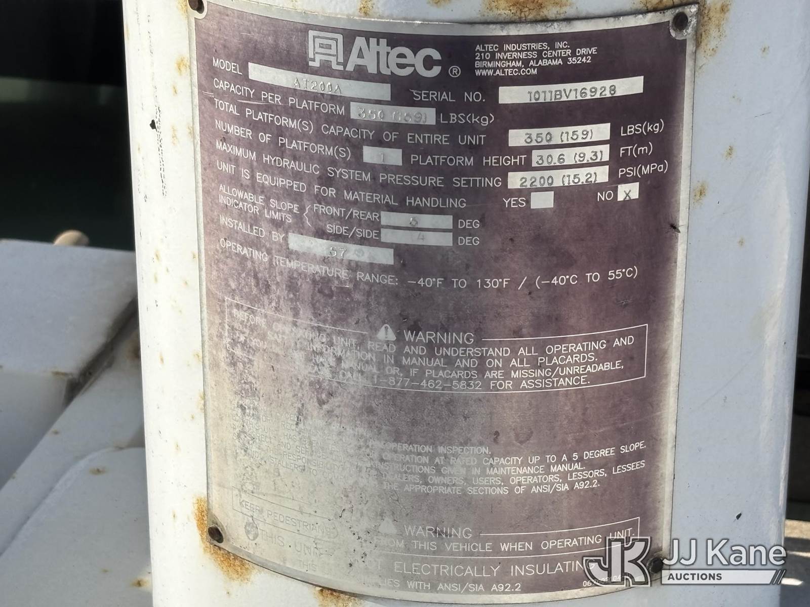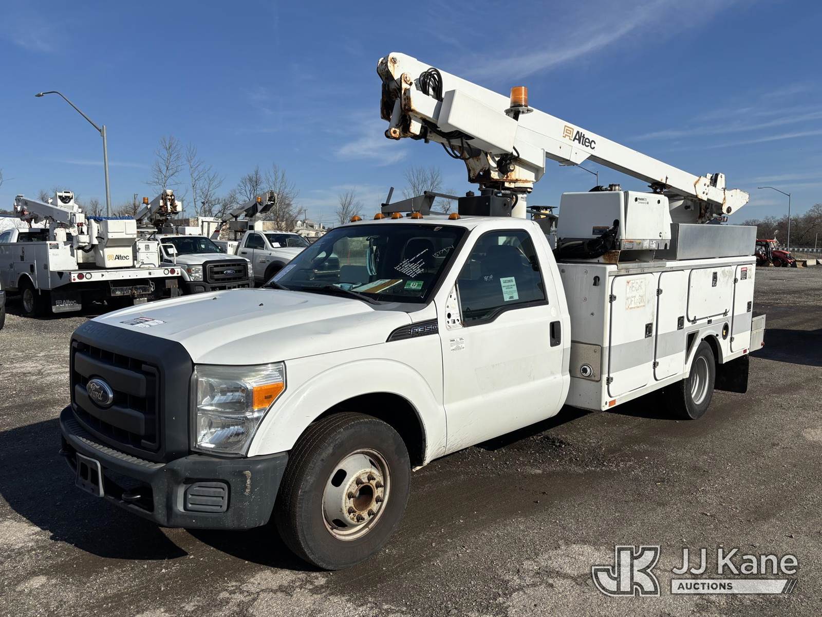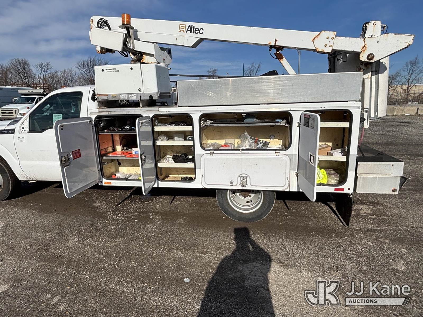 Altec AT200A, 34 ft, Telescopic Non-Insulated Bucket Truck s/n 1011BV16928, with single-man bucket, mounted behind cab on 2012 Ford F350 2WD Service Truck, 8-cyl gas, Auto, A/C, with Cummins/Onan Generator, Gas, (94,781 miles) (Jump To Start, Runs, Upper Not Operating, Upper Condition Unknown, Body Damage, Drivers Seat Unbolted, Dash Apart, Missing Dash Controls, Missing Mirrors, Must Tow) This is a Titled Item NOTE: This unit is being sold AS IS/WHERE IS via Timed Auction and is located in Plymouth Meeting, PA. Inspection & preview days for this unit are the 2 business days prior to the first day of items closing for this auction, item is located at 1402 Conshohocken Rd Plymouth Meeting, PA 19462 and hours of operations are 8a-4p. For pre-sale questions, please contact Bruce Thomas @ (267) 887-0392 or bruce.thomas.jr@jjkane.com. (Manuals provided in cab) (Buyer is responsible for removal. Assistance by consignor or JJ Kane Auctions is not assured.)