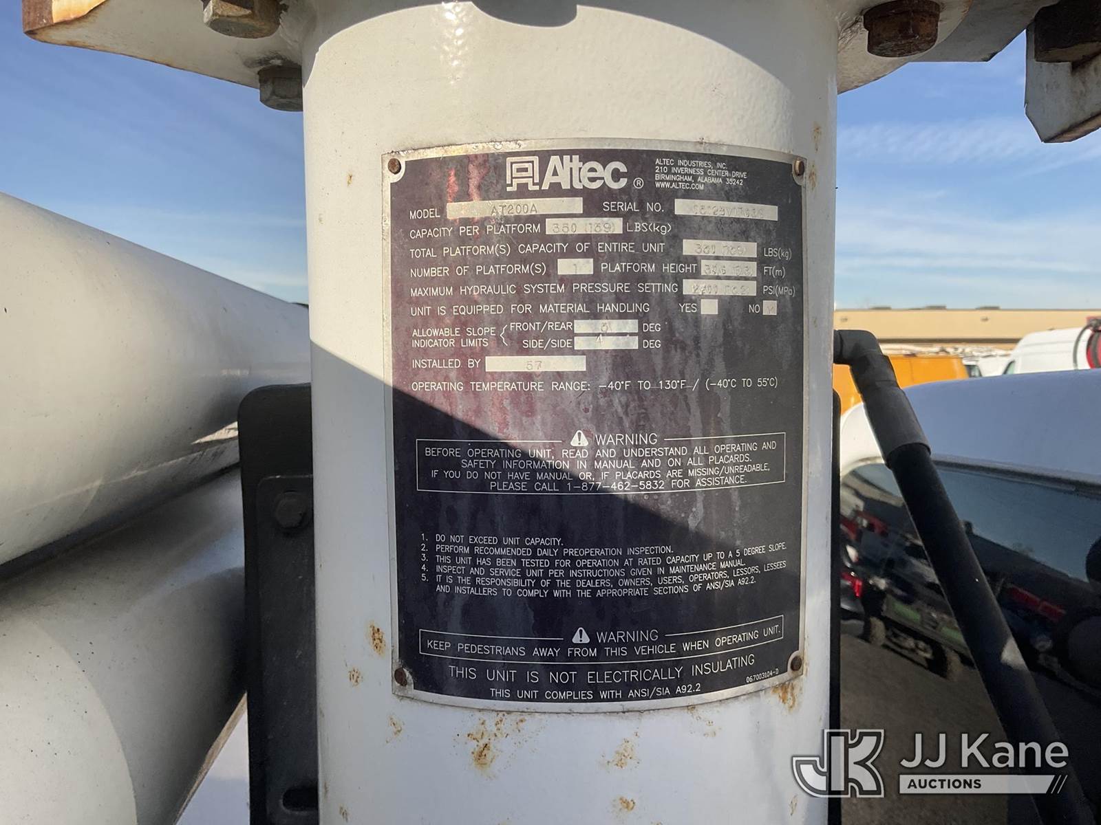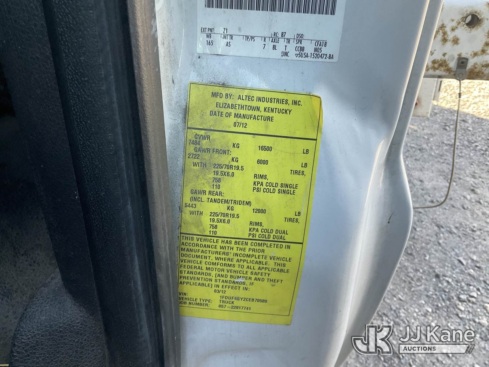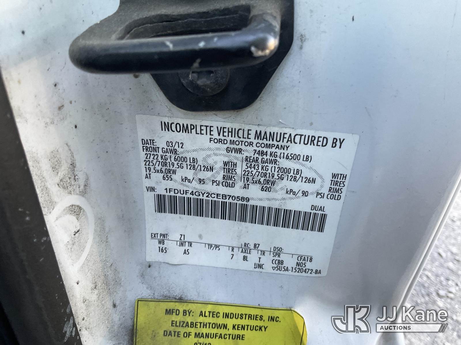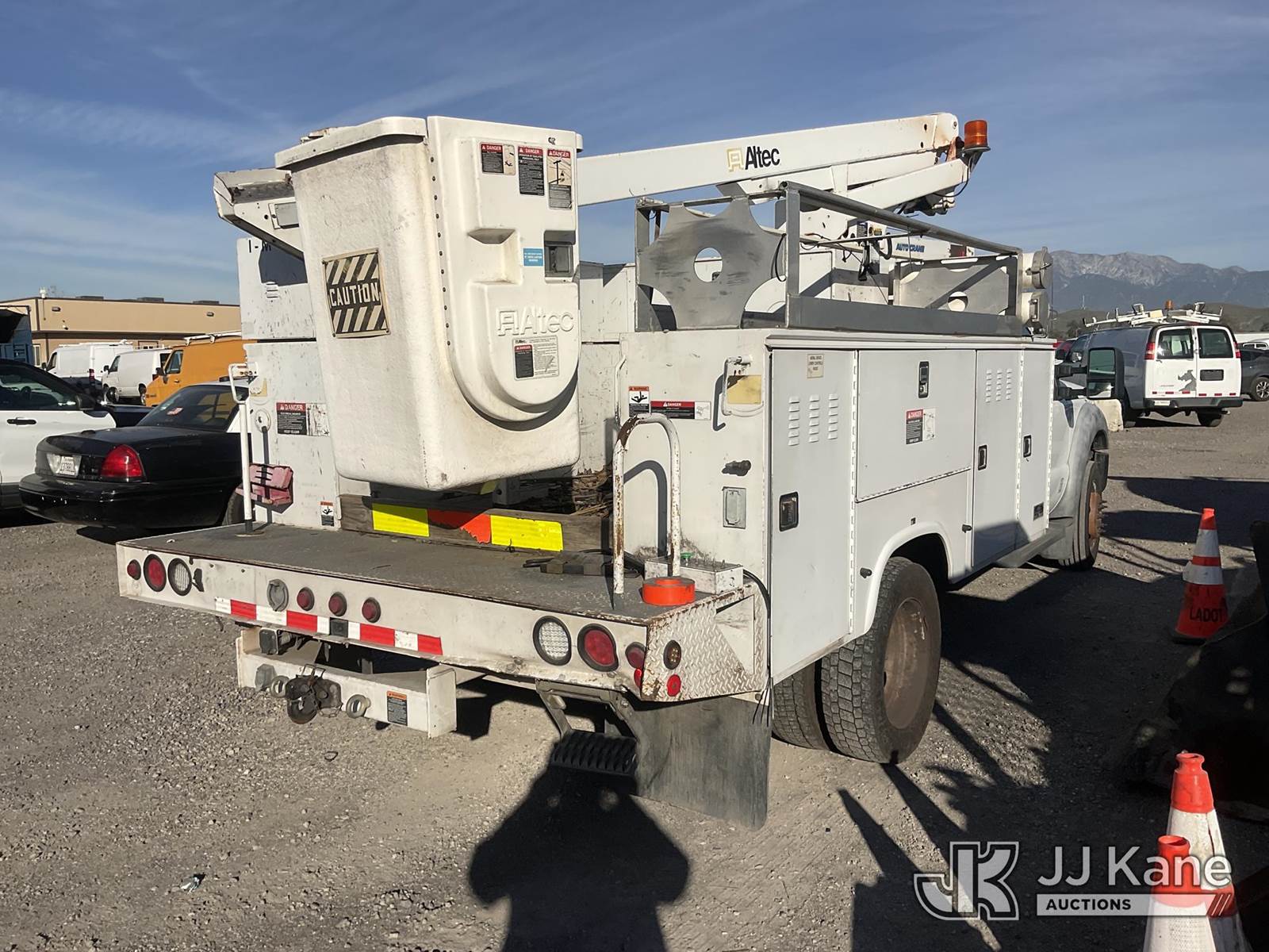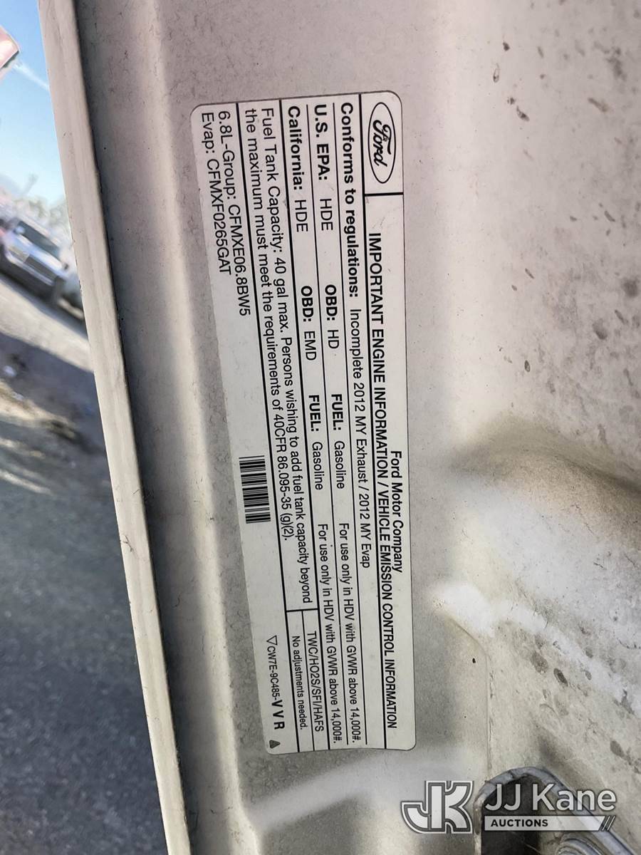 Altec AT200A, 35 ft, Articulating & Telescopic Bucket s/n 0512BV17636, with single man bucket, mounted behind cab on 2012 Ford F-450 SD Regular Cab DRW 2WD Service Truck, 6.8L V10 SOHC 30V Gas, Auto, with tow package, (156,497 miles) (Not Running, Condition Unknown, Upper Condition Unknown) (Engine Won’t Turn Over, Missing PTO Pony Motor) (Bidding Restricted to Licensed Vehicle Dealers Only), This is a Titled Item NOTE: This unit is being sold AS IS/WHERE IS via Timed Auction and is located in Jurupa Valley, CA. Inspection & preview days for this unit are the 2 business days prior to the first day of items closing for this auction, item is located at 4510 Muth Way Jurupa Valley, CA 92509 and hours of operations are 8a-4p. For pre-sale questions, please contact please contact Office Staff @ (310) 353-7140. Dealer License Number 45696. (Manuals provided in cab) (Buyer is responsible for removal. Assistance by consignor or JJ Kane Auctions is not assured.)