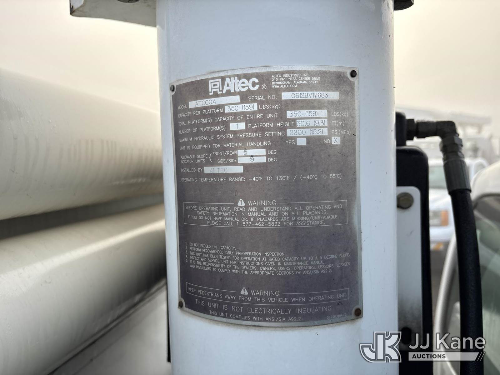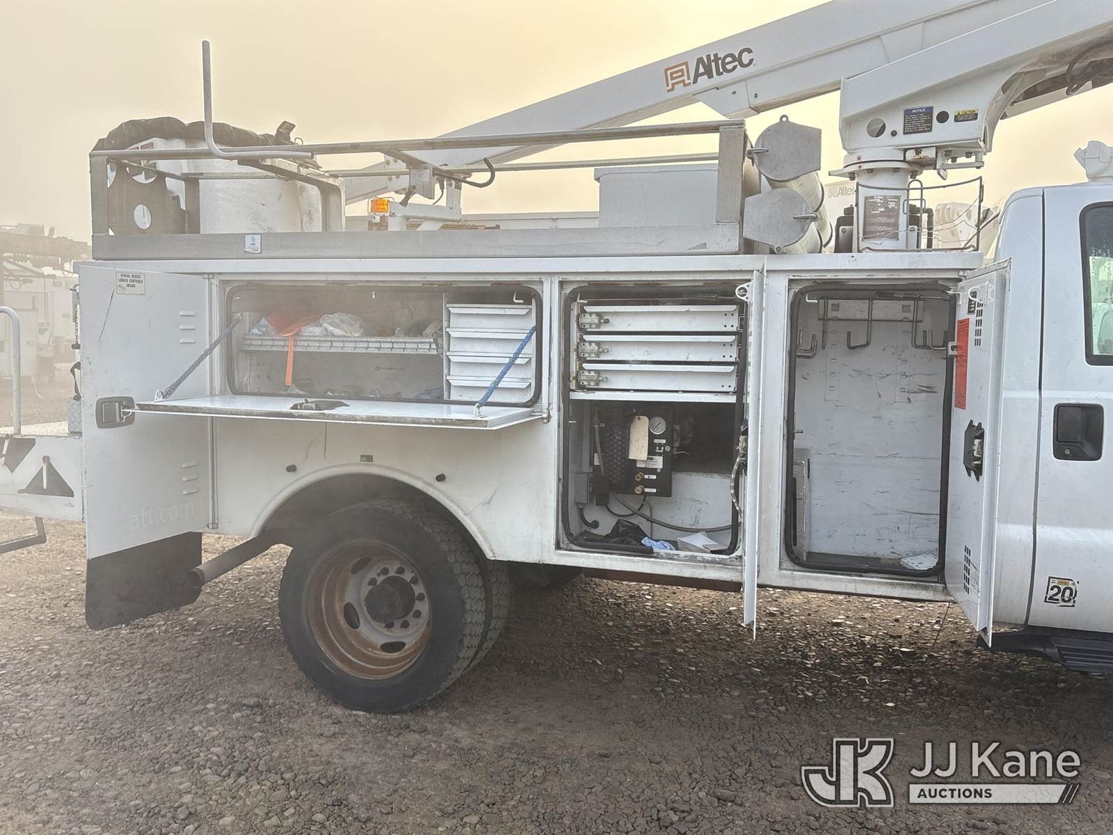 Altec AT200A, 35 ft, Articulating & Telescopic Non-Insulated Bucket Truck s/n 0612BV17683, with Single-Man Bucket, mounted behind cab on 2012 Ford F-450 SD Service Truck, 10-cyl gas, Auto, A/C, with tow package, (203,395 miles) (Runs, Moves & Upper Operate) (Engine Cover Does Not Latch, Did Not Pass Smog) (Reads 11,350 hours) (Bidding Restricted to Licensed Vehicle Dealers Only), This is a Titled Item NOTE: This unit is being sold AS IS/WHERE IS via Timed Auction and is located in Dixon, CA. Inspection & preview days for this unit are the 2 business days prior to the first day of items closing for this auction, item is located at 8668 Sparling Ln Dixon, CA 95620 and hours of operations are 8a-4p. For pre-sale questions, please contact JJ Kane Staff at (707) 678-8060 (dixon@jjkane.com). Dealer License Number 45696. (Missing manuals, See Auction Company for Manufacturers Information to obtain manuals) (Buyer is responsible for removal. Assistance by consignor or JJ Kane Auctions is not assured.)