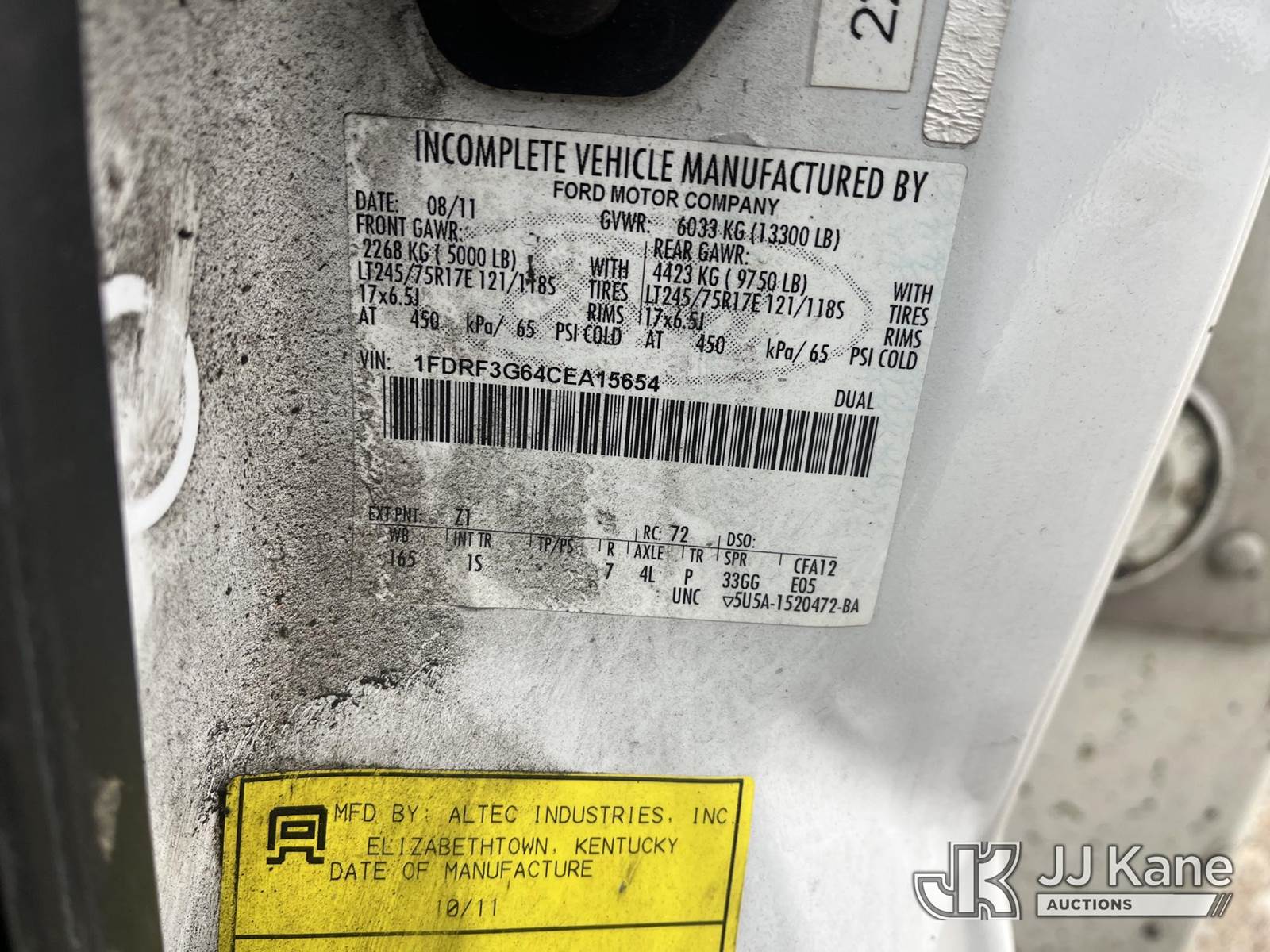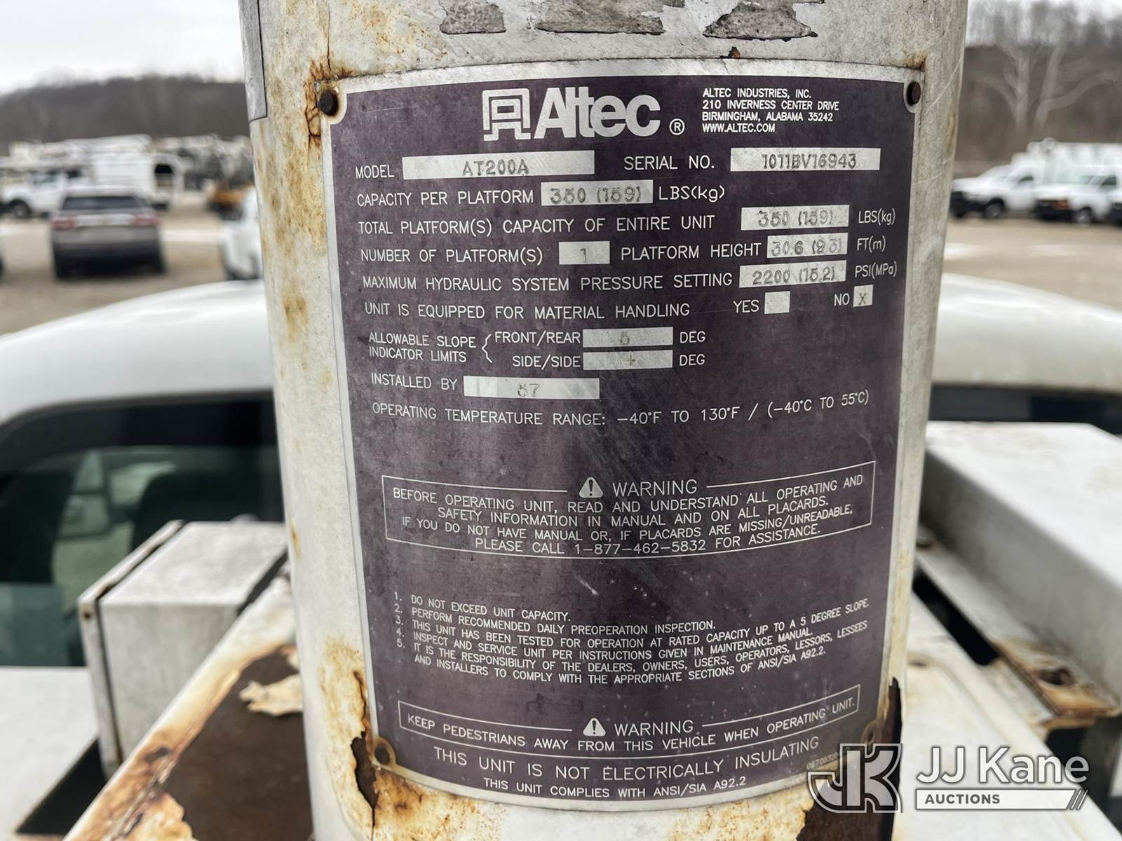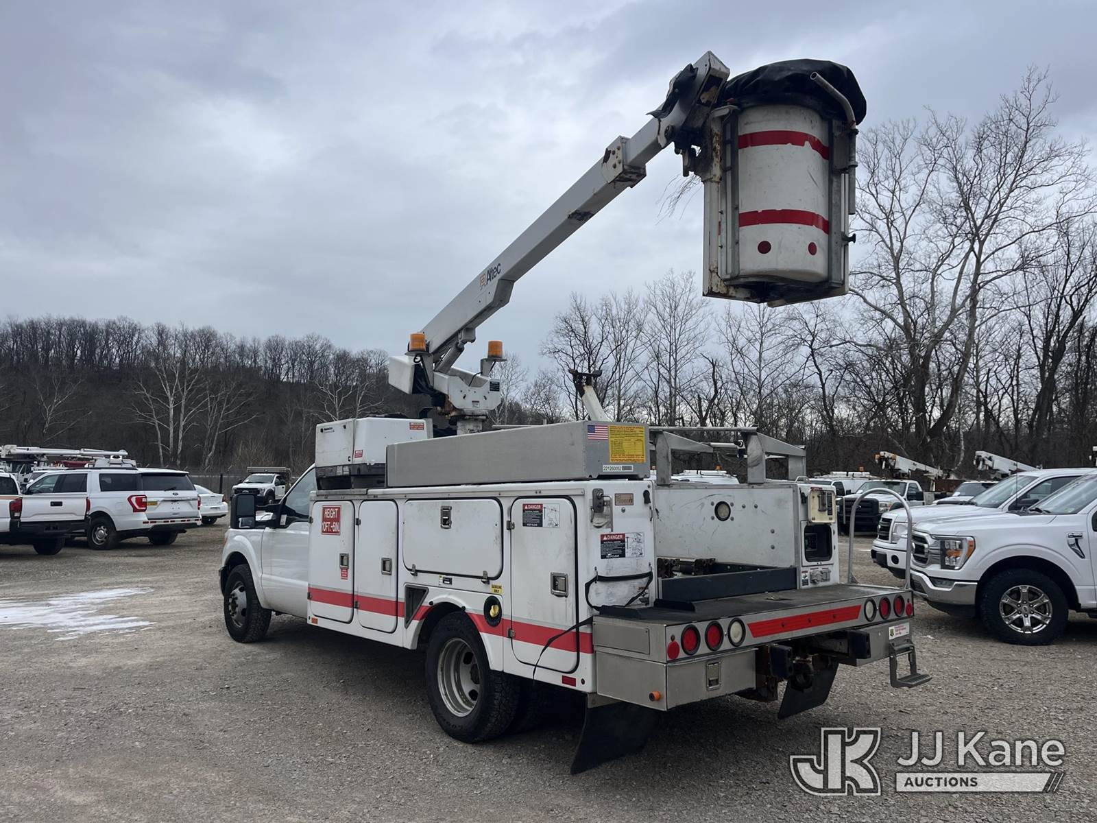 Altec AT200A, 35 ft, Non-Insulated Bucket Truck s/n 1011BV16943, with single-man bucket, mounted behind cab on 2012 Ford F350 4x2 Service Truck, 6.2L V8 Gas 6-Speed Automatic, A/C, (123,135 miles) (Runs, Moves & Operates, Jump Pack Required To Run Truck & Unit/Generator, Rust Damge) This is a Titled Item NOTE: This unit is being sold AS IS/WHERE IS via Timed Auction and is located in Smock, PA. Inspection & preview days for this unit are the 2 business days prior to the first day of items closing for this auction, item is located at 1000 Franklin Dr Smock, PA 15480 and hours of operations are 7:00 am to 3:30 pm. For pre-sale questions, please contact Alaina White @ (724) 562-2575 or Alaina.White@JJKane.com. (Missing manuals, See Auction Company for Manufacturers Information to obtain manuals) (Buyer is responsible for removal. Assistance by consignor or JJ Kane Auctions is not assured.)
