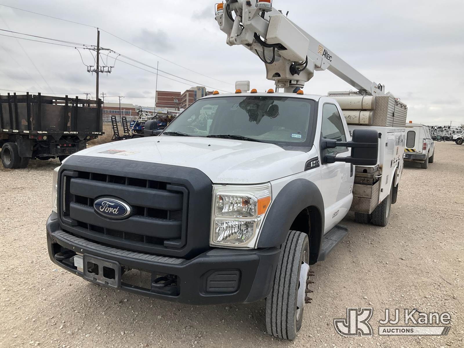 Altec AT200A, 35 ft, Telescopic Bucket Truck s/n 0812BV18507, with single-man bucket, mounted behind cab on 2012 Ford F-450 SD Regular Cab DRW 2WD Service Truck, 6.8L V10 SOHC 30V RWD, Gas, Auto, A/C, (142,378 miles) (Runs & Moves, PTO Does Not Engage, ) This is a Titled Item NOTE: This unit is being sold AS IS/WHERE IS via Timed Auction and is located in Waxahachie, TX. Inspection & preview days for this unit are the 2 business days prior to the first day of items closing for this auction, item is located at 999 Solon Rd Waxahachie, TX 75165 and hours of operations are 8a-4p. For pre-sale questions, please contact Alex Bayless @ (469) 550-4938. (Manuals provided in cab) (Buyer is responsible for removal. Assistance by consignor or JJ Kane Auctions is not assured.)