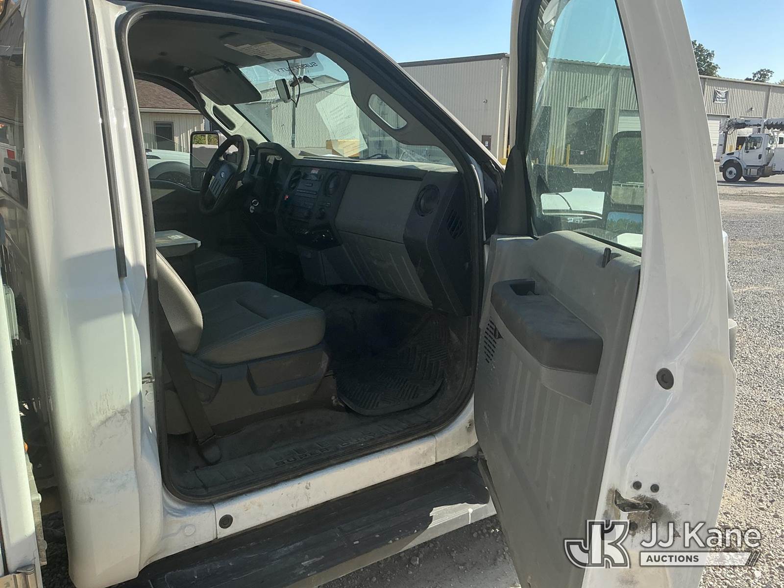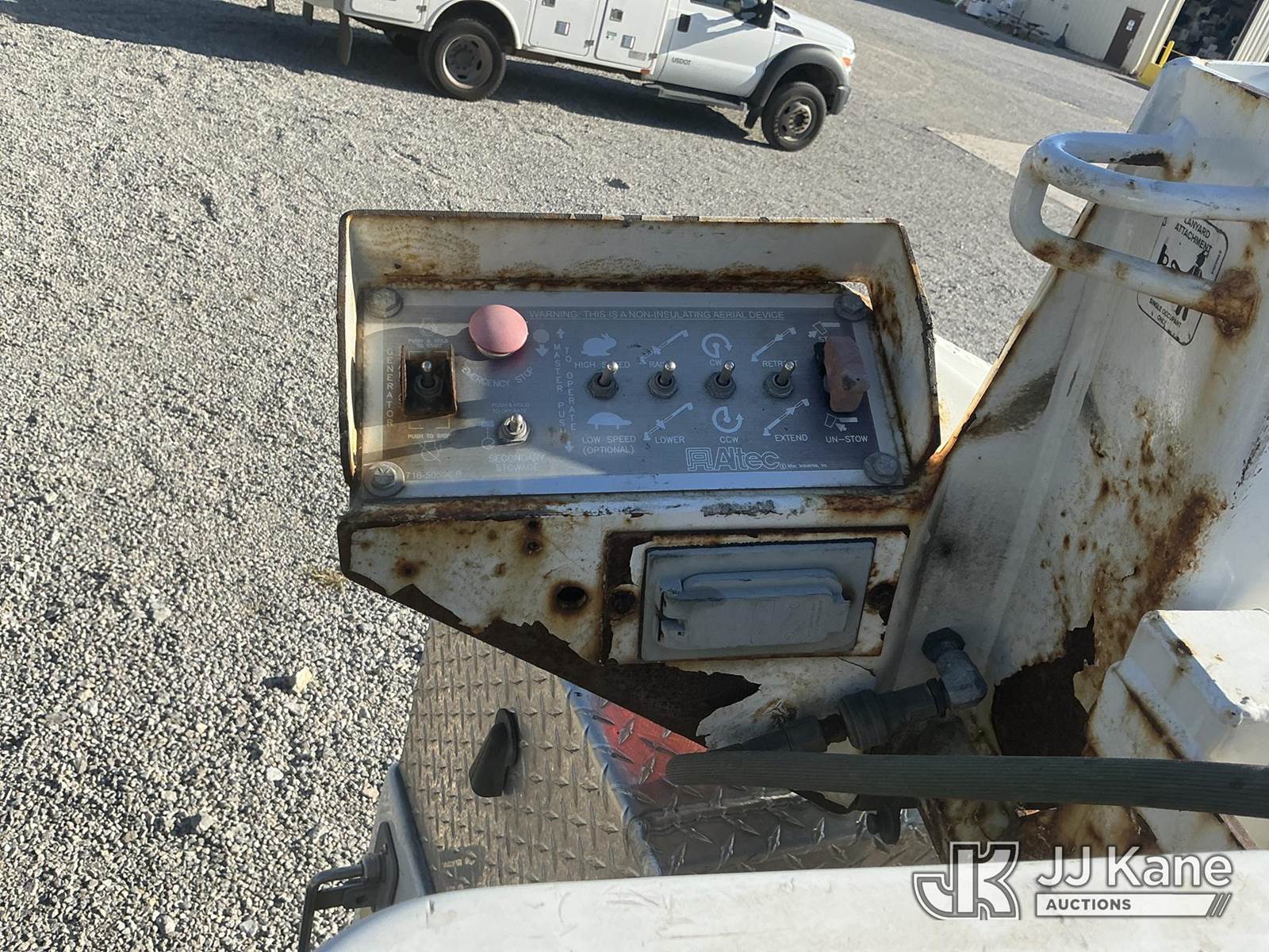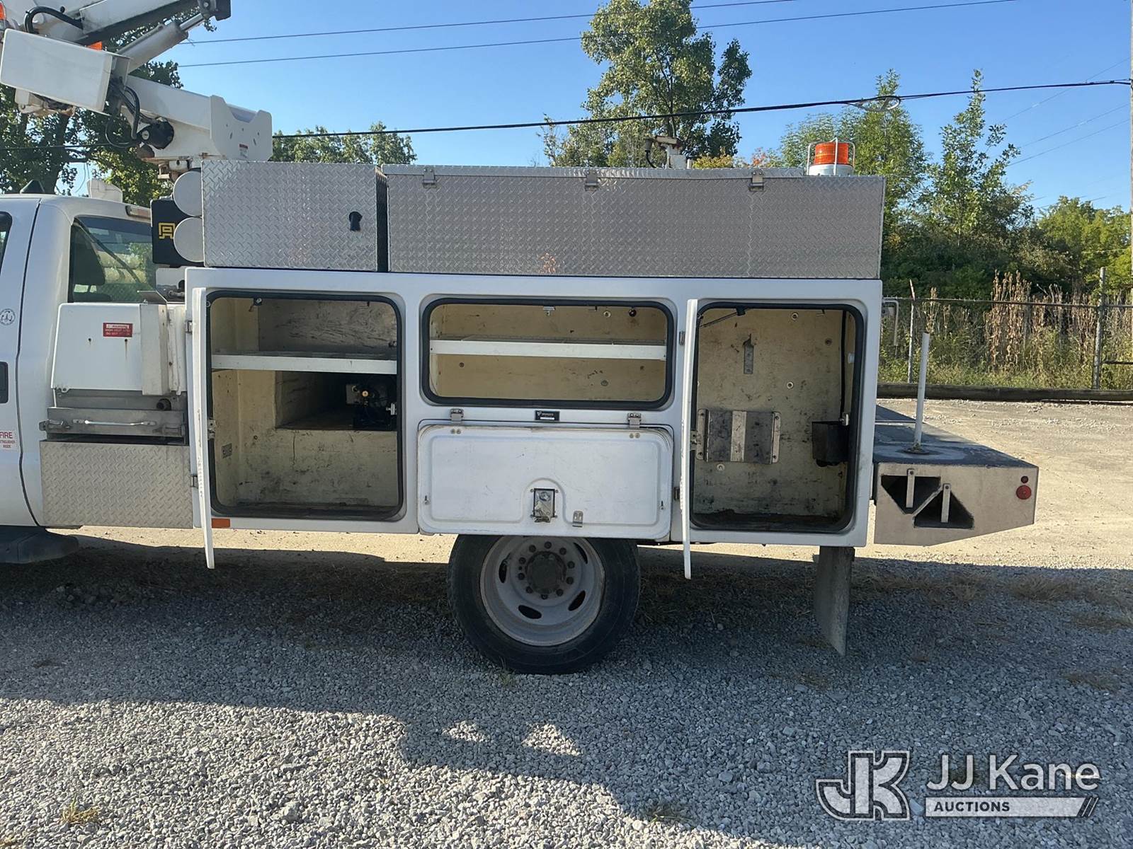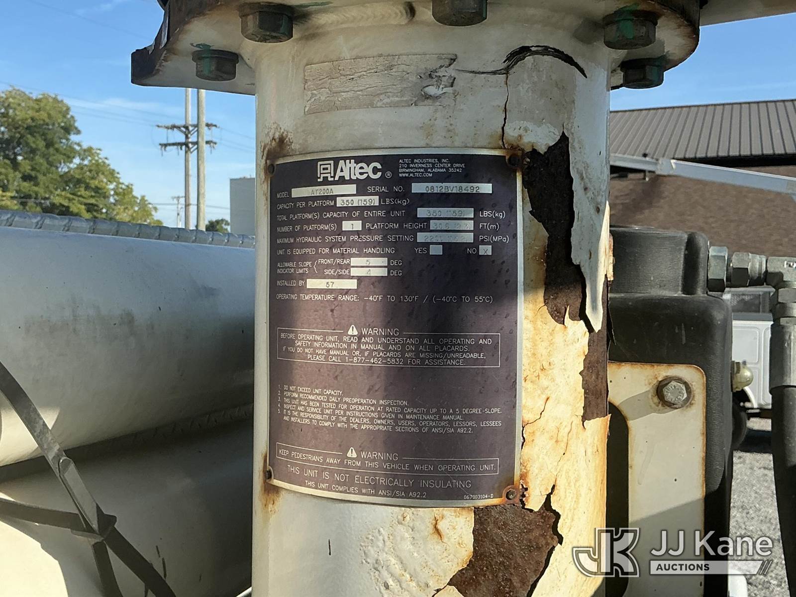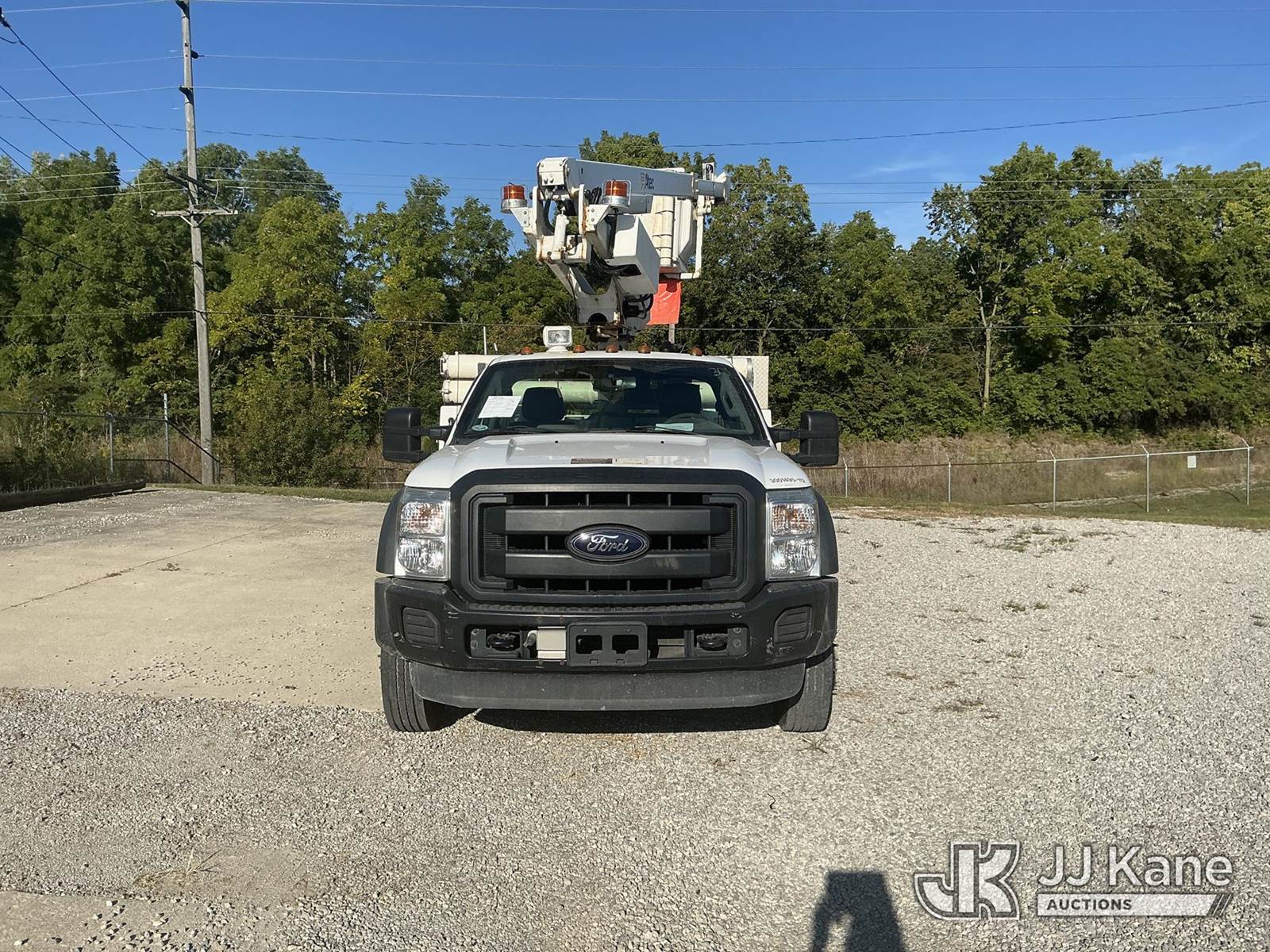 Altec AT200A, 35 ft, Telescopic Non-Insulated Bucket Truck s/n 0812BV18492, with single-man bucket, mounted behind cab on 2012 Ford F450 Regular Cab DRW 2WD Service Truck, 6.8L V10 SOHC 30V Auto, gas, A/C, with Onan generator, inverter, air compressor & fiberglass body, (117,177 miles) (Runs, Moves & Upper Operates) (Body/Paint Damage) (Reads 5,229 hours) This is a Titled Item NOTE: This unit is being sold AS IS/WHERE IS via Timed Auction and is located in Fort Wayne, IN. For more information & removal arrangements please contact Office Staff @ (260) 450-9822. Load out by appointment only, Buyer/Hauler must present copy of paid invoice upon arrival. Purchaser acknowledges ALL lots must be removed within (10) business days of Auction, or a storage fee may be incurred. For load out and pick up information, please reference the hauler sheet sent out after purchase. (Manuals provided in cab) (Buyer is responsible for removal. Assistance by consignor or JJ Kane Auctioneers is not assured.)