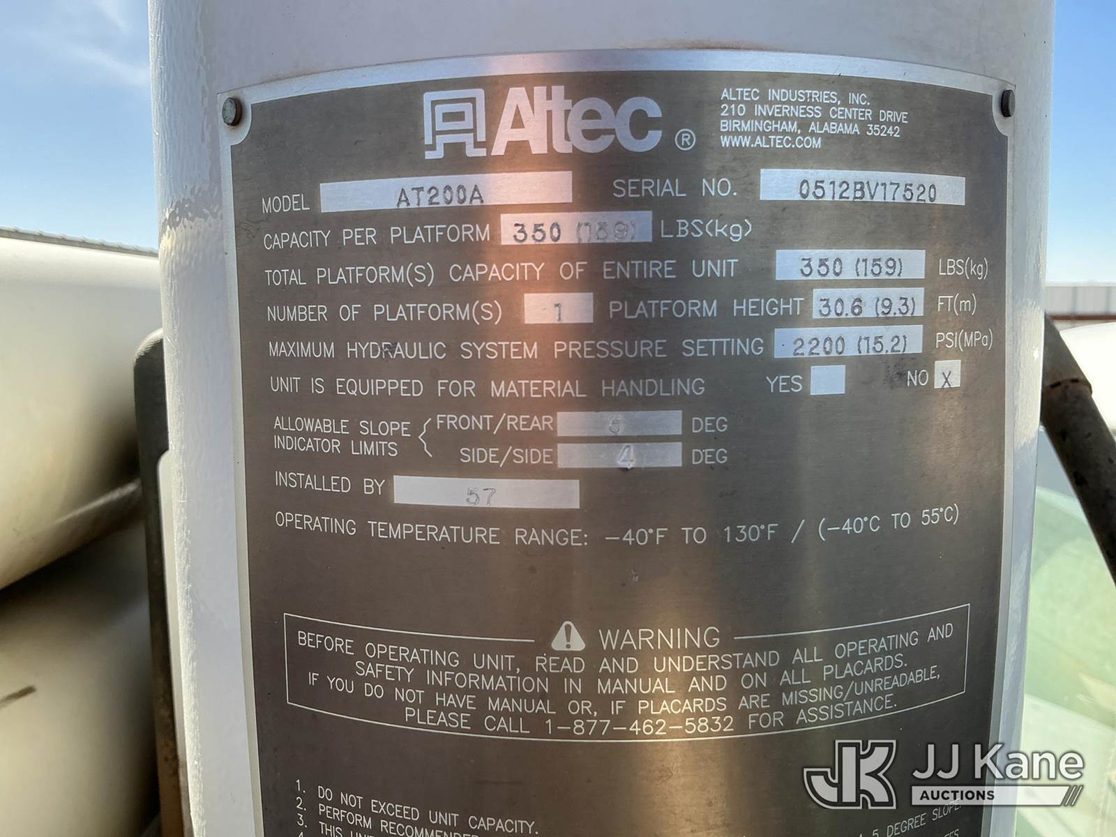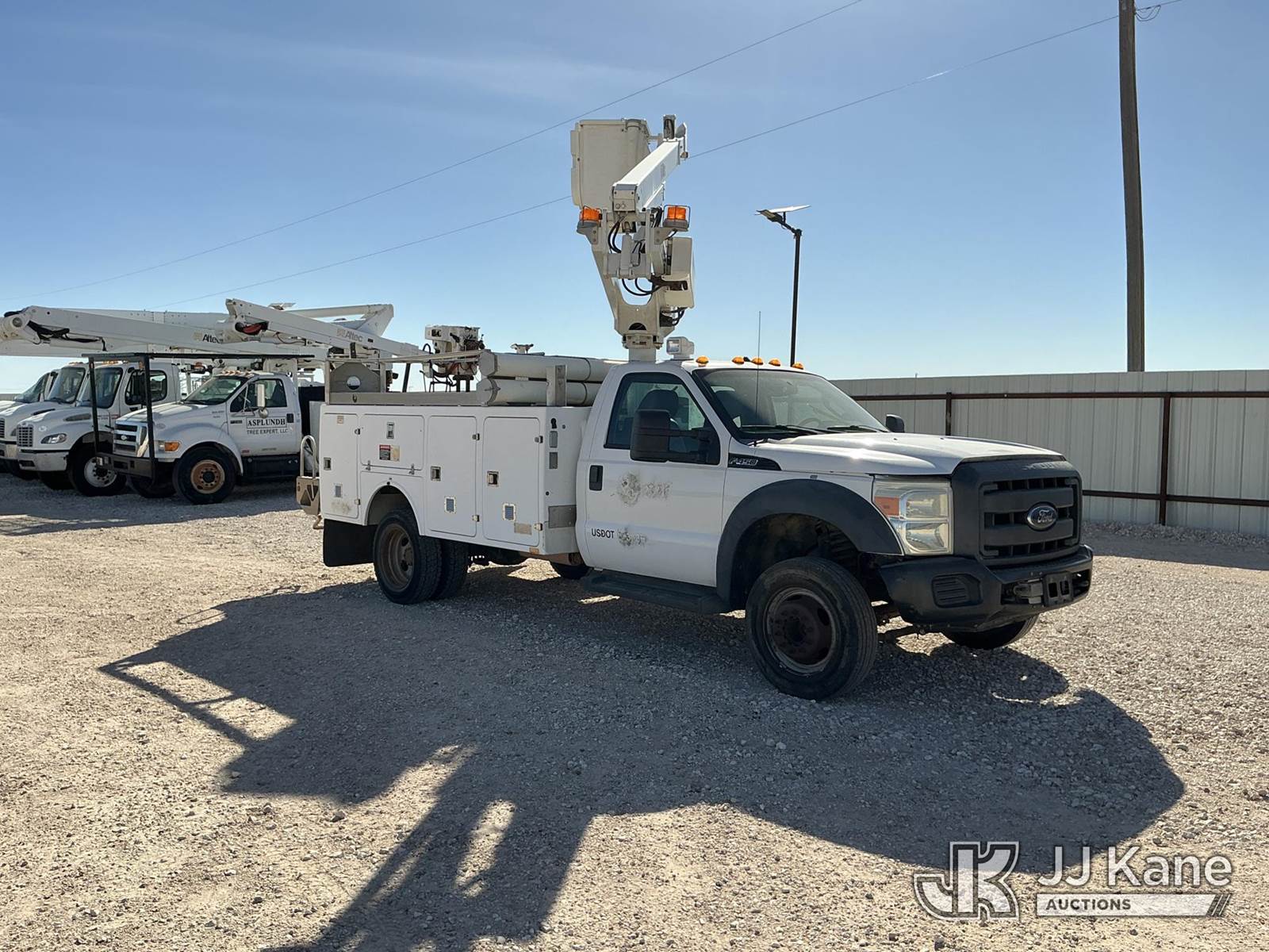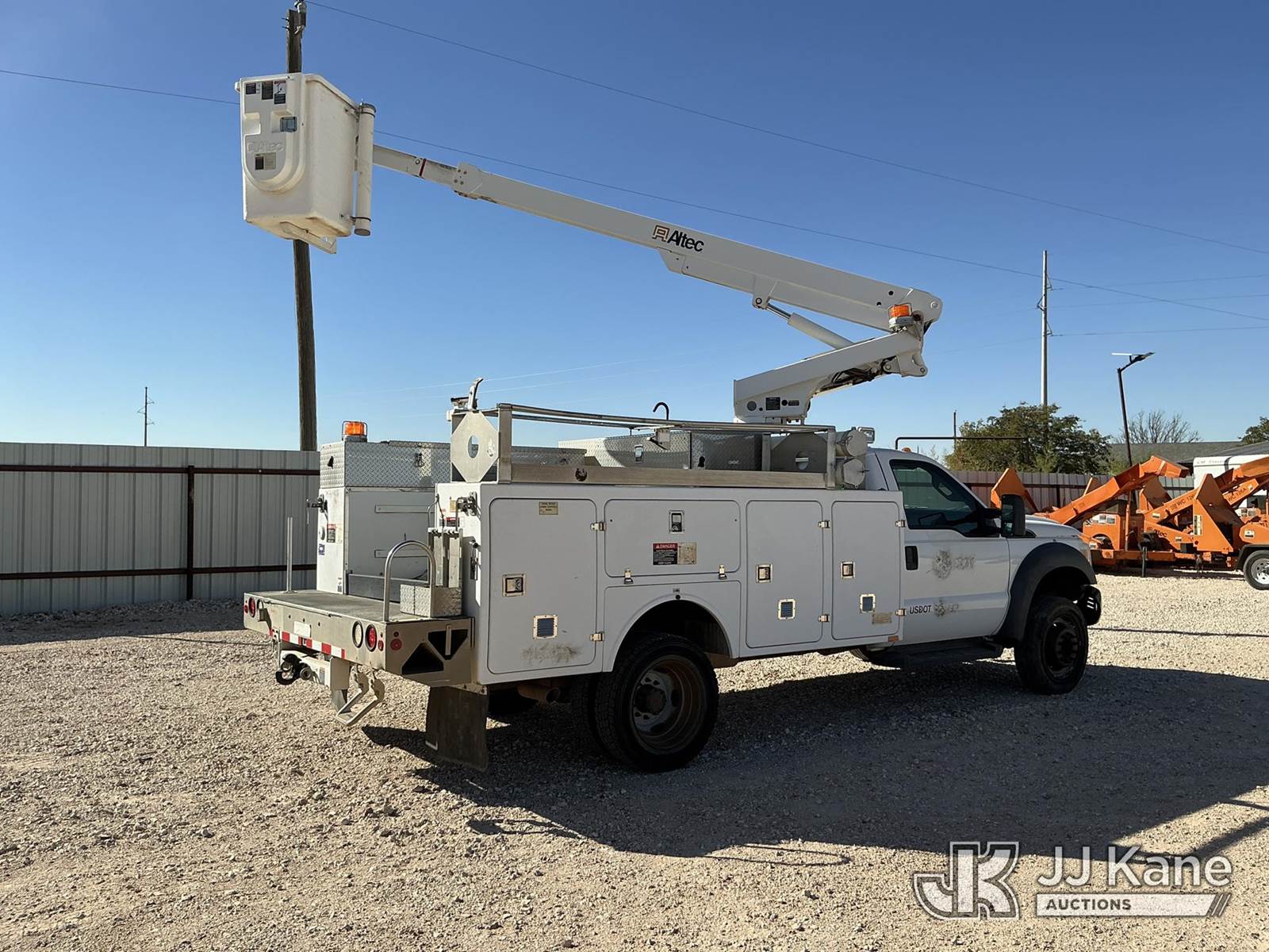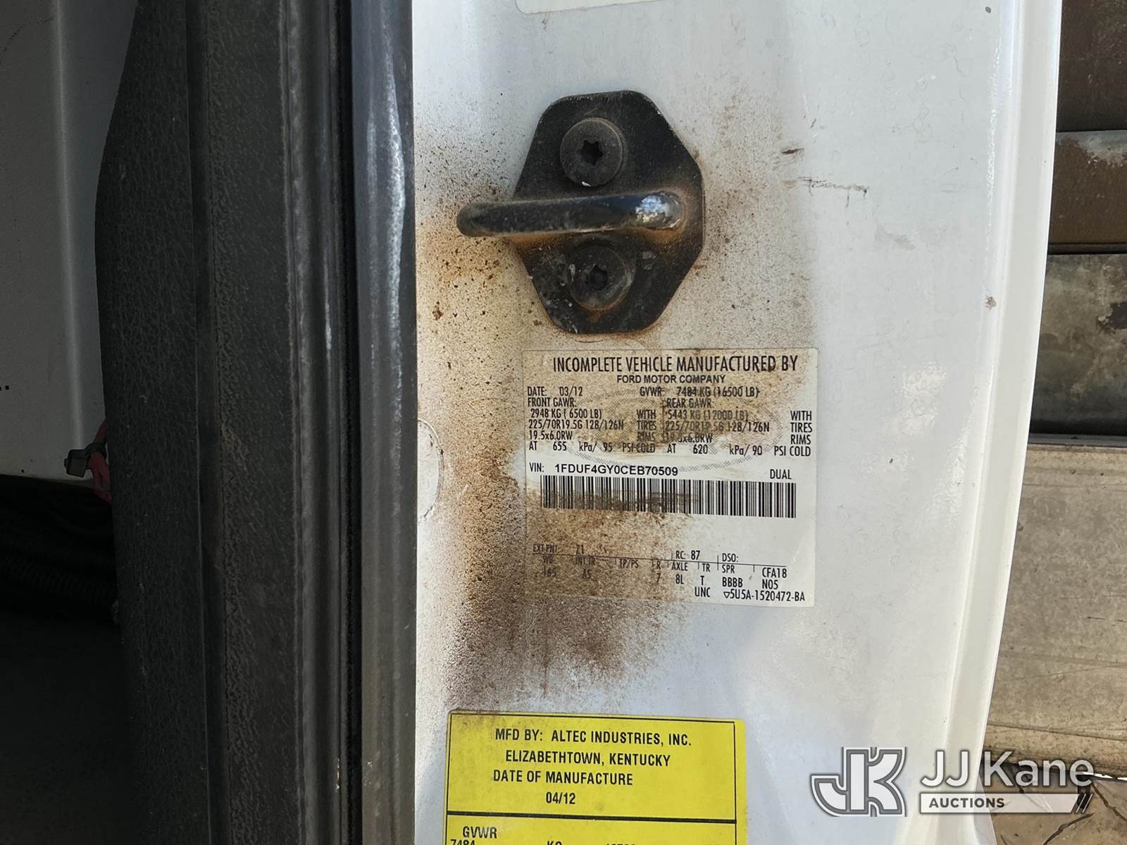 Altec AT200A, 35 ft, Telescopic Non-Insulated Bucket Truck s/n 0512BV17520, with single-man bucket, mounted behind cab on 2012 Ford F450 Service Truck, 6.8L V10 SOHC 30V gas, Auto, RWD, A/C, with Cummins Onan Generator, (144,814 miles) (Runs, Moves & Upper Operates) (Reads 14,150 hours) This is a Titled Item NOTE: This unit is being sold AS IS/WHERE IS via Timed Auction and is located in Stanton, TX. For more information & removal arrangements please contact Jeremy Walters @ jeremy.walters@jjkane.com. Load out by appointment only, Buyer/Hauler must present copy of paid invoice upon arrival. Purchaser acknowledges ALL lots must be removed within 5 business days of Auction, or a storage fee may be incurred. For load out and pick up information, please reference the release form sent out after purchase. (Manuals provided in cab) (Buyer is responsible for removal. Assistance by consignor or JJ Kane Auctions is not assured.)