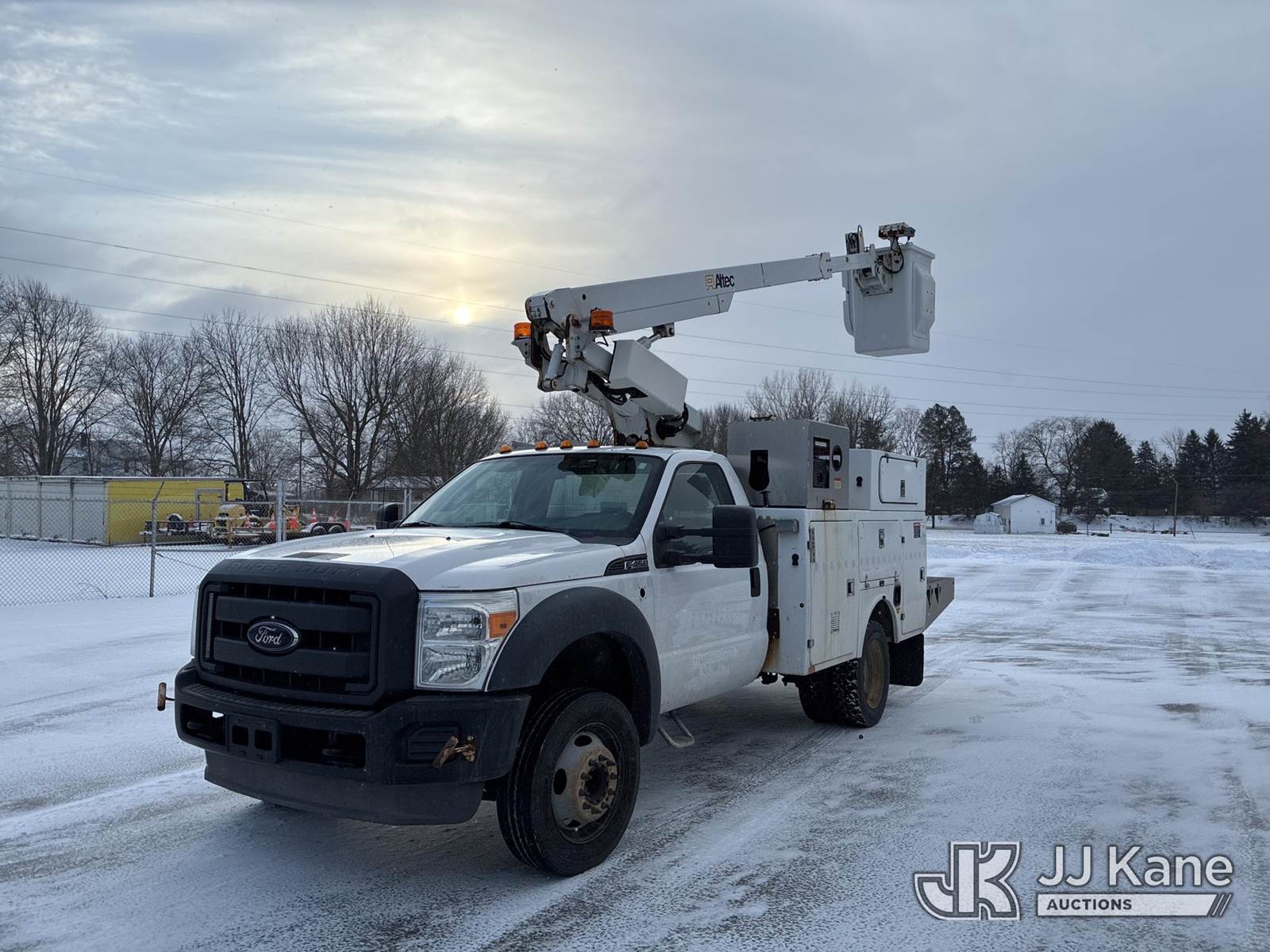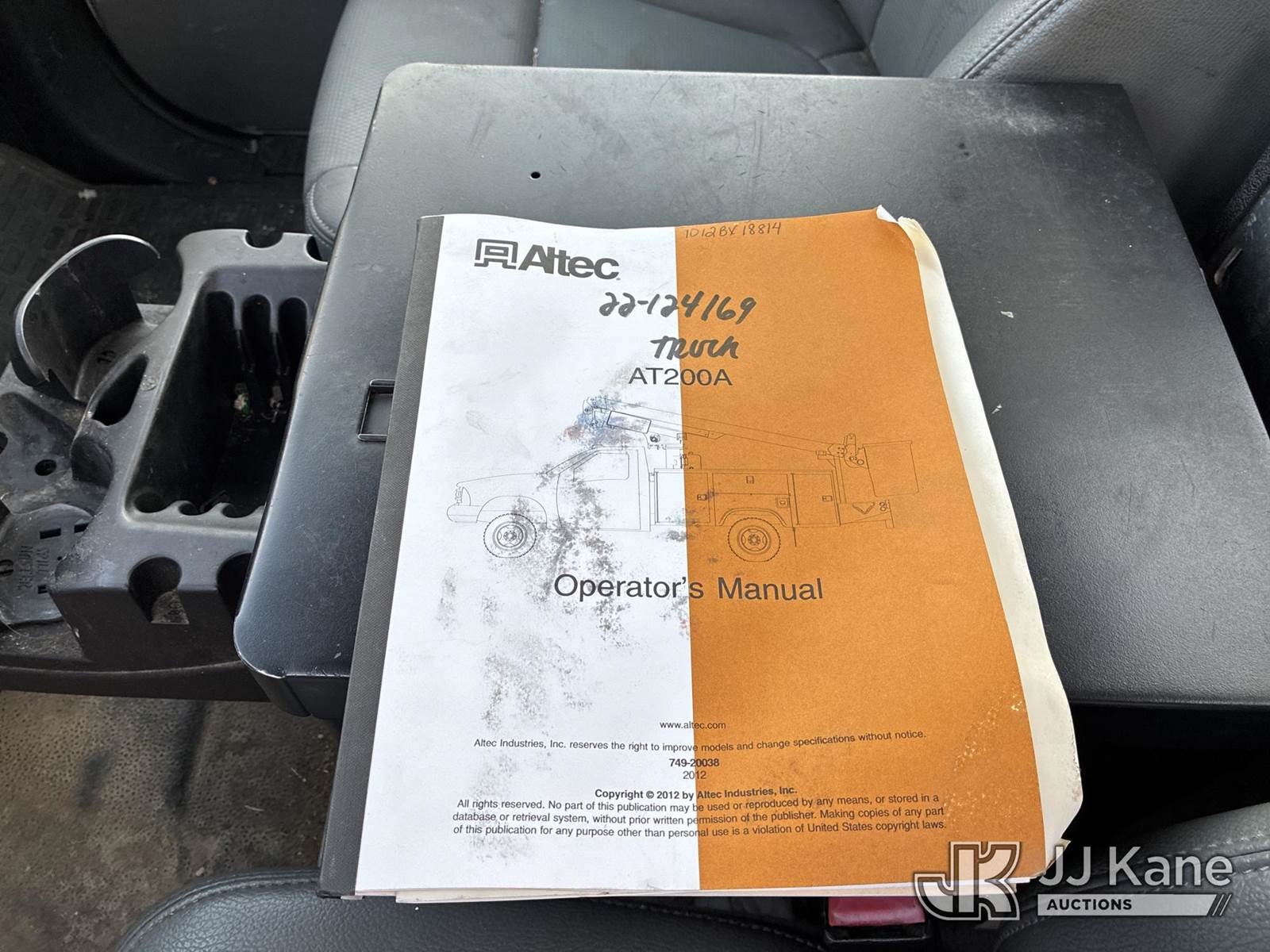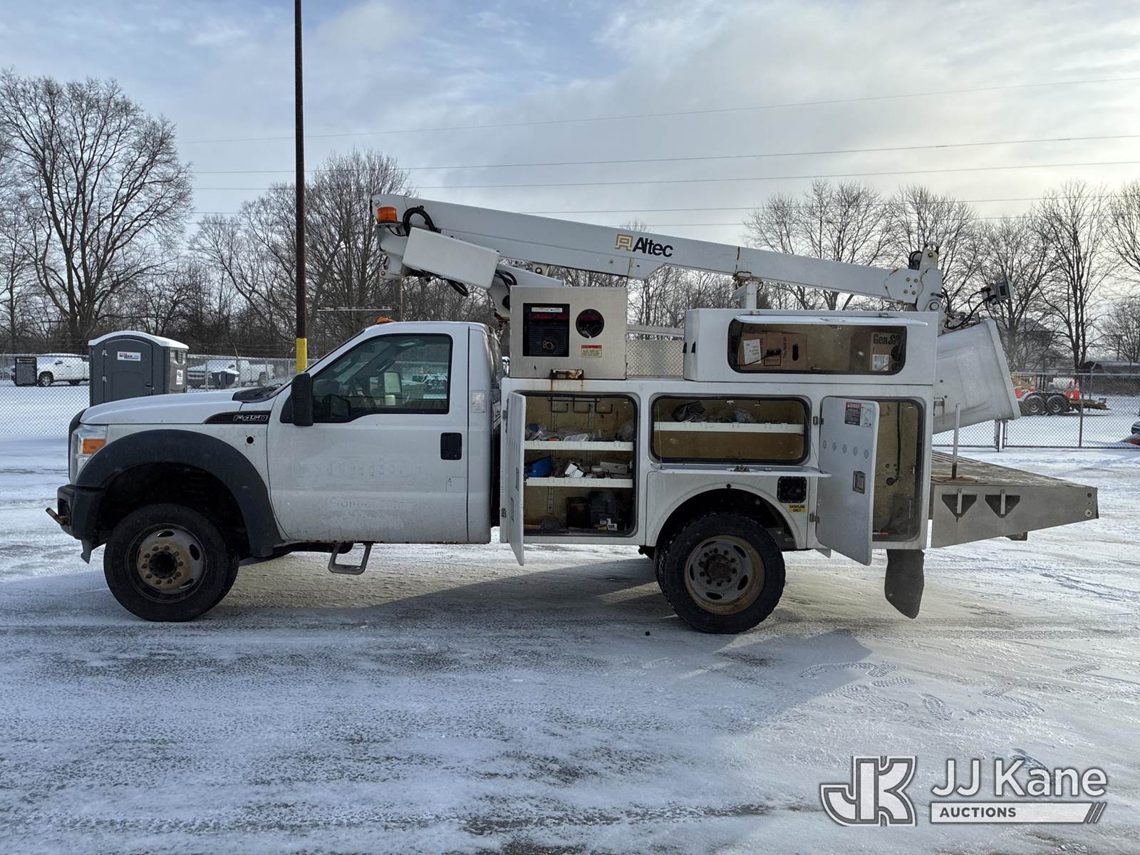 Altec AT200A, 35 ft, Telescopic Non-Insulated Bucket Truck s/n 1012BV18814, with single-man bucket, mounted behind cab on 2012 Ford F450 Service Truck, 6.8L V10 SOHC 30V gas, Auto, RWD, A/C, with Honda Generator, (183,462 miles) (Runs, Moves & Upper Operates) (Interior Damage) This is a Titled Item NOTE: This unit is being sold AS IS/WHERE IS via Timed Auction and is located in Ashland, OH. For more information & removal arrangements, please contact Jimmy Sanders @ (567) 474-5162, jimmy.sanders@jjkane.com. Load out by appointment only, Buyer/Hauler must present copy of paid invoice upon arrival. Purchaser acknowledges ALL lots must be removed within (10) Calendar days of Auction, or a storage fee may be incurred. For load-out and pick-up information, please reference the hauler sheet sent out after purchase. (Manuals provided in cab) (Buyer is responsible for removal. Assistance by consignor or JJ Kane Auctions is not assured.)