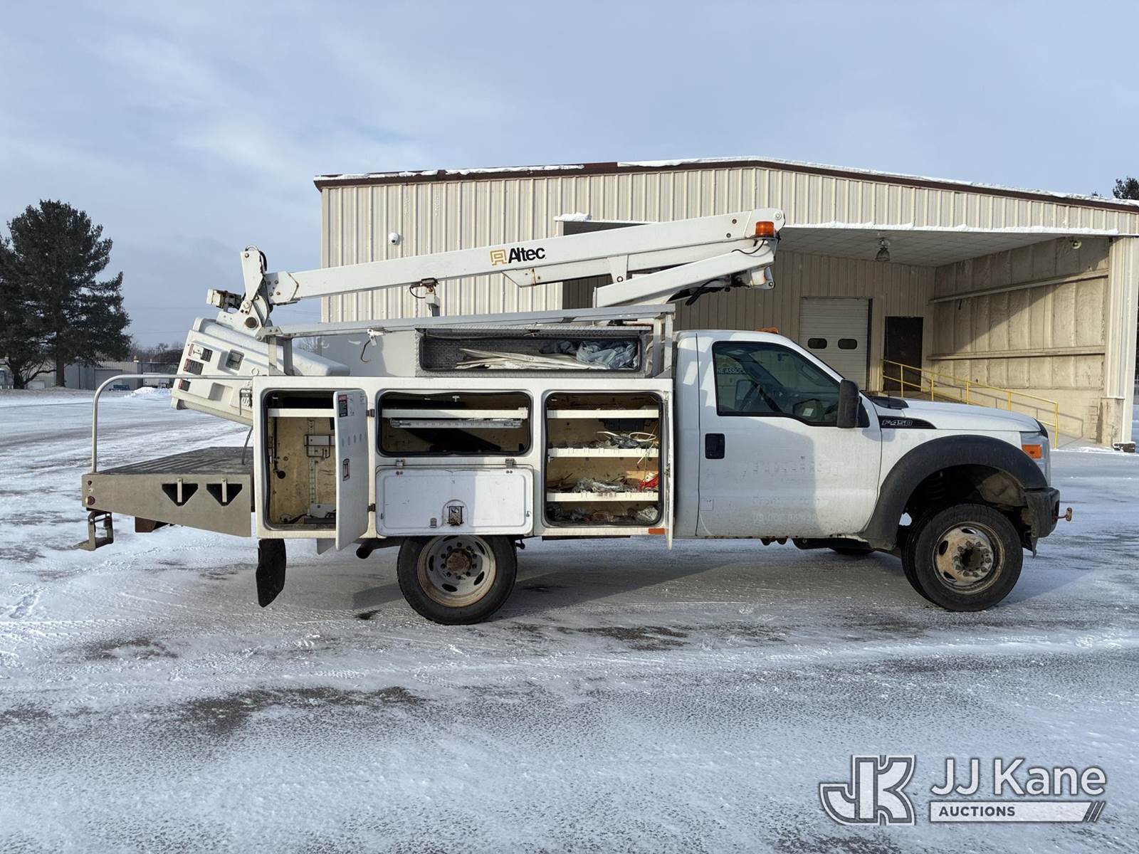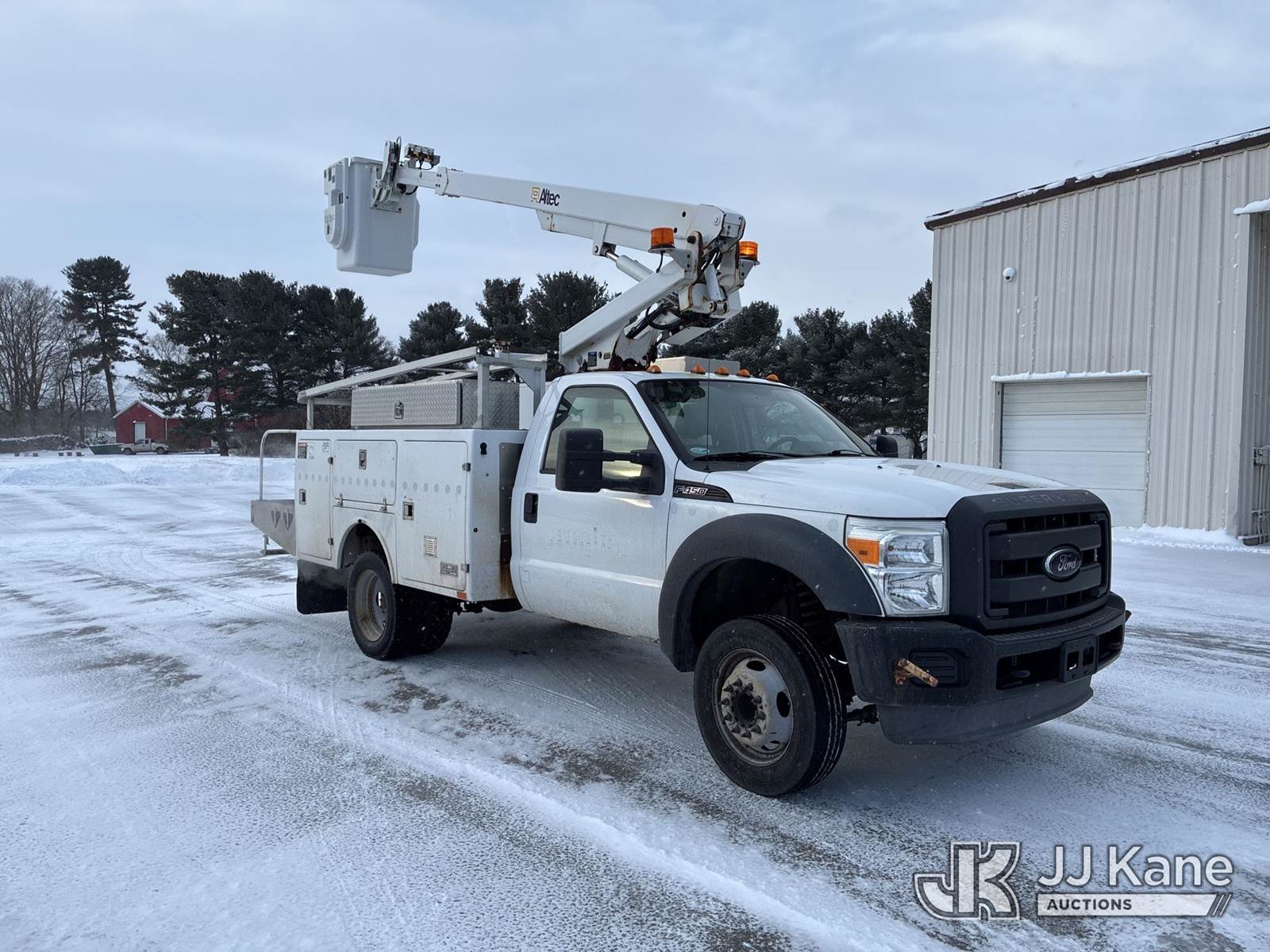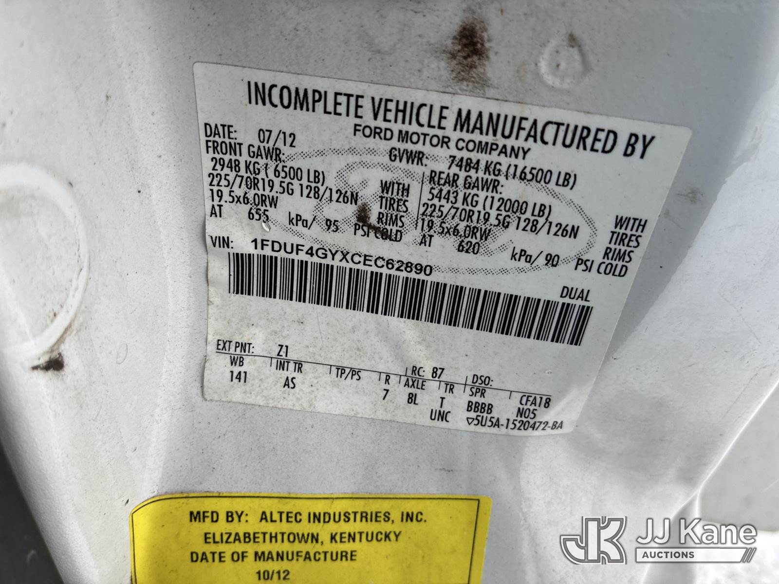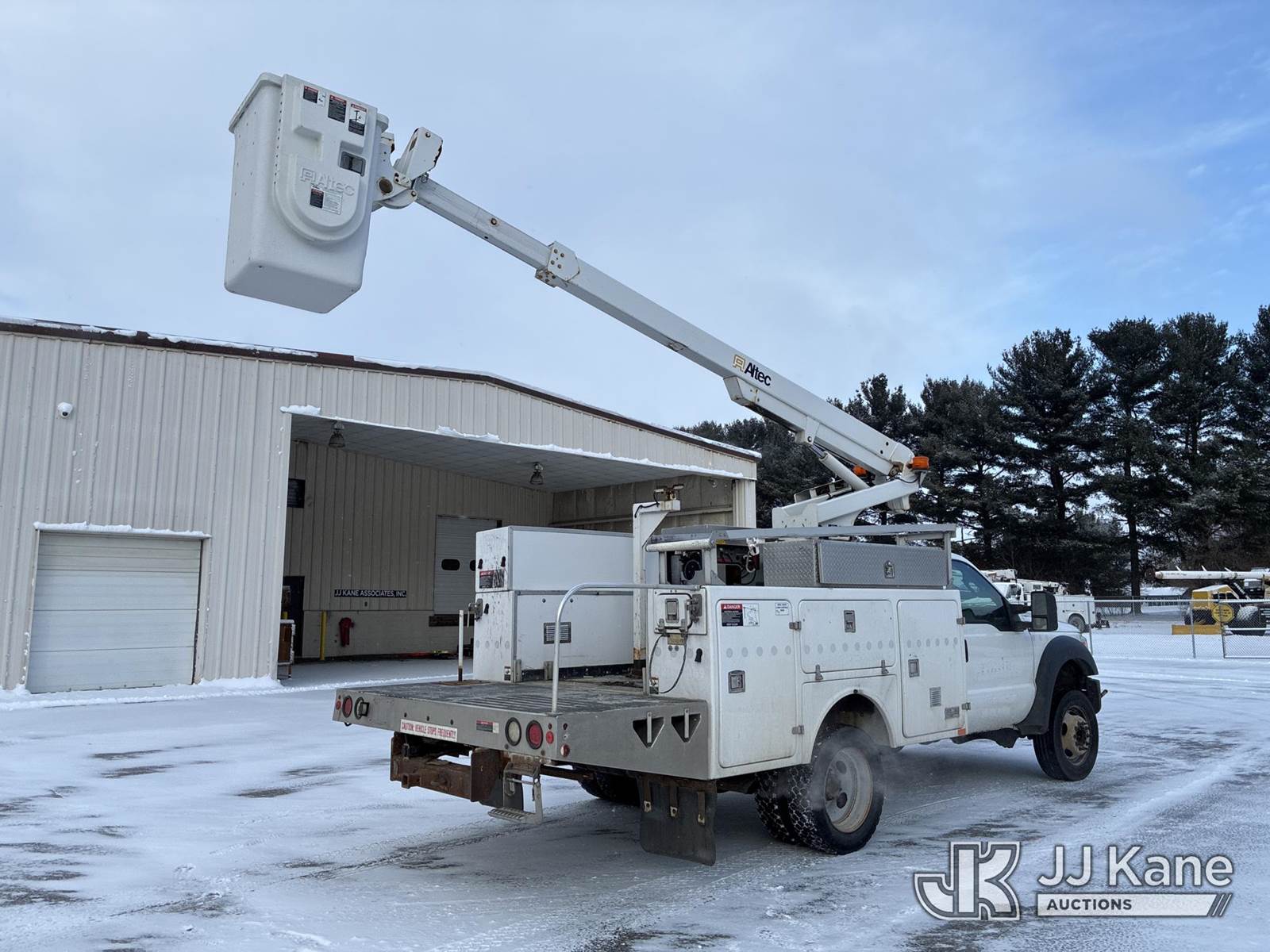 Altec AT200A, 35 ft, Telescopic Non-Insulated Bucket Truck s/n 1012BV18814, with single-man bucket, mounted behind cab on 2012 Ford F450 Service Truck, 6.8L V10 SOHC 30V gas, Auto, RWD, A/C, with Honda Generator, (183,462 miles) (Runs, Moves & Upper Operates) (Interior Damage) This is a Titled Item NOTE: This unit is being sold AS IS/WHERE IS via Timed Auction and is located in Ashland, OH. For more information & removal arrangements, please contact Jimmy Sanders @ (567) 474-5162, jimmy.sanders@jjkane.com. Load out by appointment only, Buyer/Hauler must present copy of paid invoice upon arrival. Purchaser acknowledges ALL lots must be removed within (10) Calendar days of Auction, or a storage fee may be incurred. For load-out and pick-up information, please reference the hauler sheet sent out after purchase. (Manuals provided in cab) (Buyer is responsible for removal. Assistance by consignor or JJ Kane Auctions is not assured.)